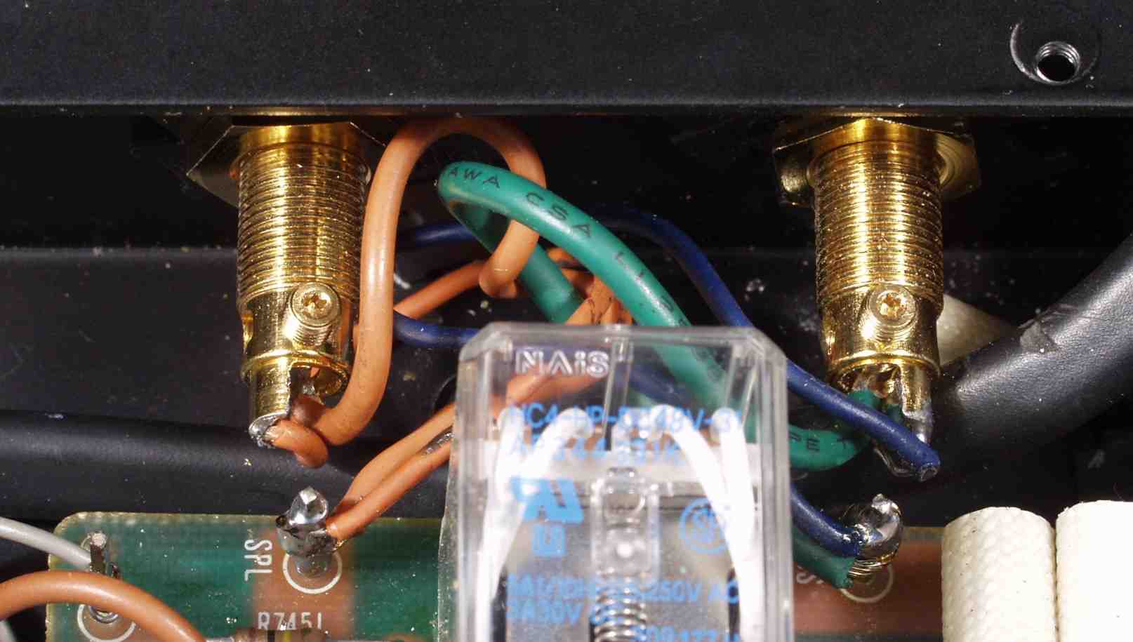 | C48. 修理後 R側SP端子への接続 WBTのネジ止めを生かし、ネジ止め接続+半田接続のW配線にした 理由は此方参照 |