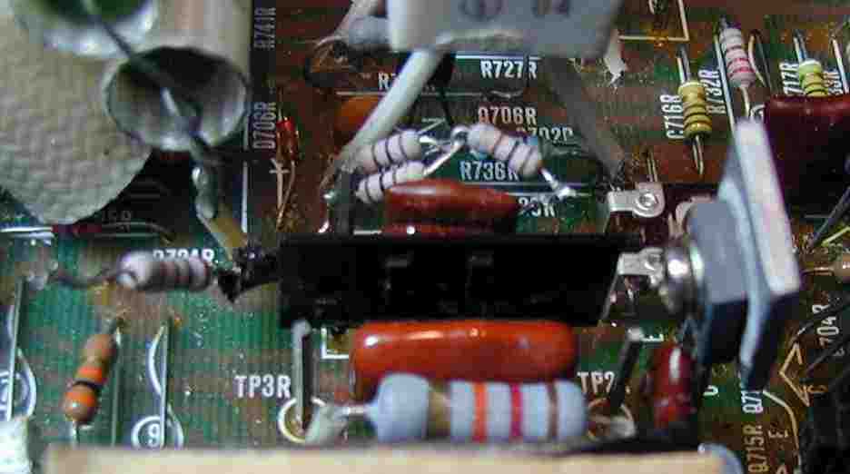 | 10. R側、修理後、部品の足で押さえる、酷いところは半田着け後アロンアルファで着ける。 |