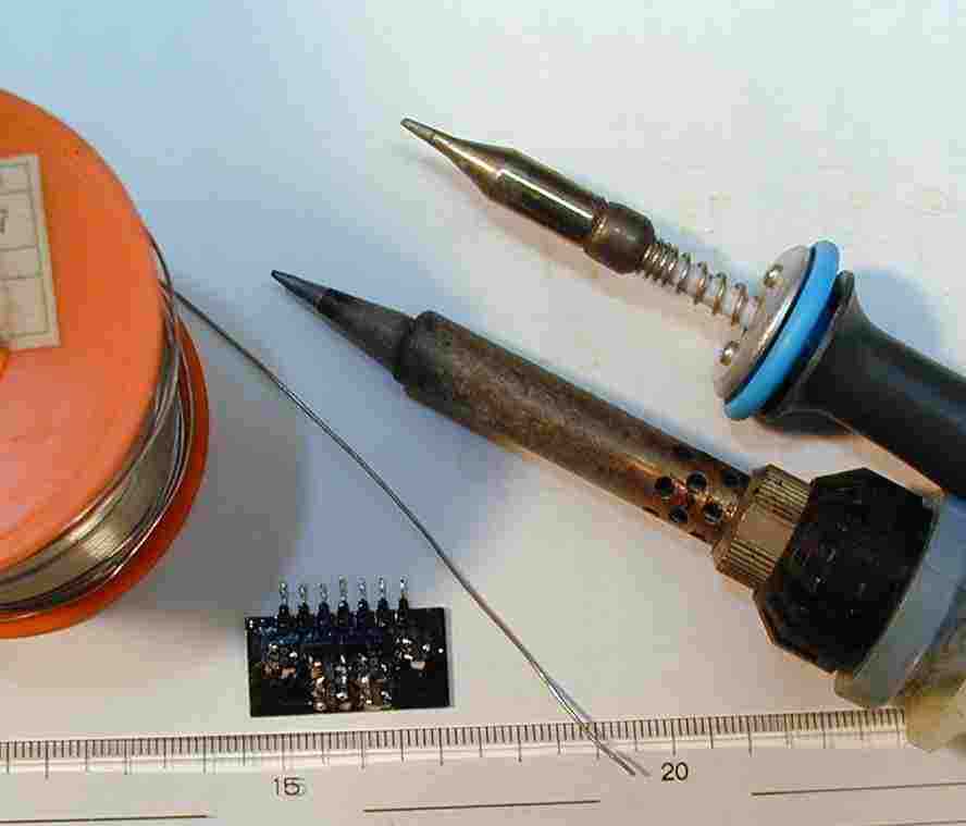 | 8. ハンダ鏝先も、小さいのを使用、無論ハンダも細い物を使う。 |