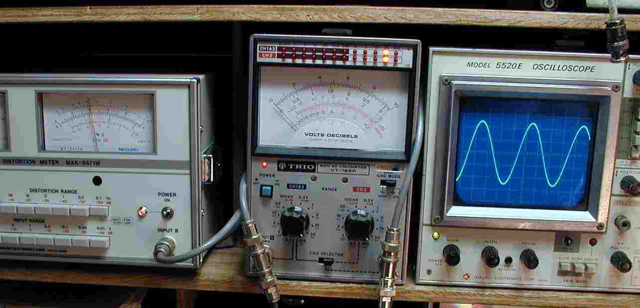 | 14. RL同時、度重なるショウトでコンデンサー等がくたびれているのか歪みが一気に増す。 小生の所の給電事情が良くないのも1因です。普通の家庭で30A契約です。 歪み計のレンジは、最大1%レンジを使用。 |