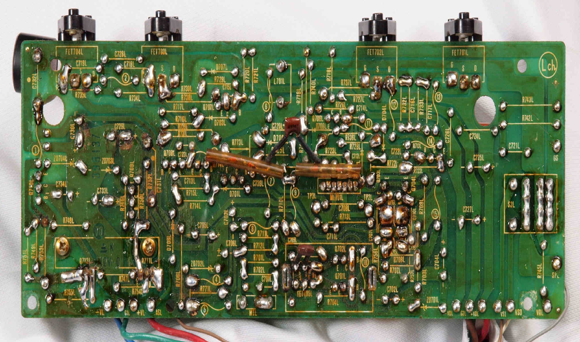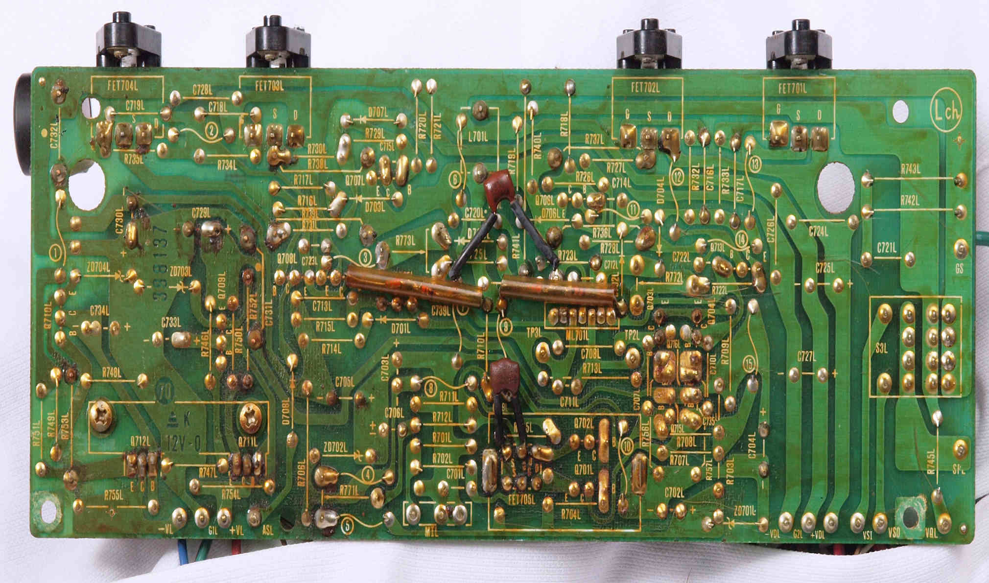C15. 修理(半田補正)後 R側ドライブ基板裏 半田を全部やり直す。 普通はこれで完成。