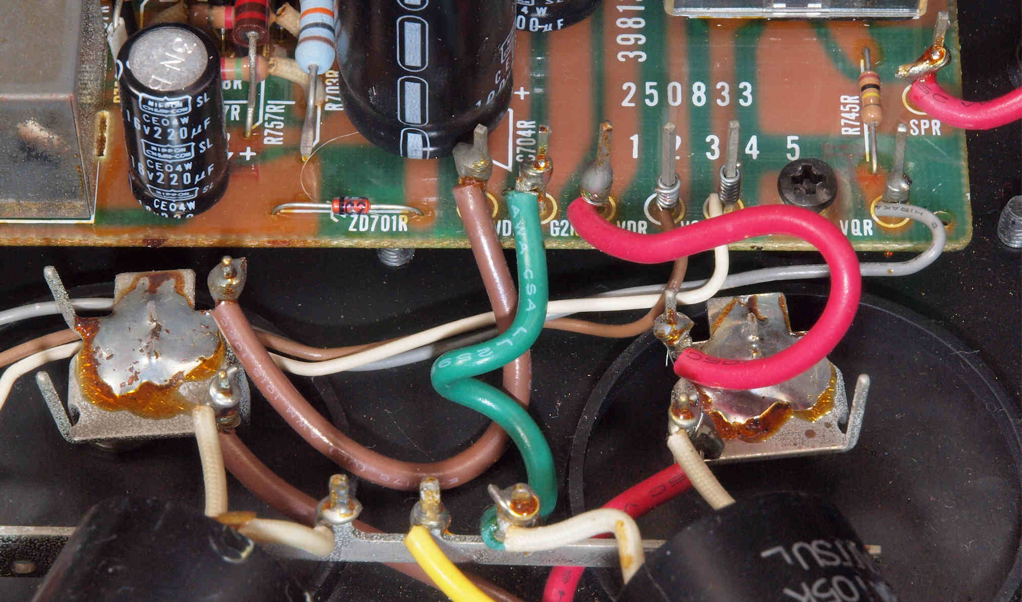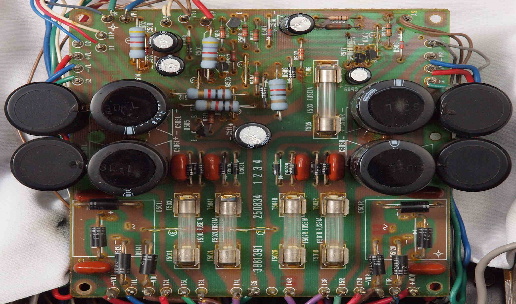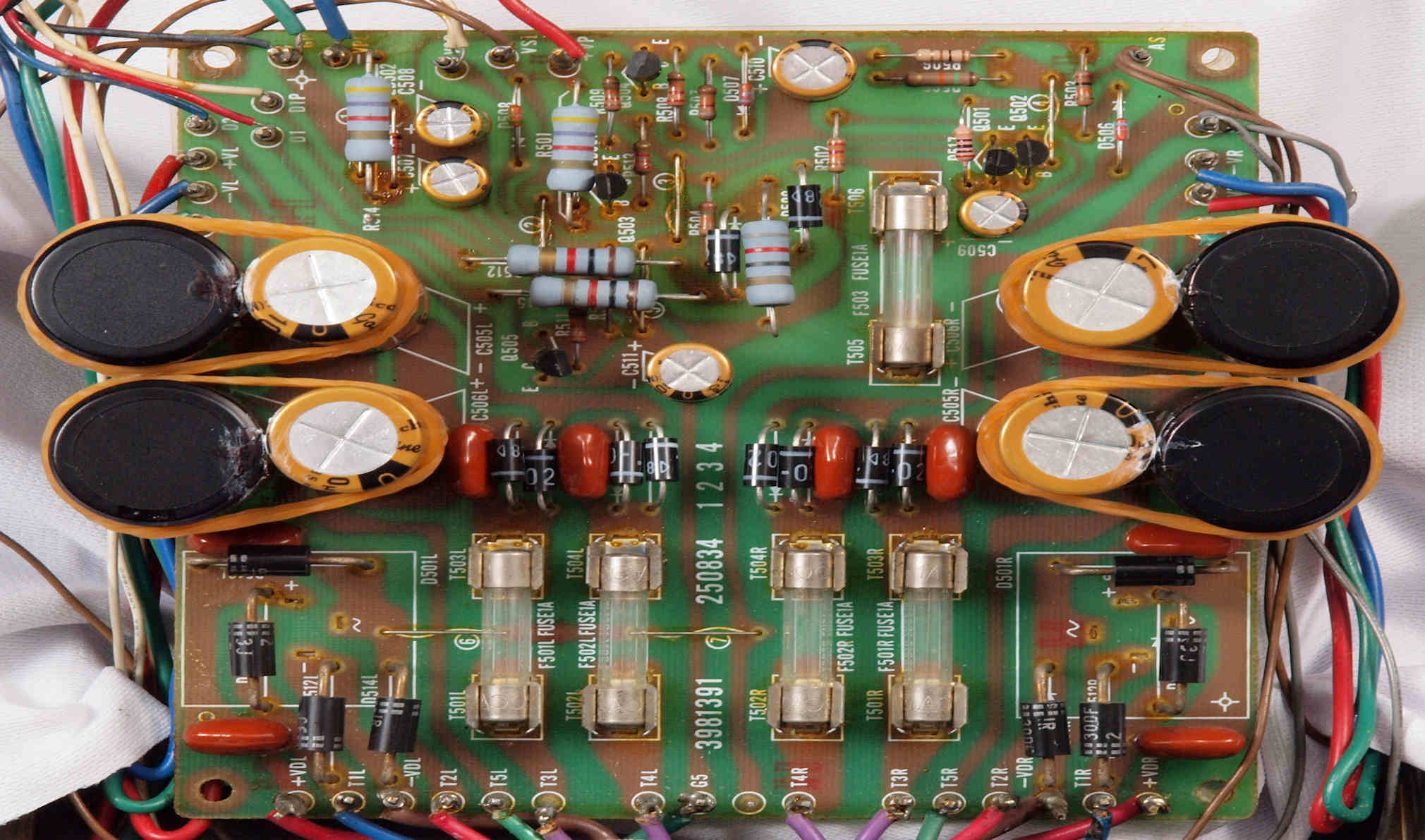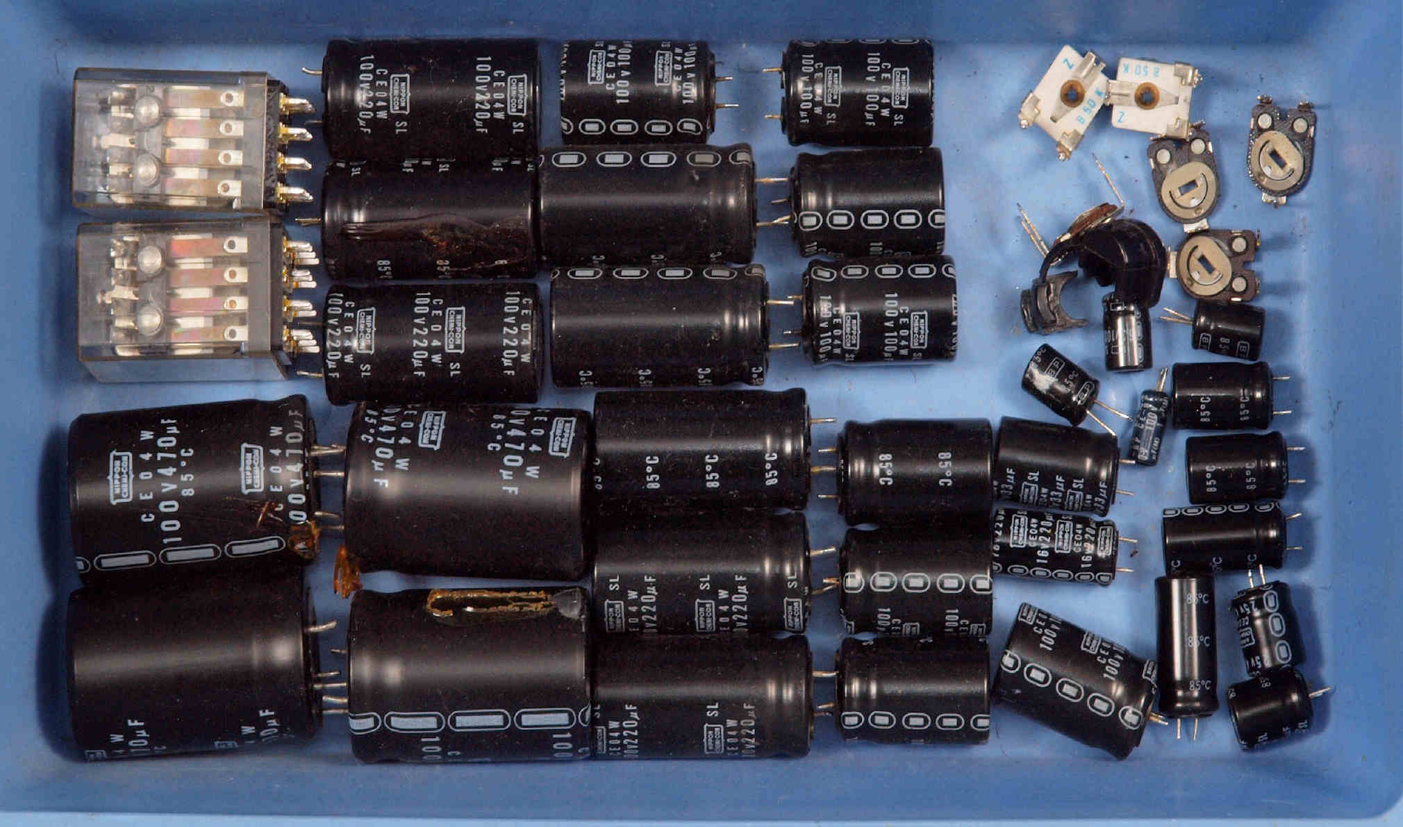 ヒューズ入り抵抗全部、電解コンデンサー11個交換