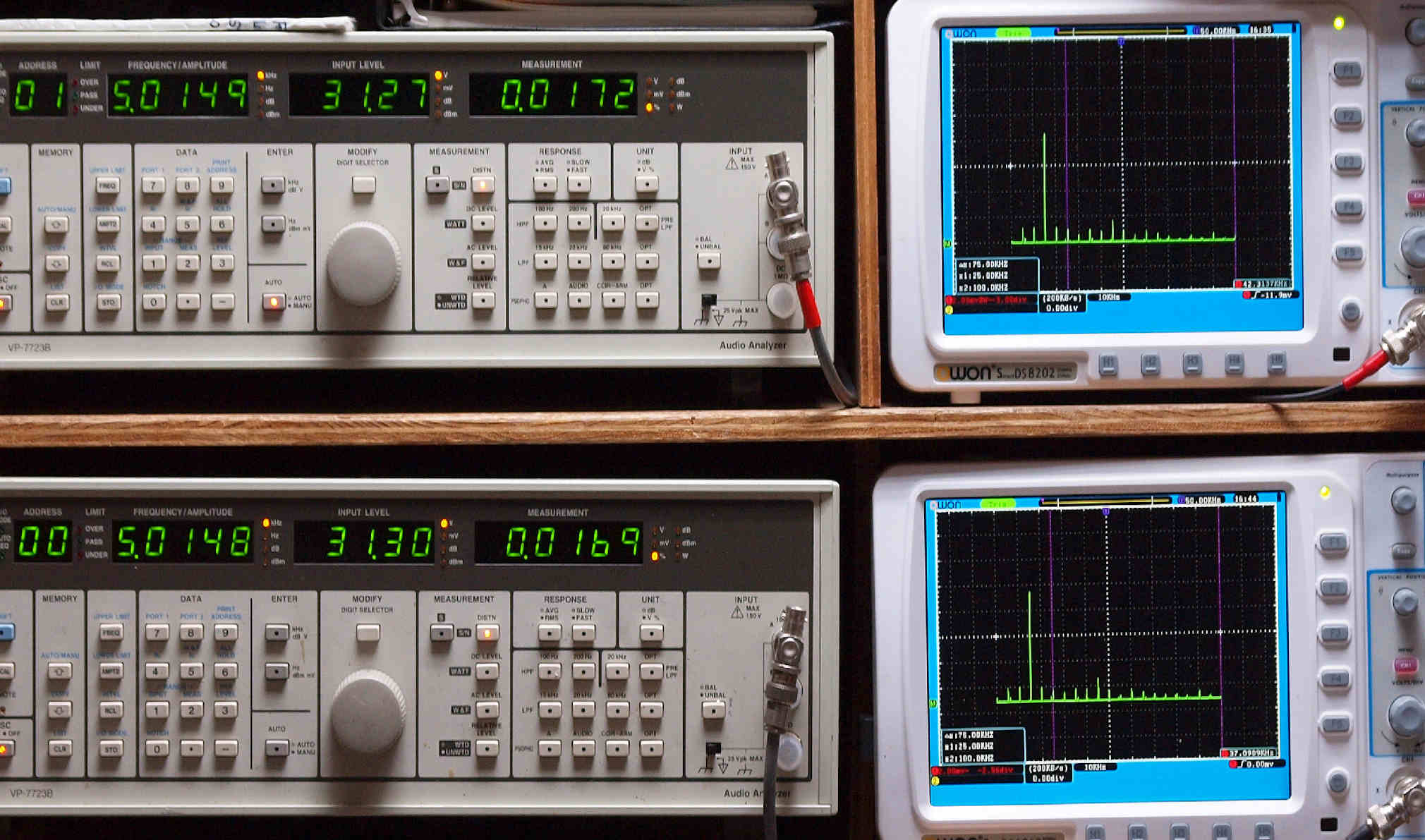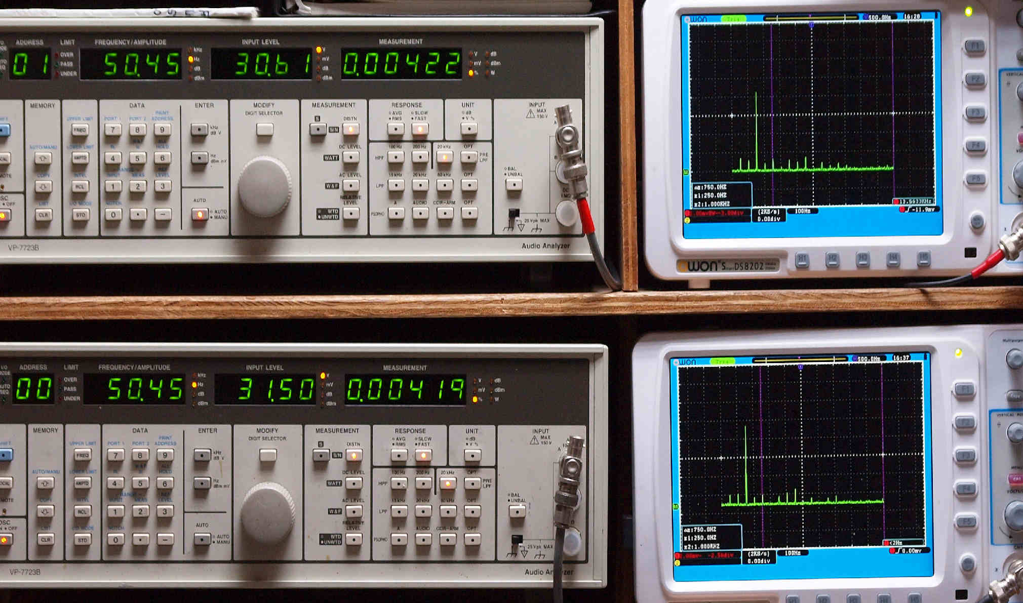 よって、ダイアル設定出力レベルより低くなります。測定機器の仕様や整備の様子はこちら、「VP−7723B」「VP−7201A」。 FFT画面の見方はこちら。