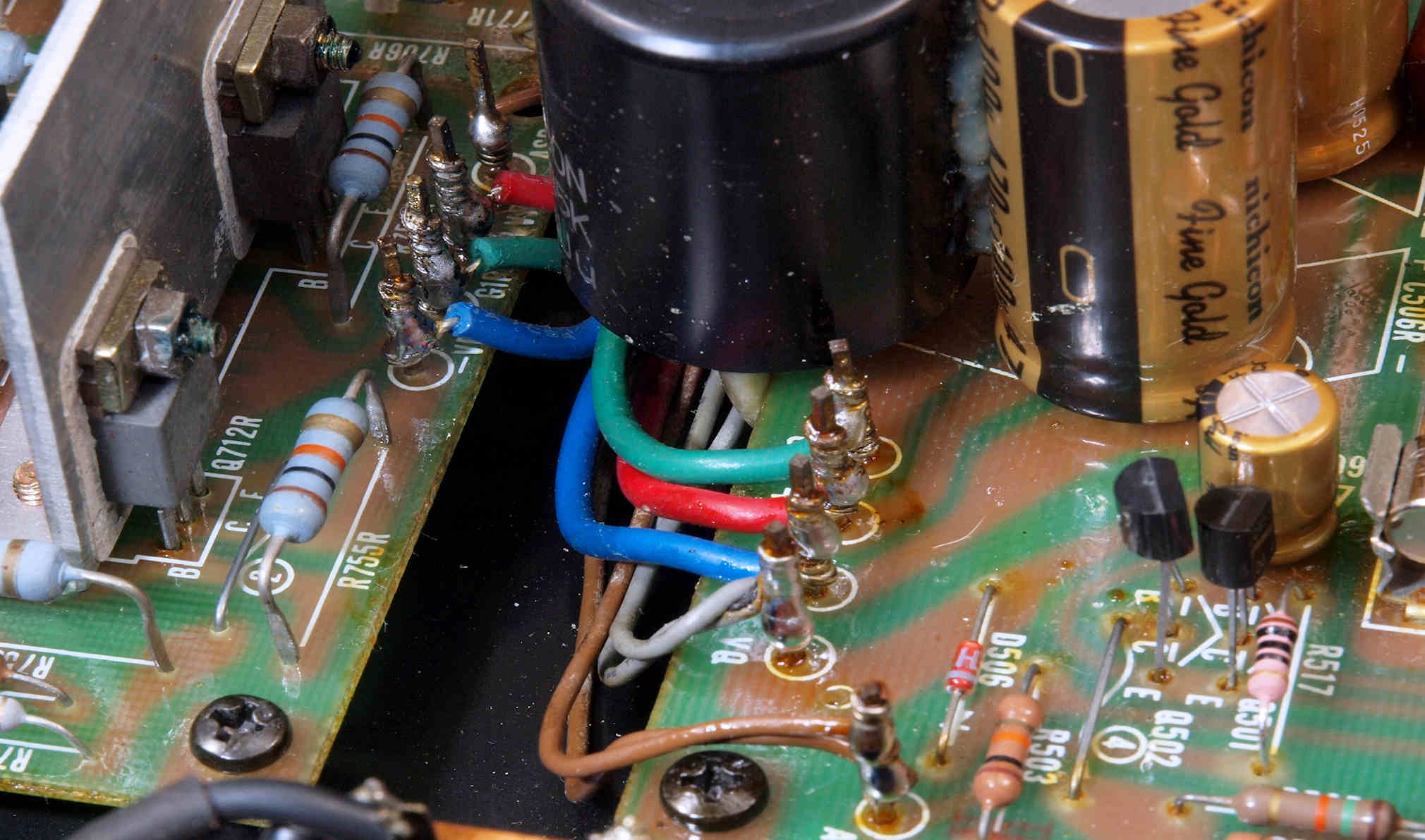 | CA6. 修理後 R側ドライブ基板−電源基板へのラッピング線に半田を浸み込ませる |