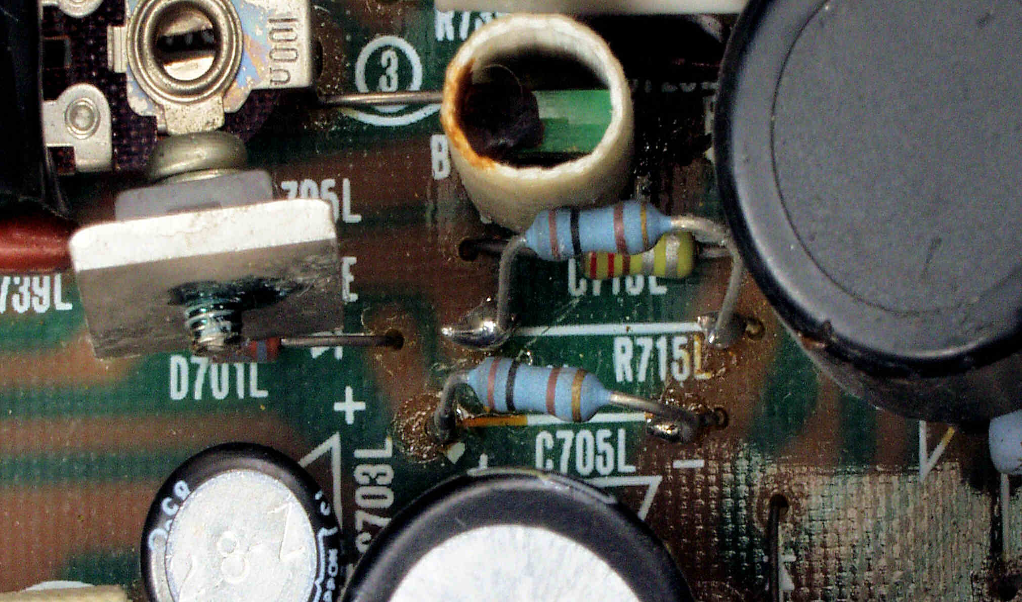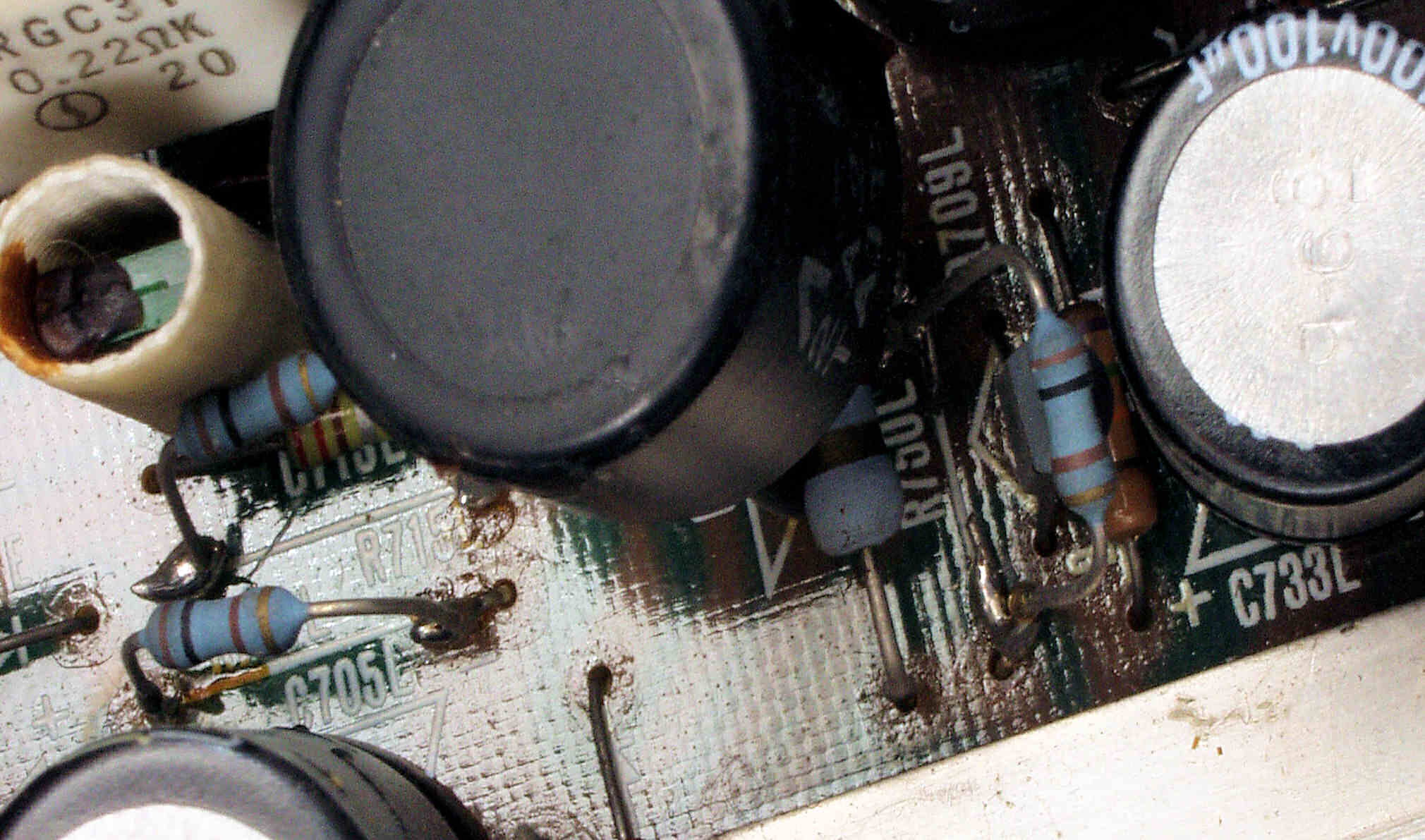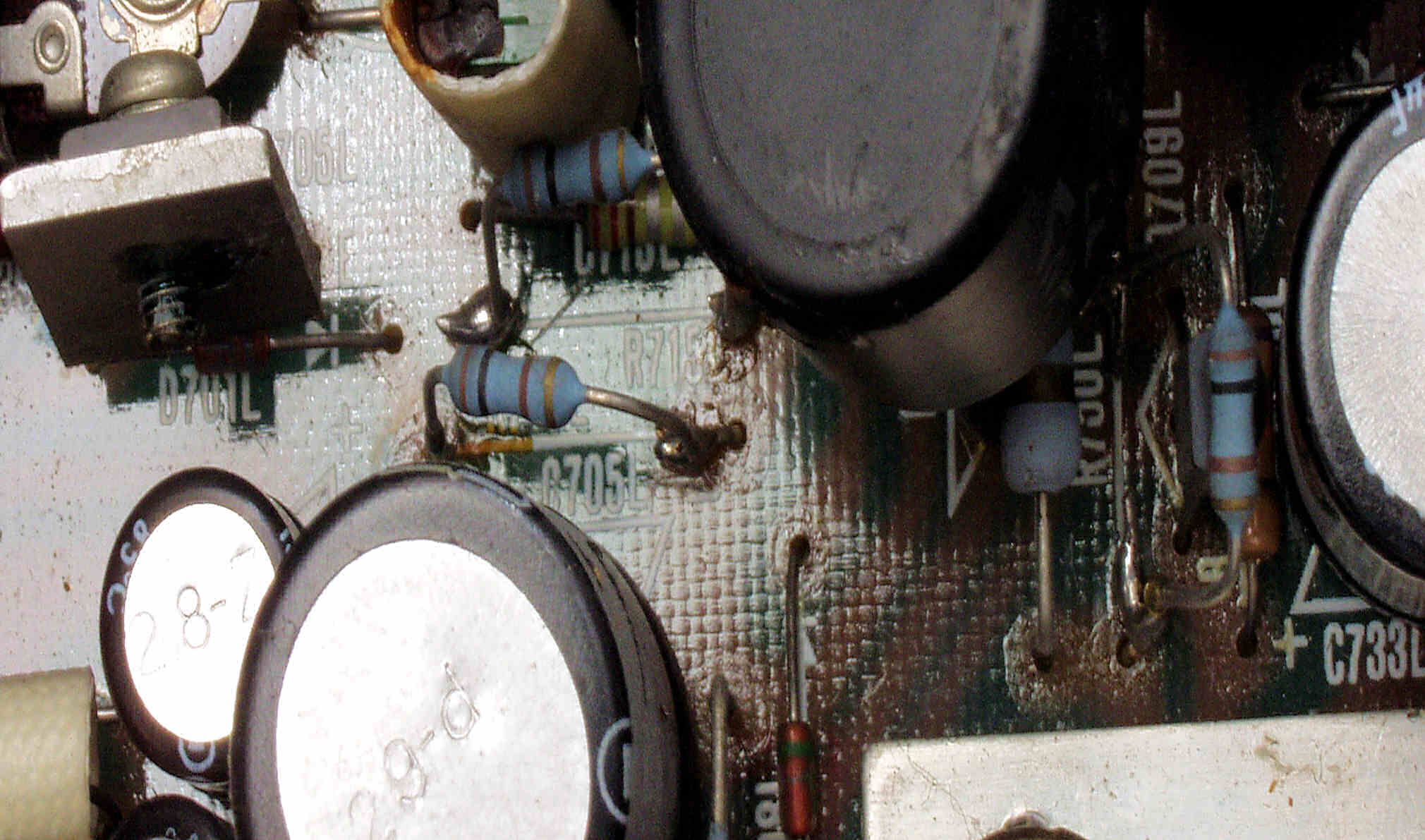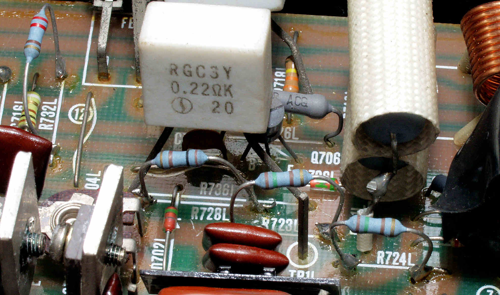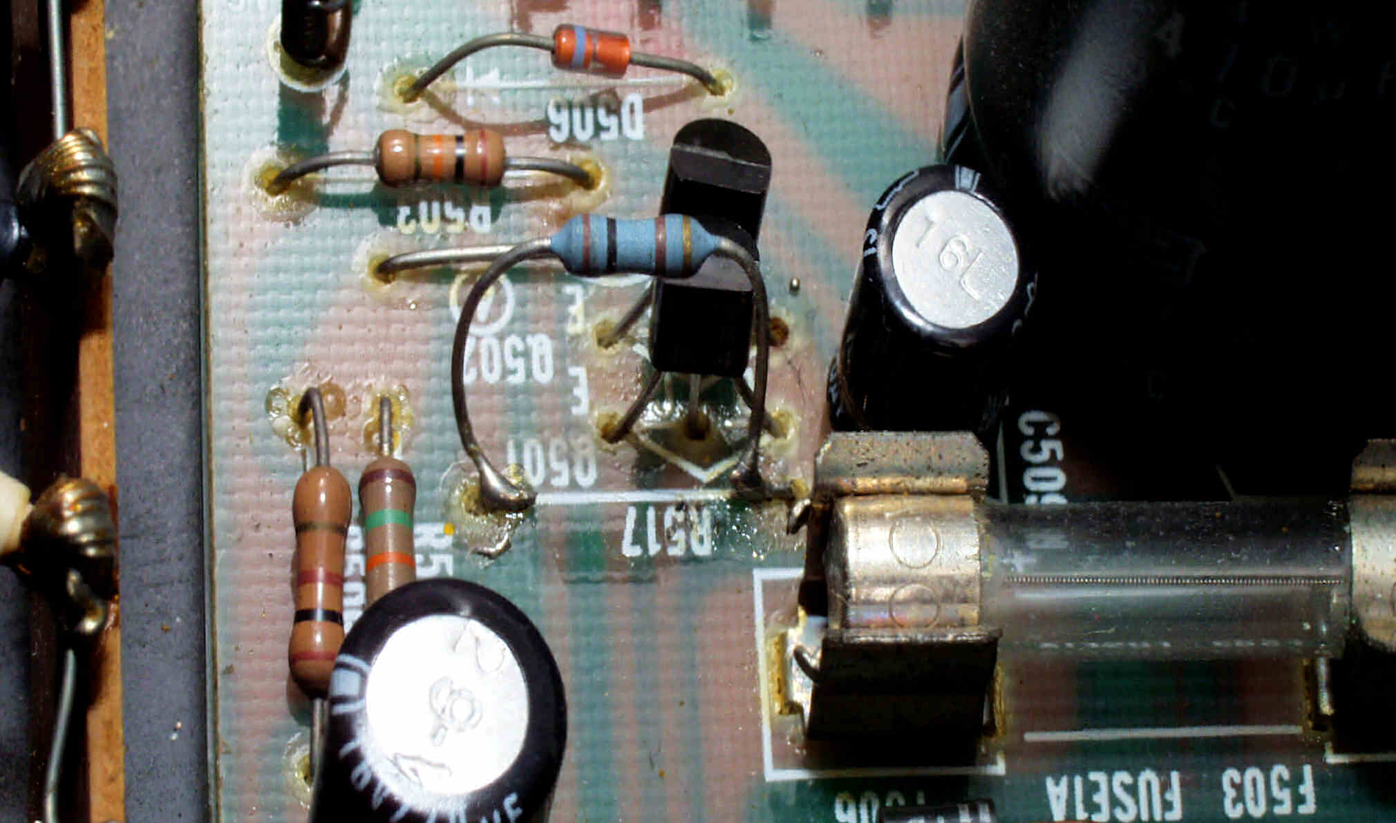 A31. 点検中 電源基板、前回の修理で交換された抵抗、基板を外すのが面倒なので、継ぎ足し