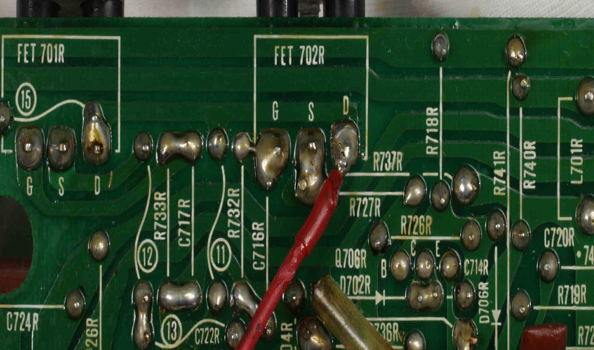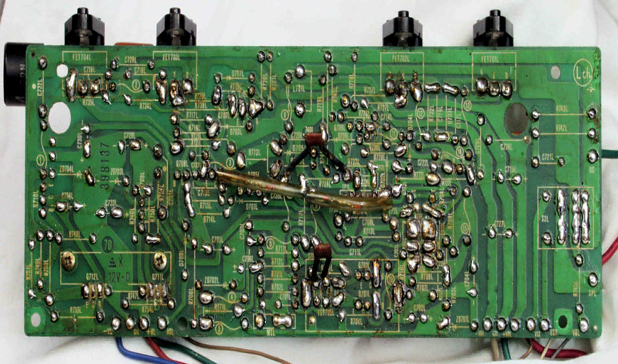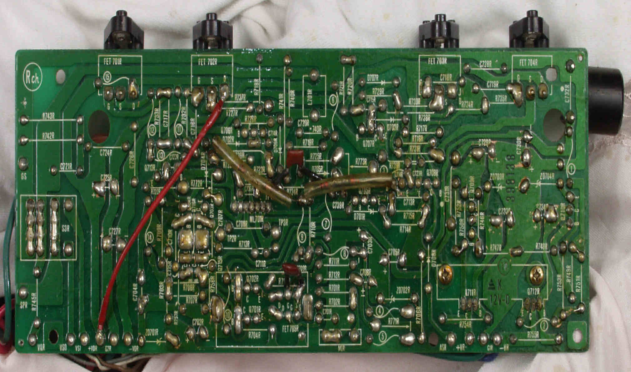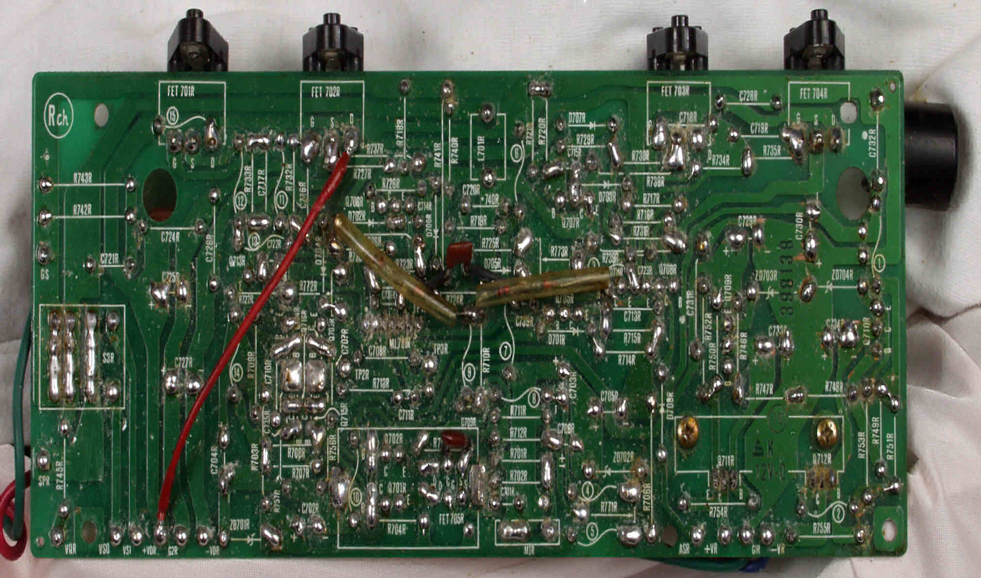 C14. 修理(半田補正)後 R側ドライブ基板裏 半田を全部やり直す 普通はこれで完成