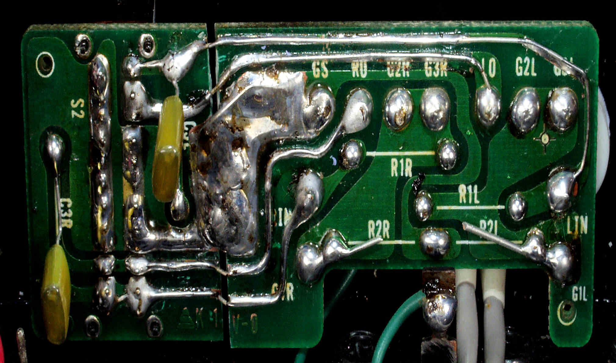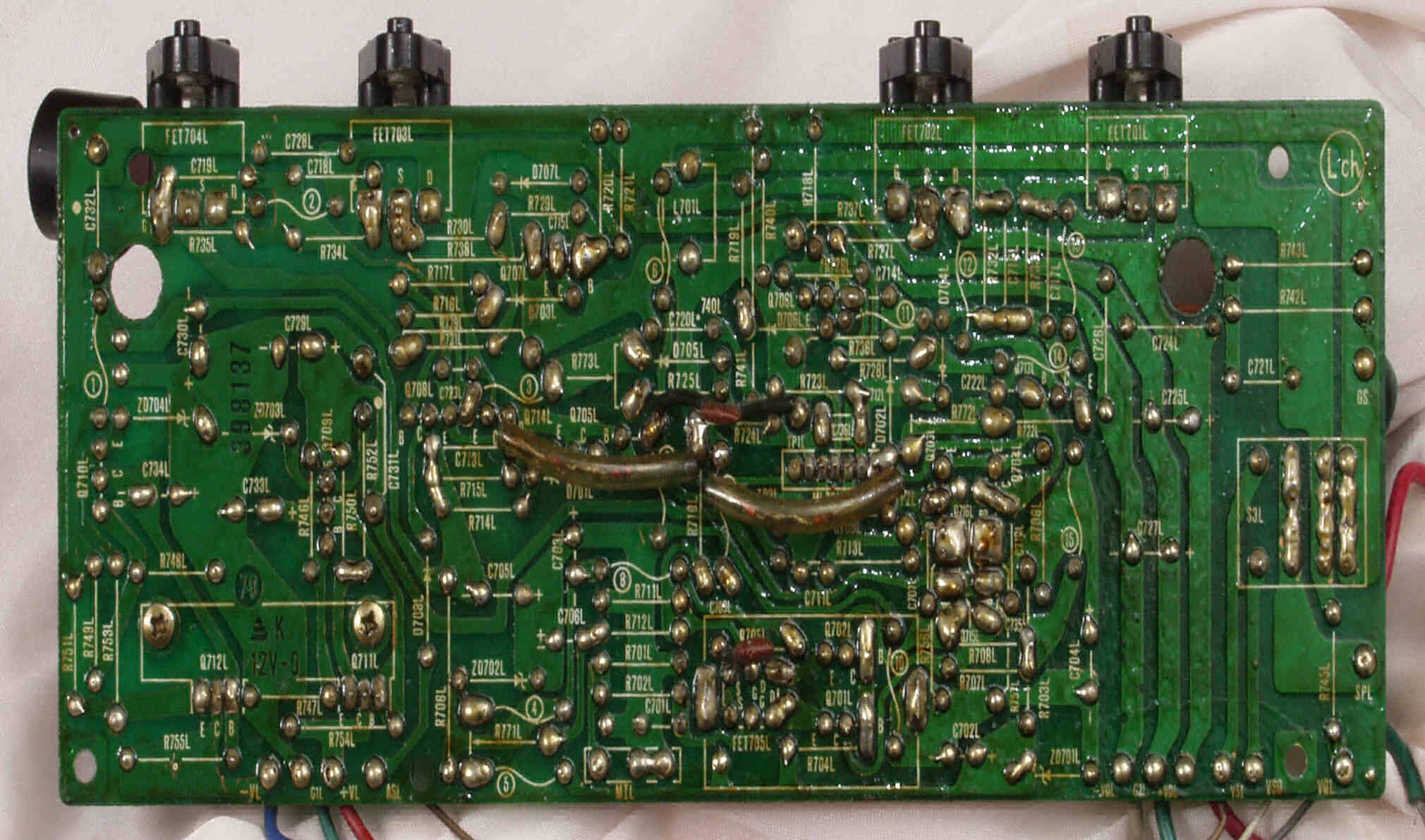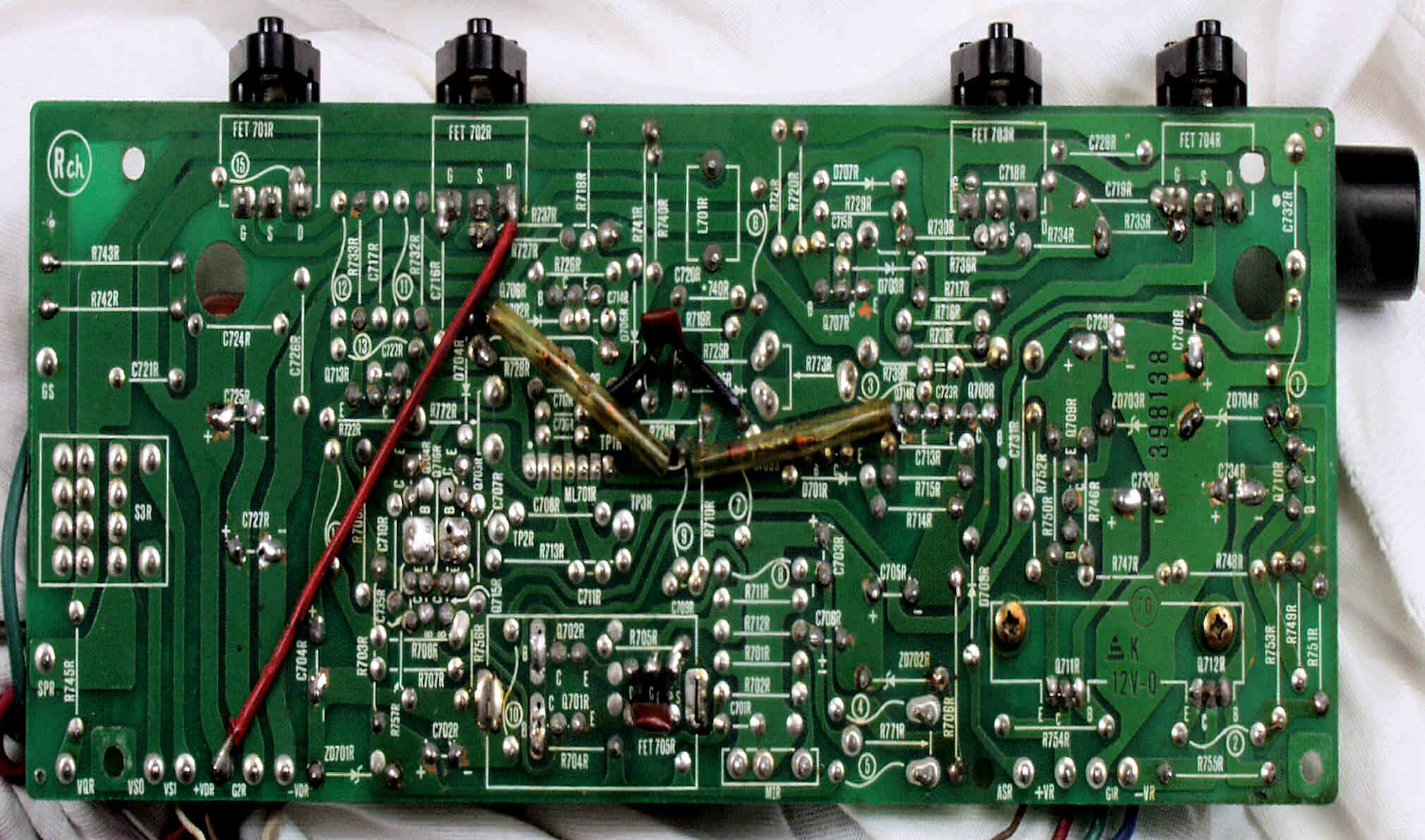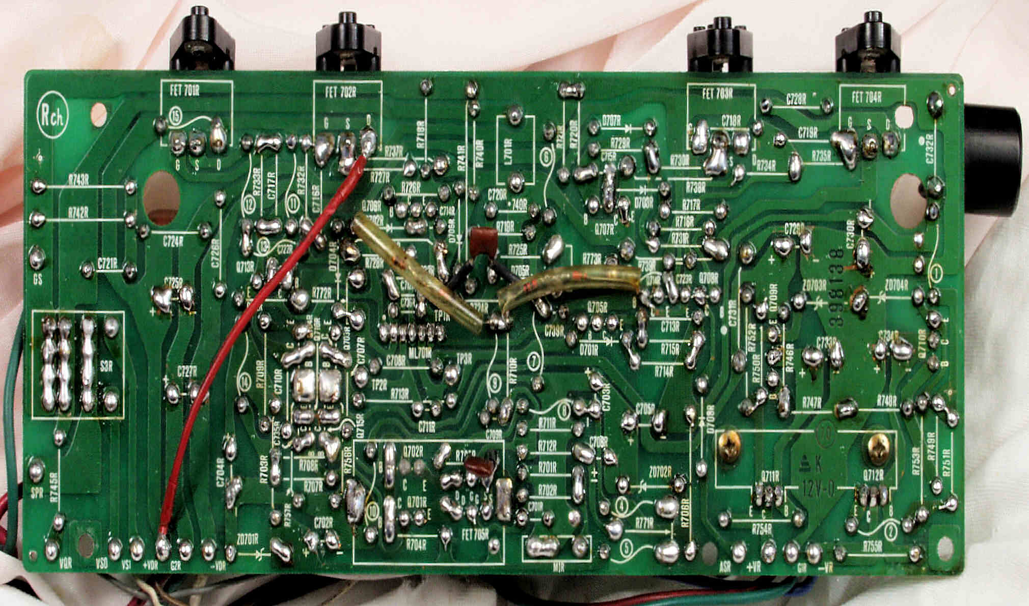 C14. 修理(半田補正)後 R側ドライブ基板裏 半田を全部やり直す 普通はこれで完成