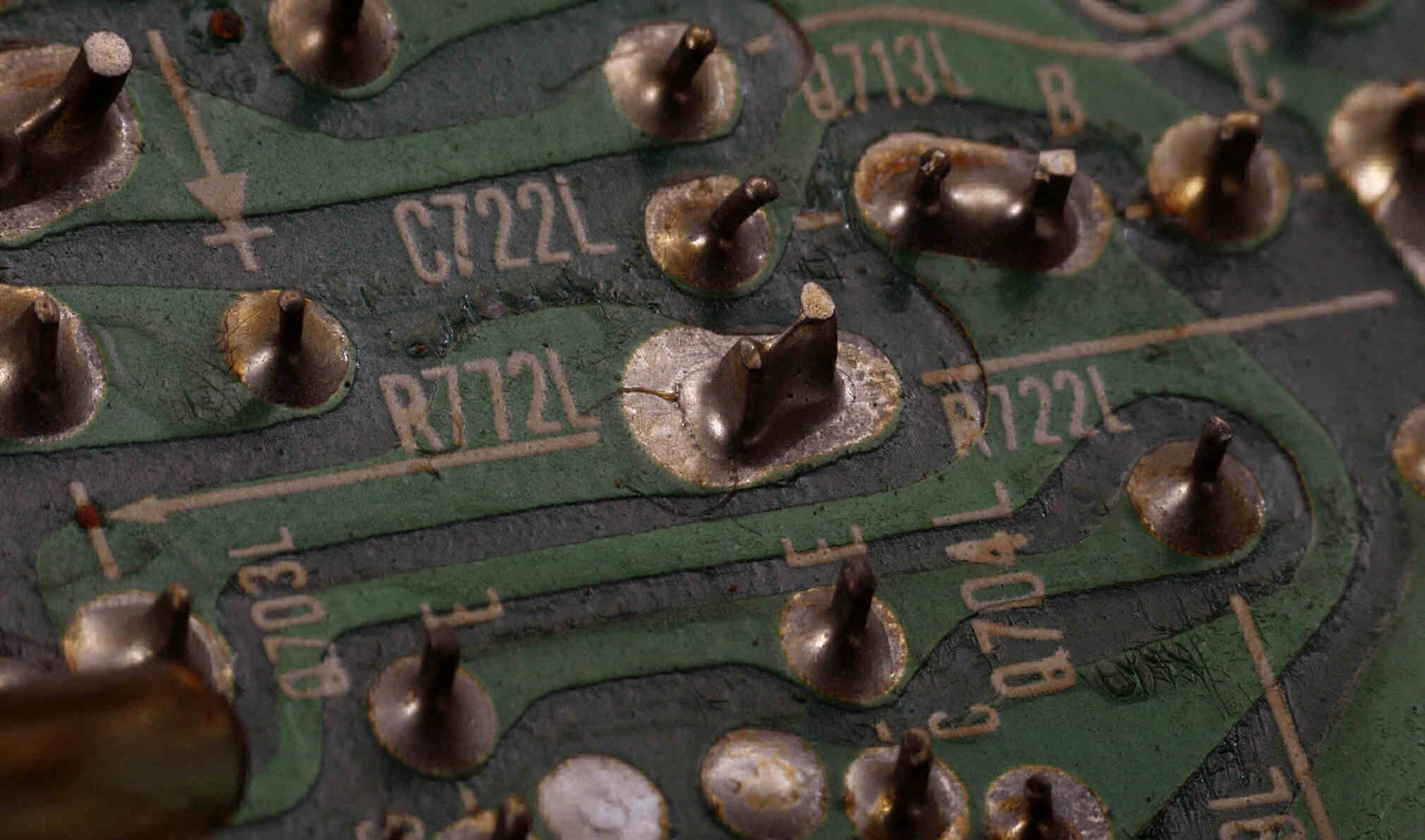 C102. 修理後 R側ドライブ基板へのラッピング線に半田を浸み込ませる
