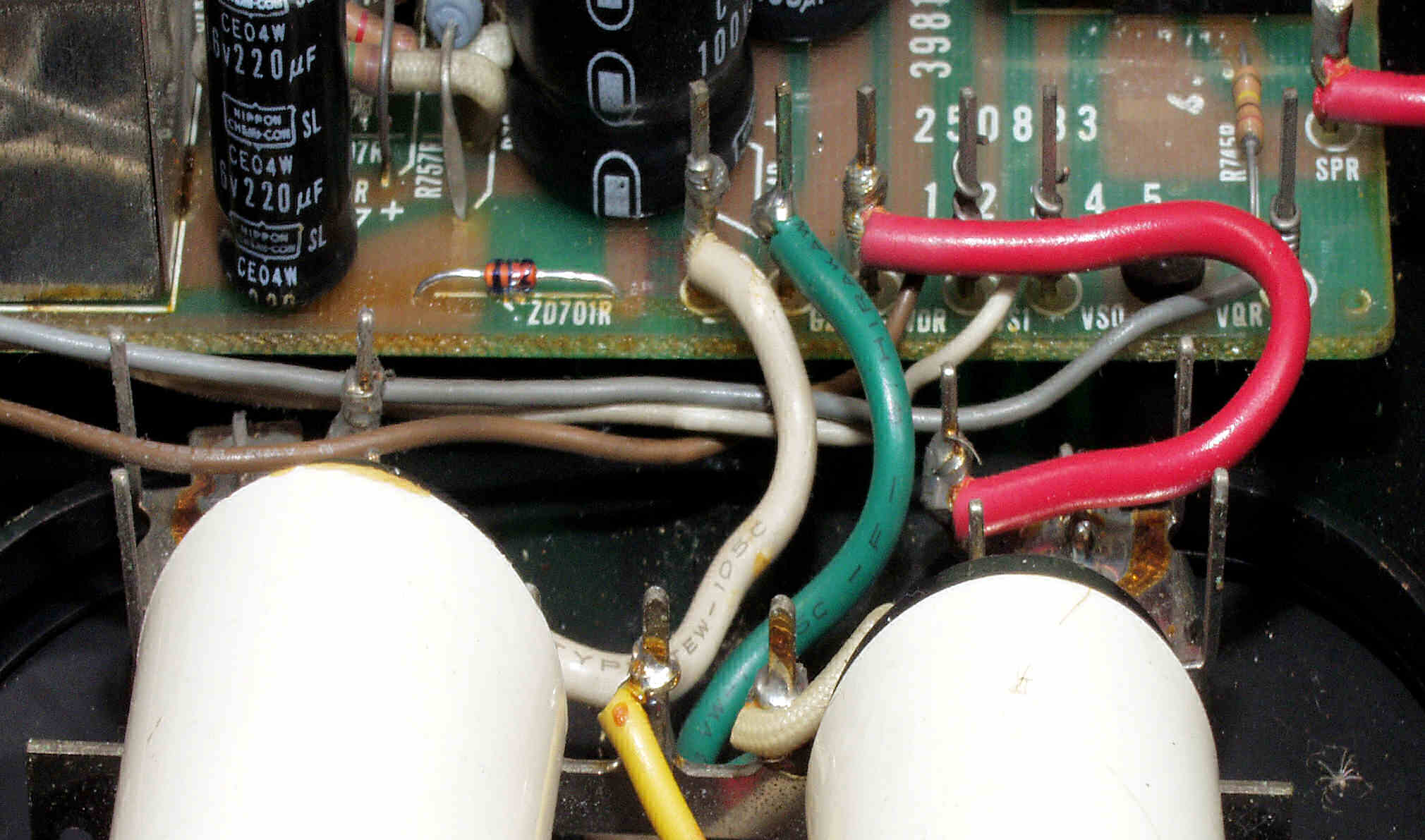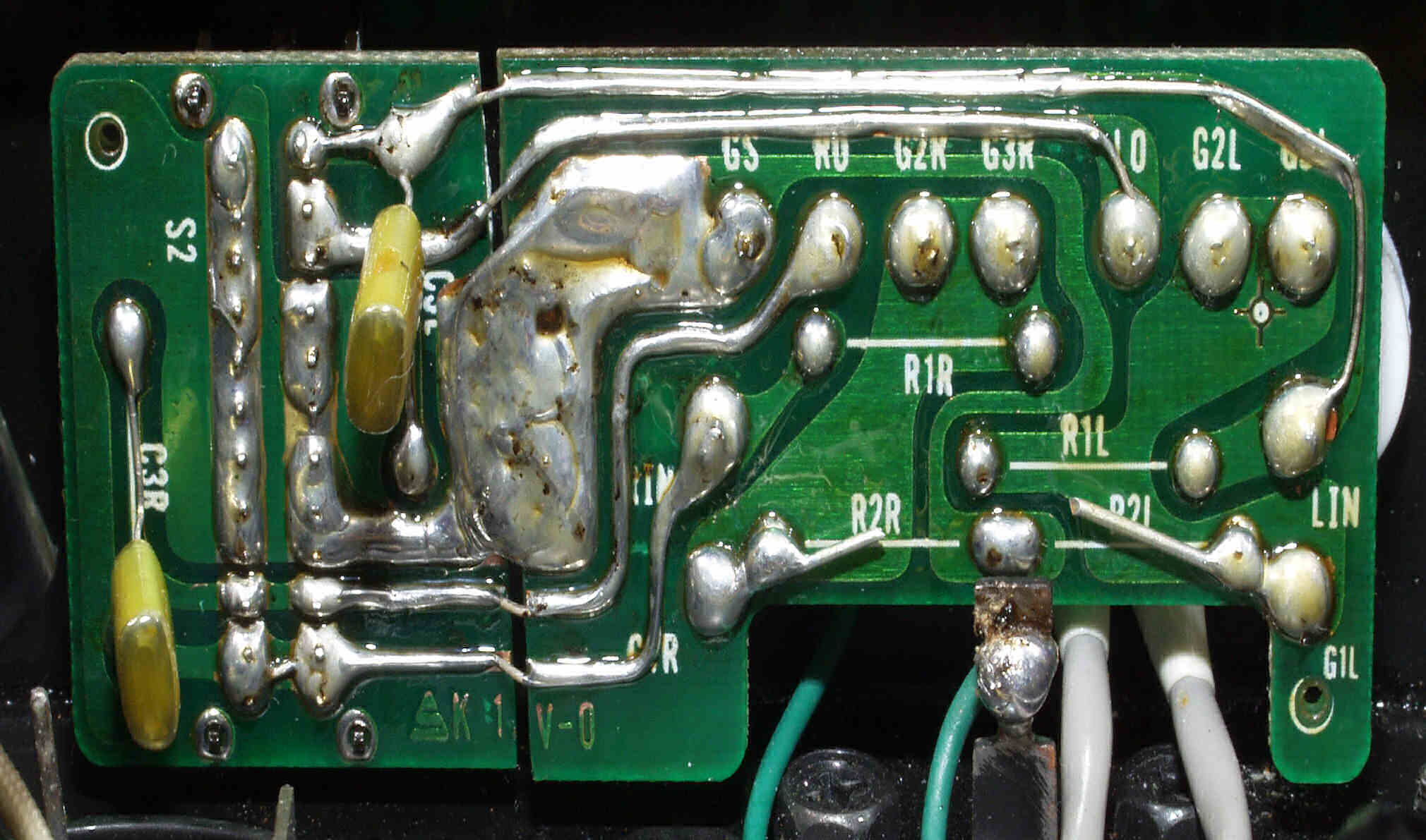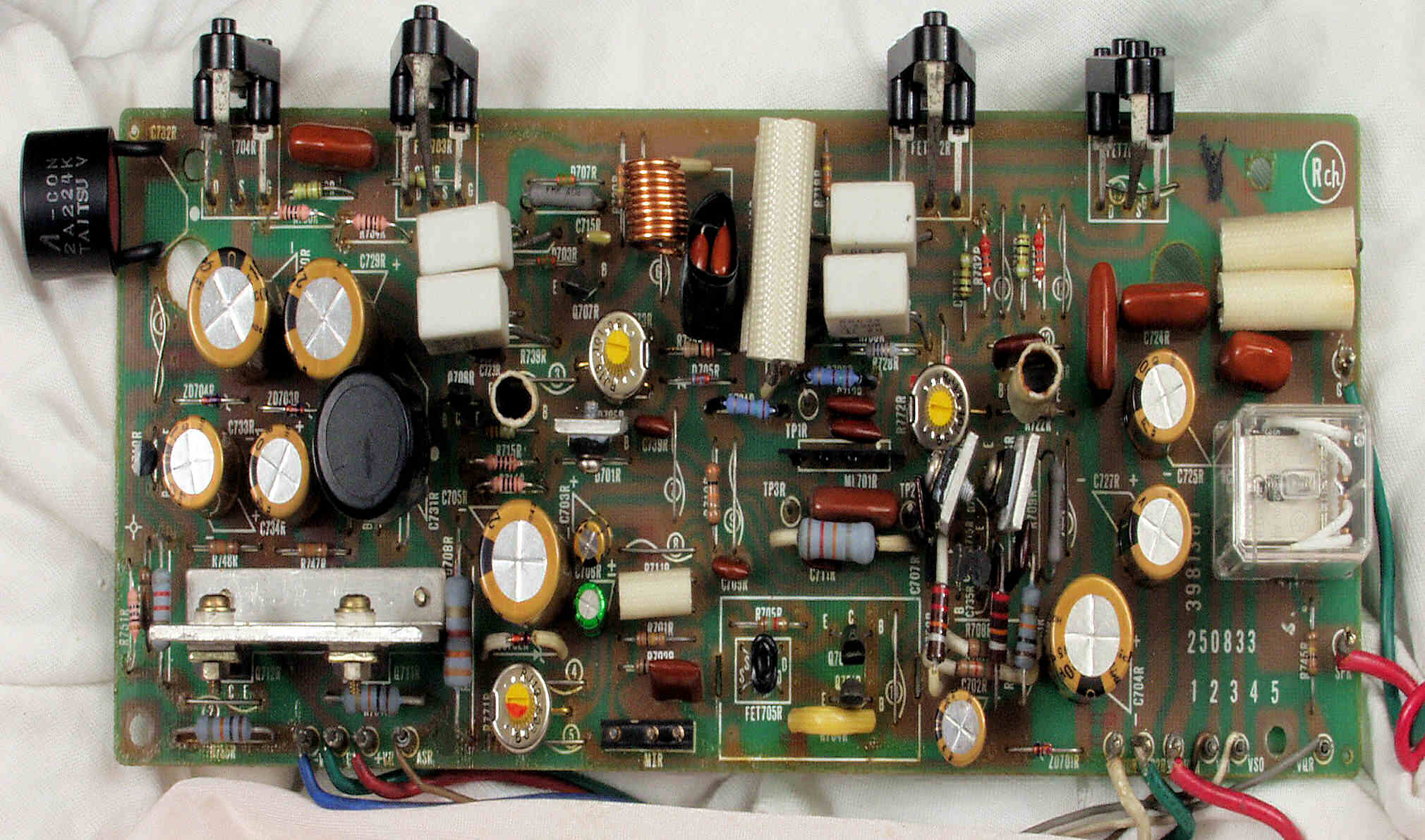 C65. 修理前 RCA端子基板裏、フイルムコンデンサー2個交換