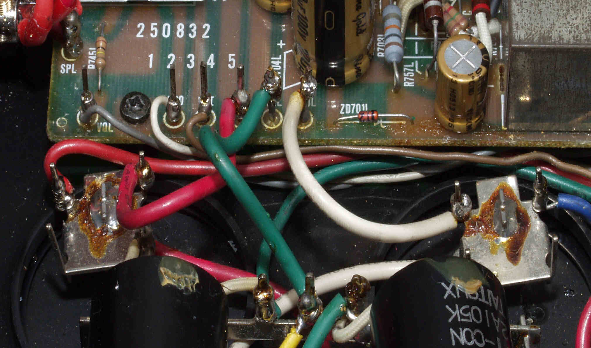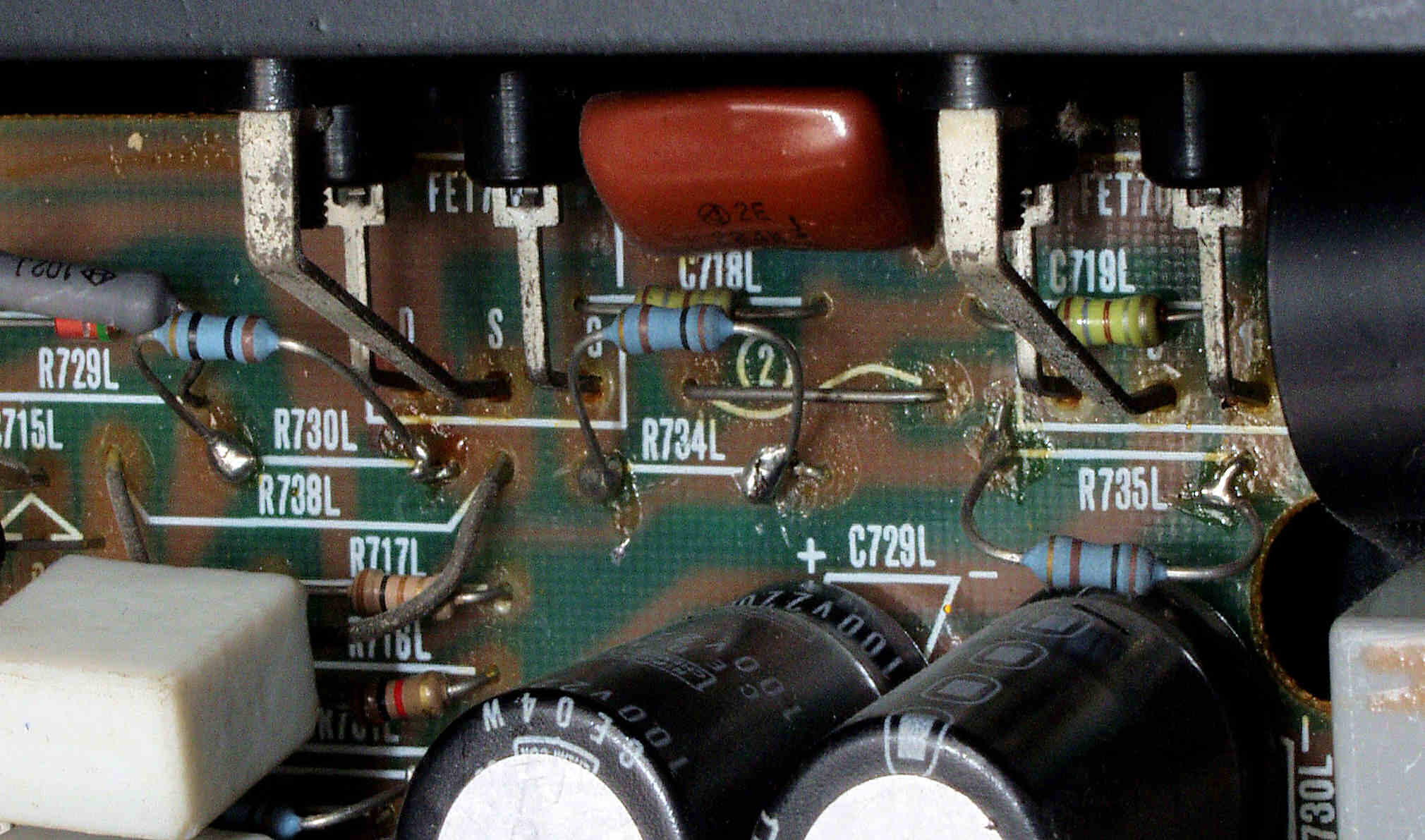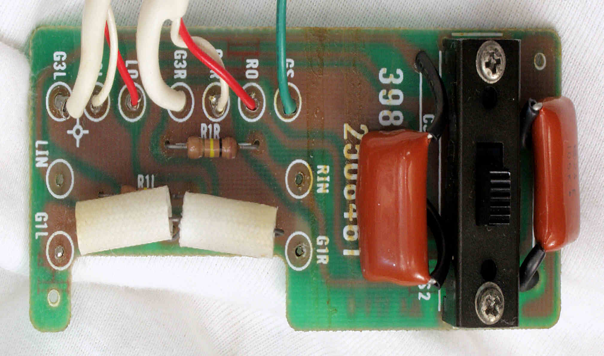 C65. 修理前 RCA端子基板裏、フイルムコンデンサー2個交換