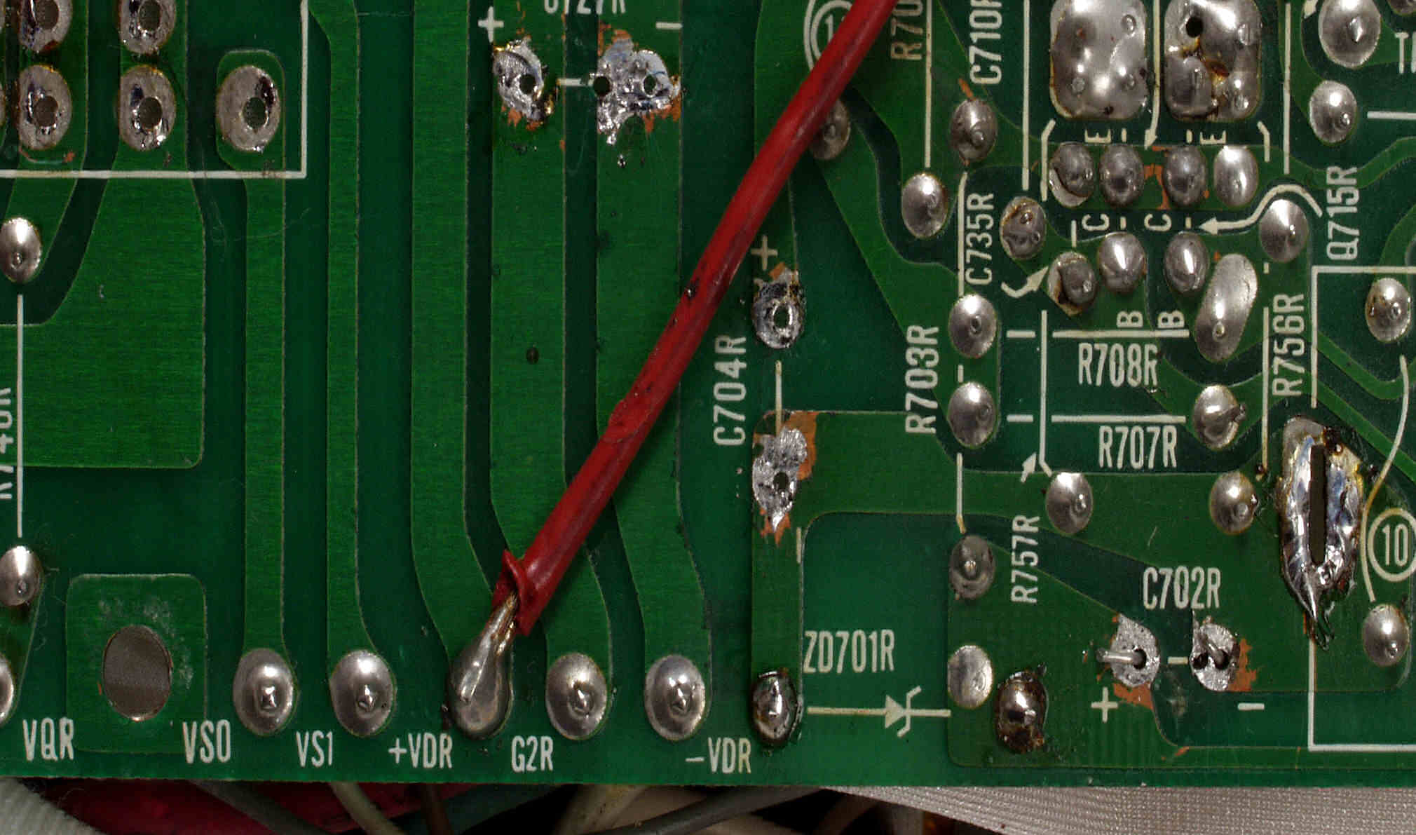 C101. 修理前 R側ドライブ基板へのラッピング線