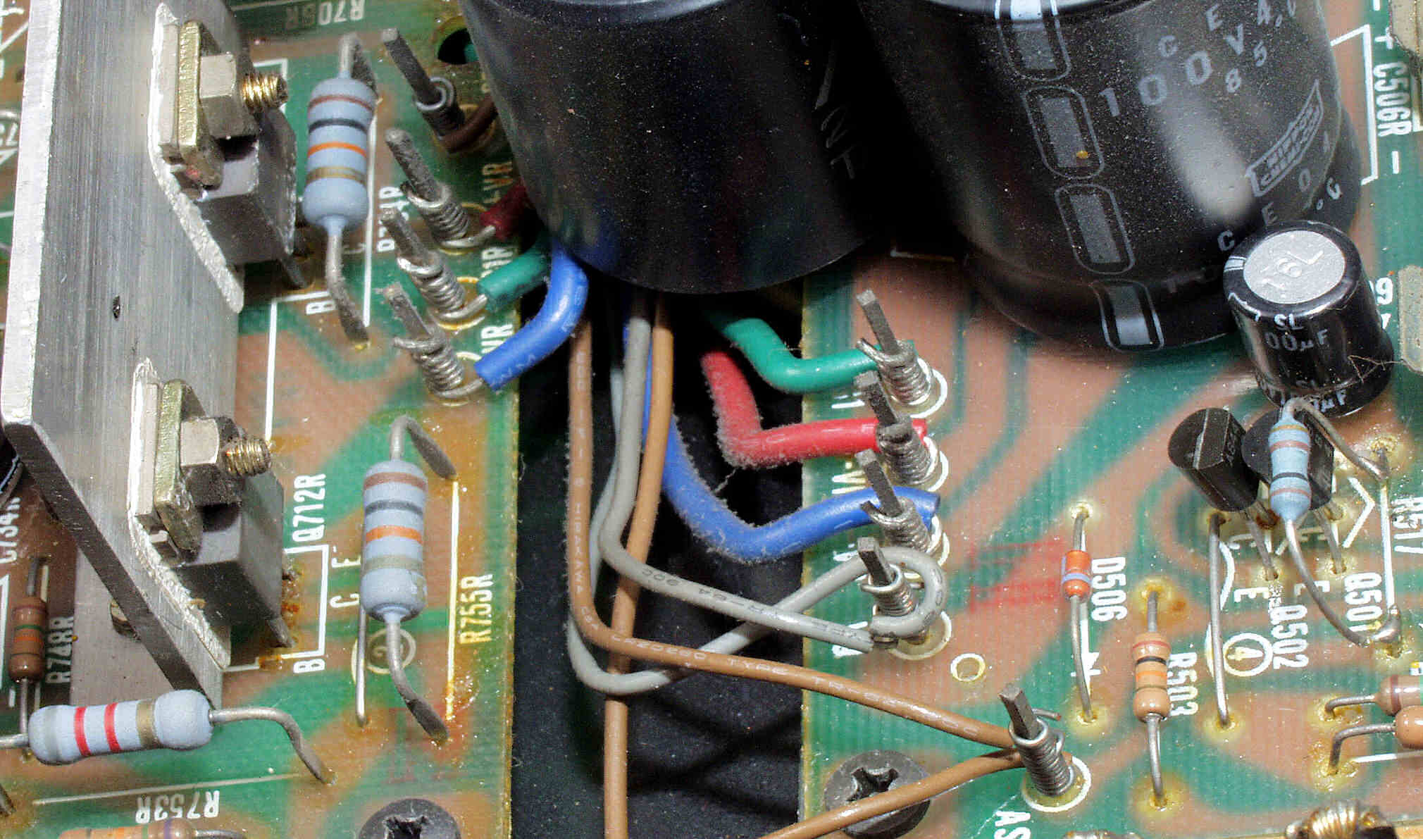 C105. 修理前 R側ドライブ基板−電源基板へのラッピング線