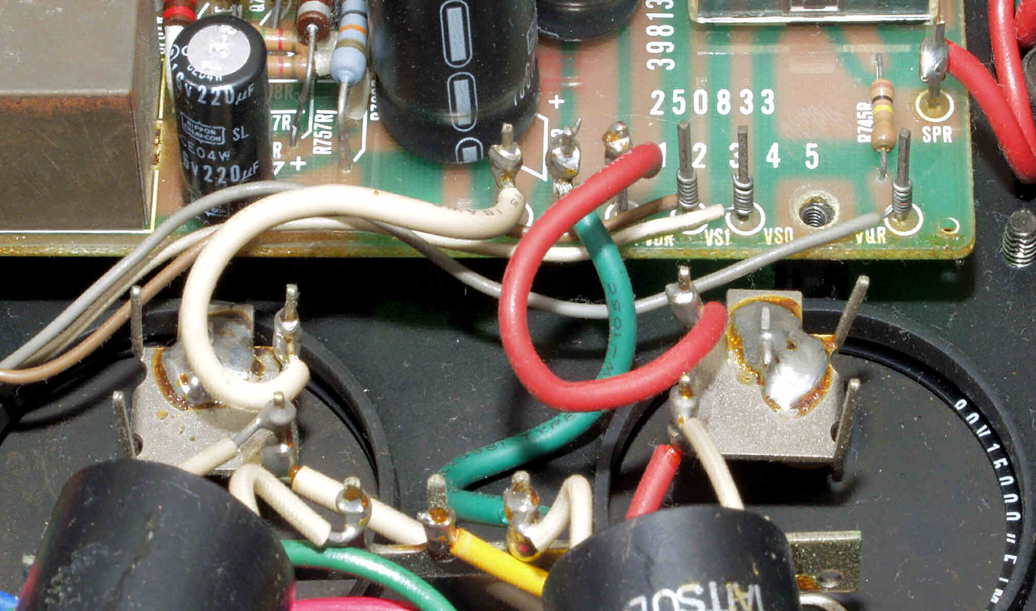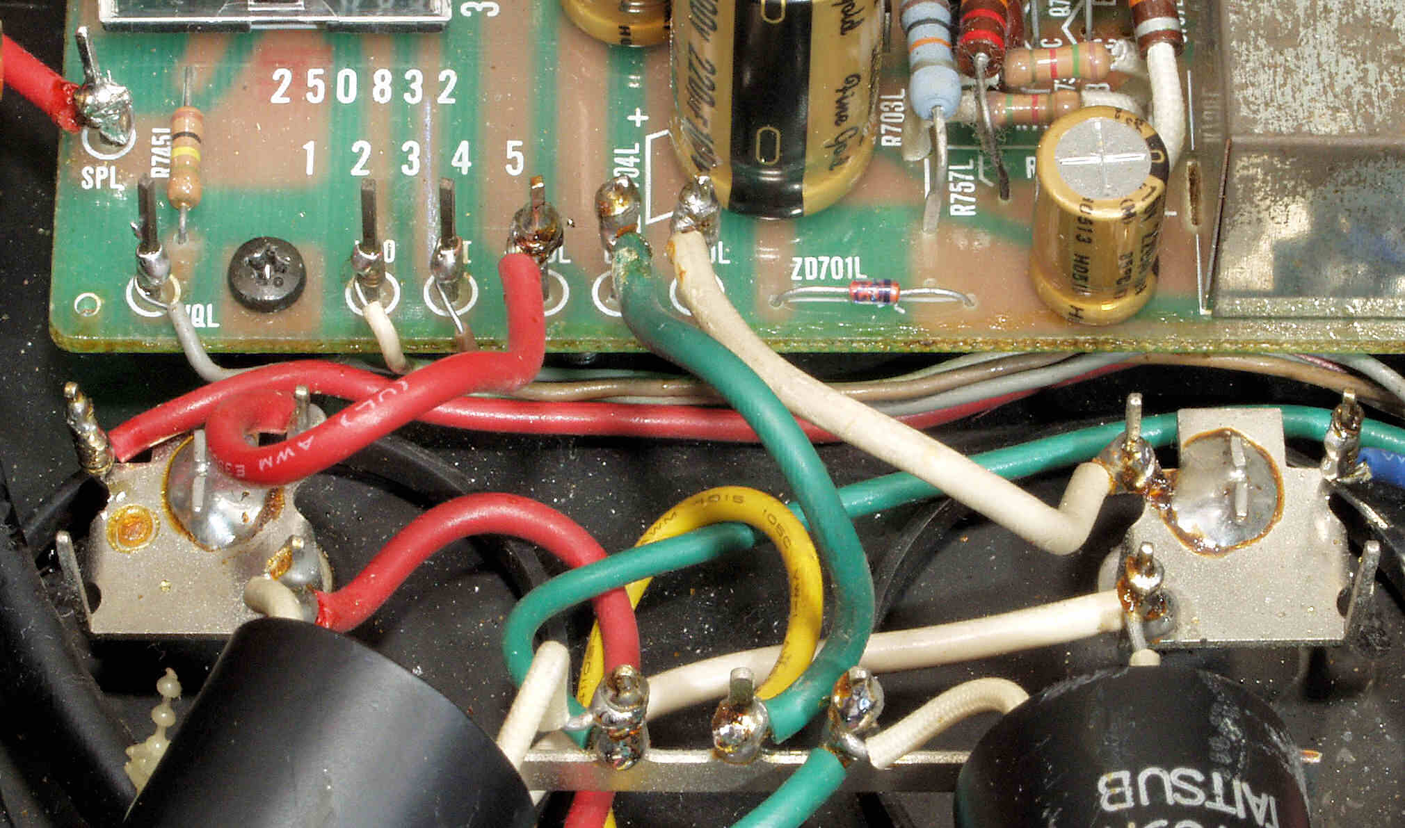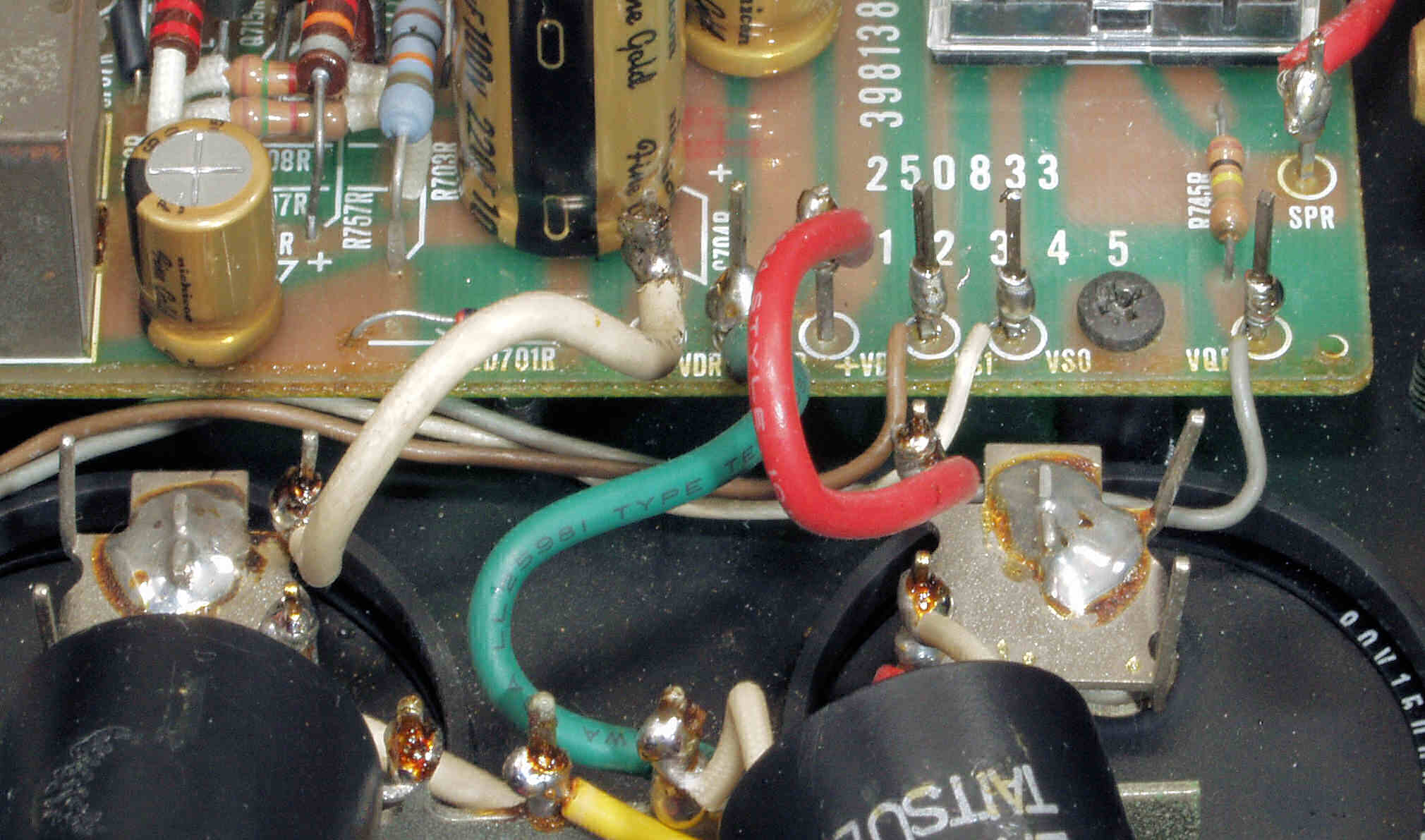 | CA5. 修理前 R側ドライブ基板−電源基板へのラッピング線 |