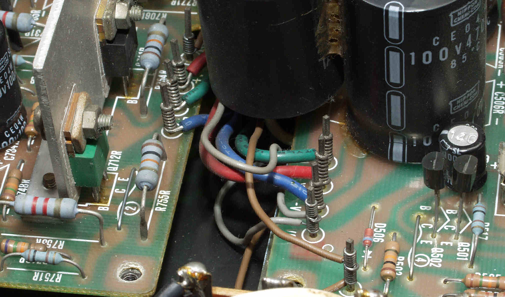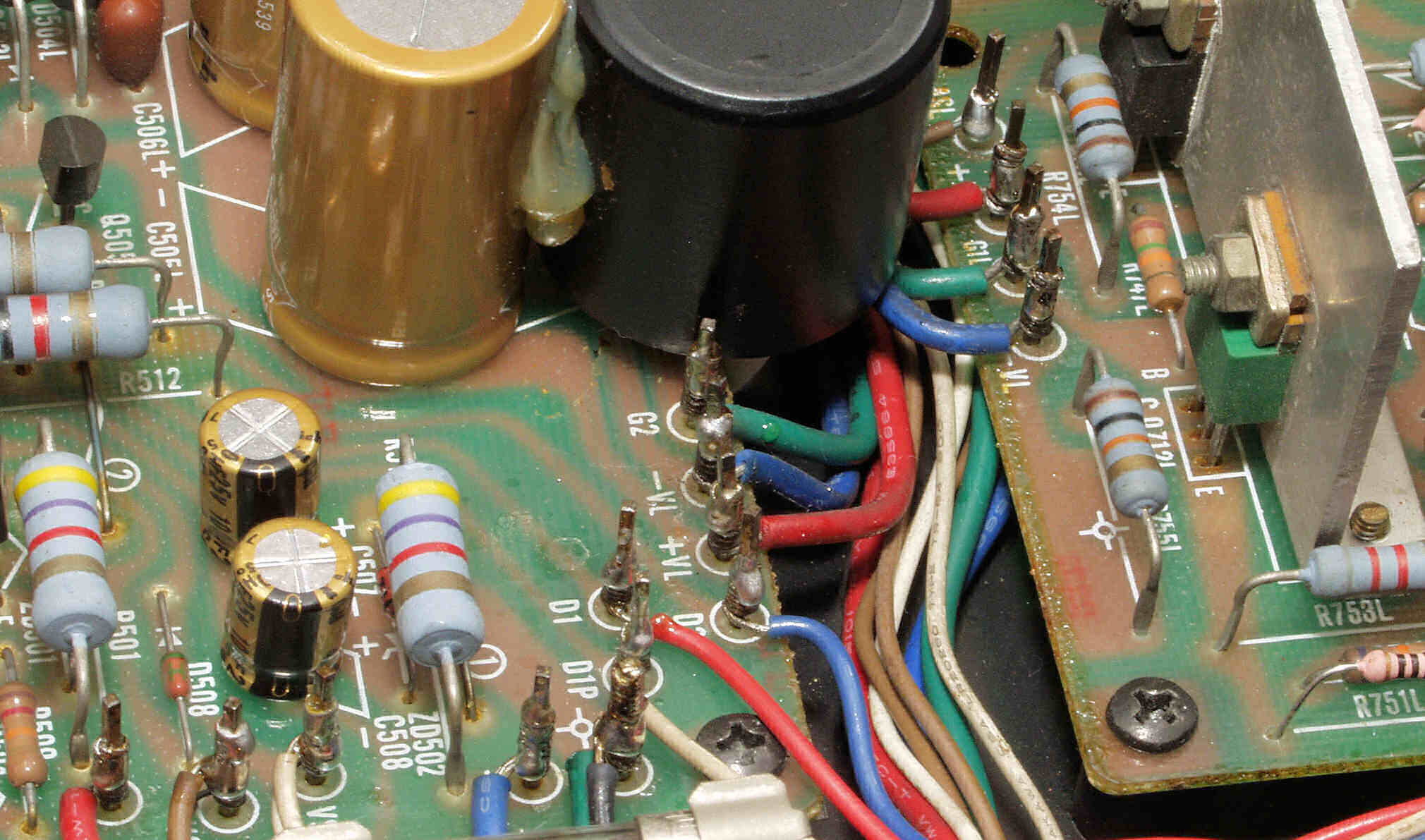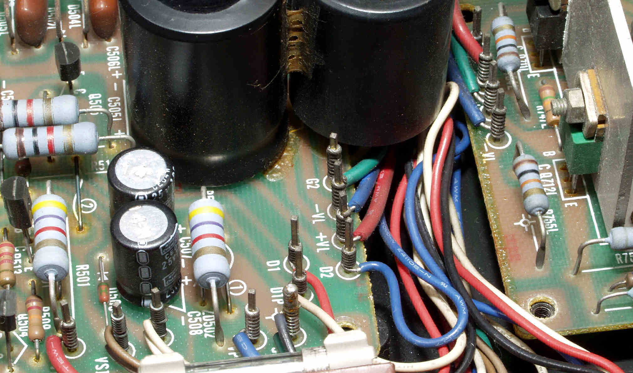 | CA5. 修理前 R側ドライブ基板−電源基板へのラッピング線 |