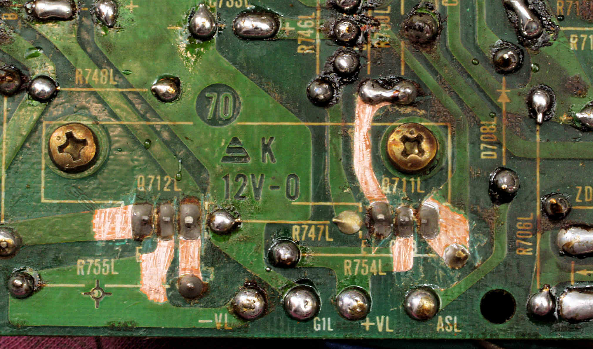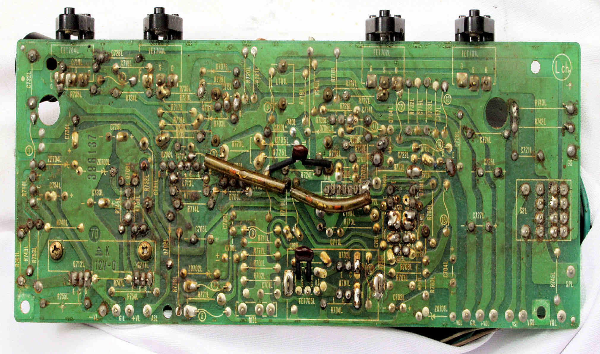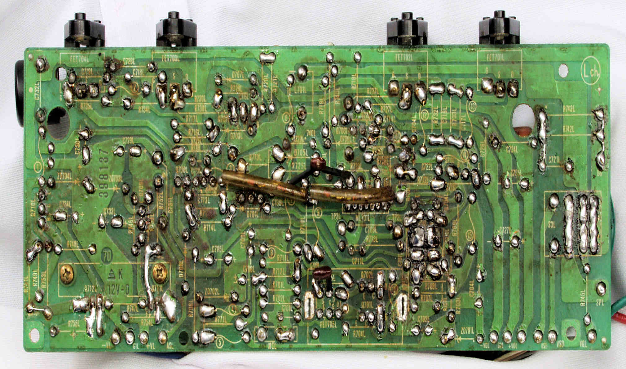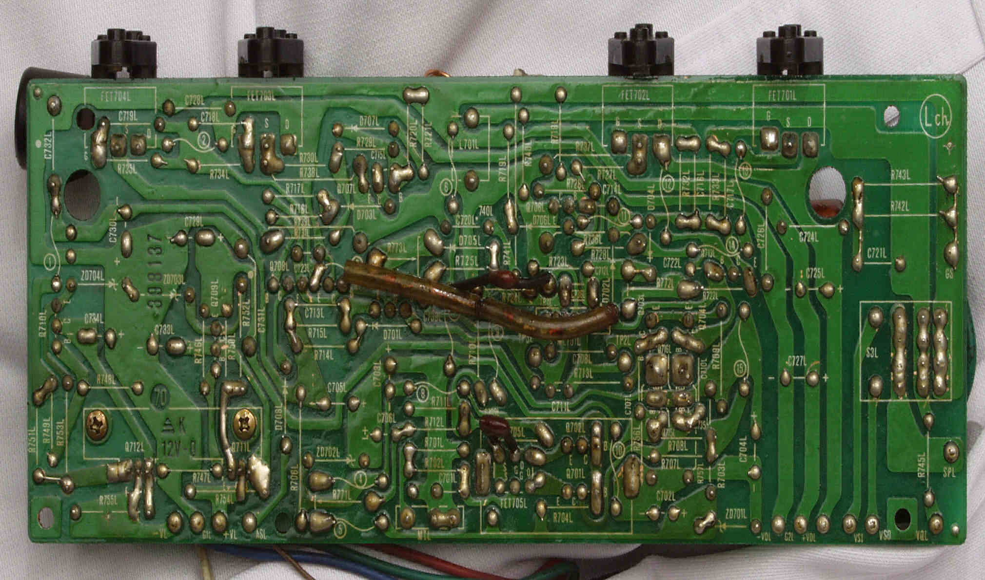 | C24. 修理(半田補正)後 L側ドライブ基板裏 半田を全部やり直す。 普通はこれで完成。 |