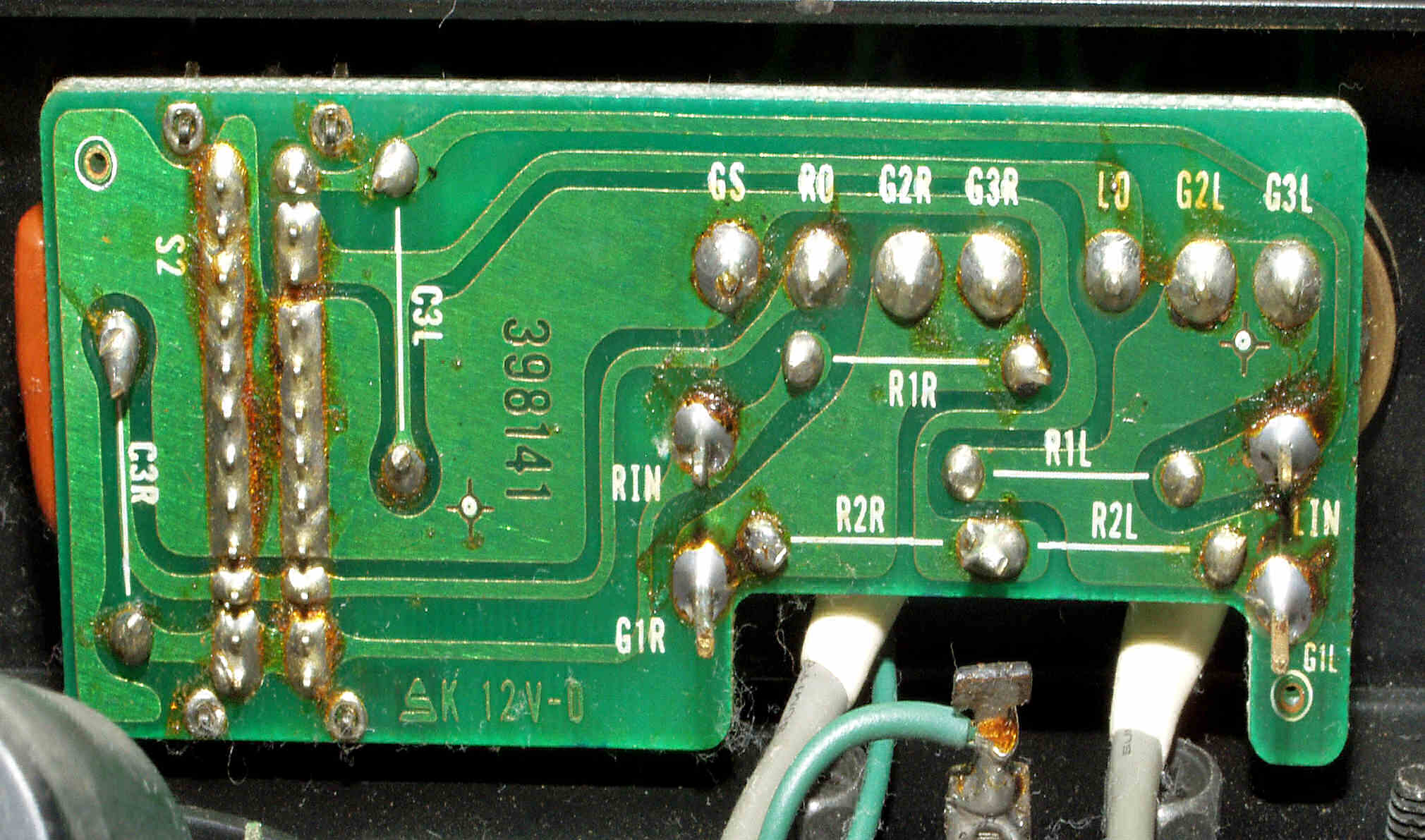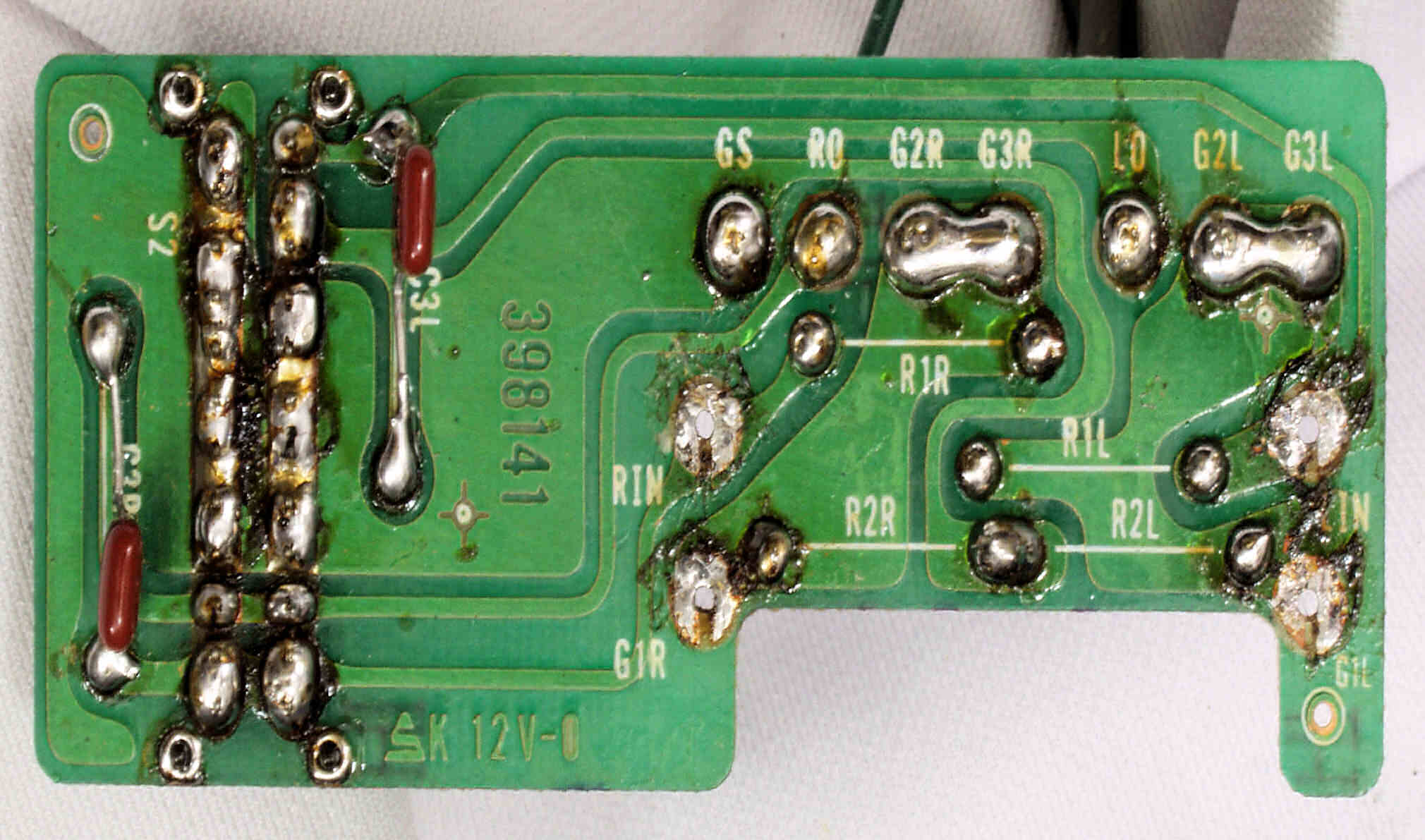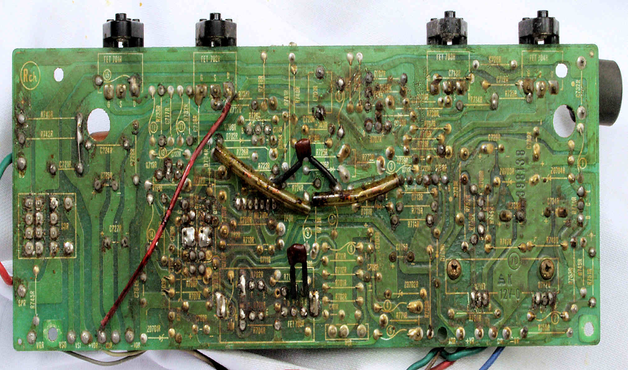 | C64. 修理前 RCA端子基板裏 |