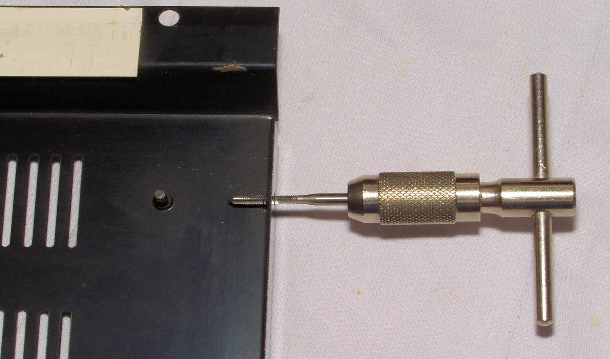 | CD4. 修理中 下蓋のタップ立て、 潰れている場所が不明なので、全部立てる。 |