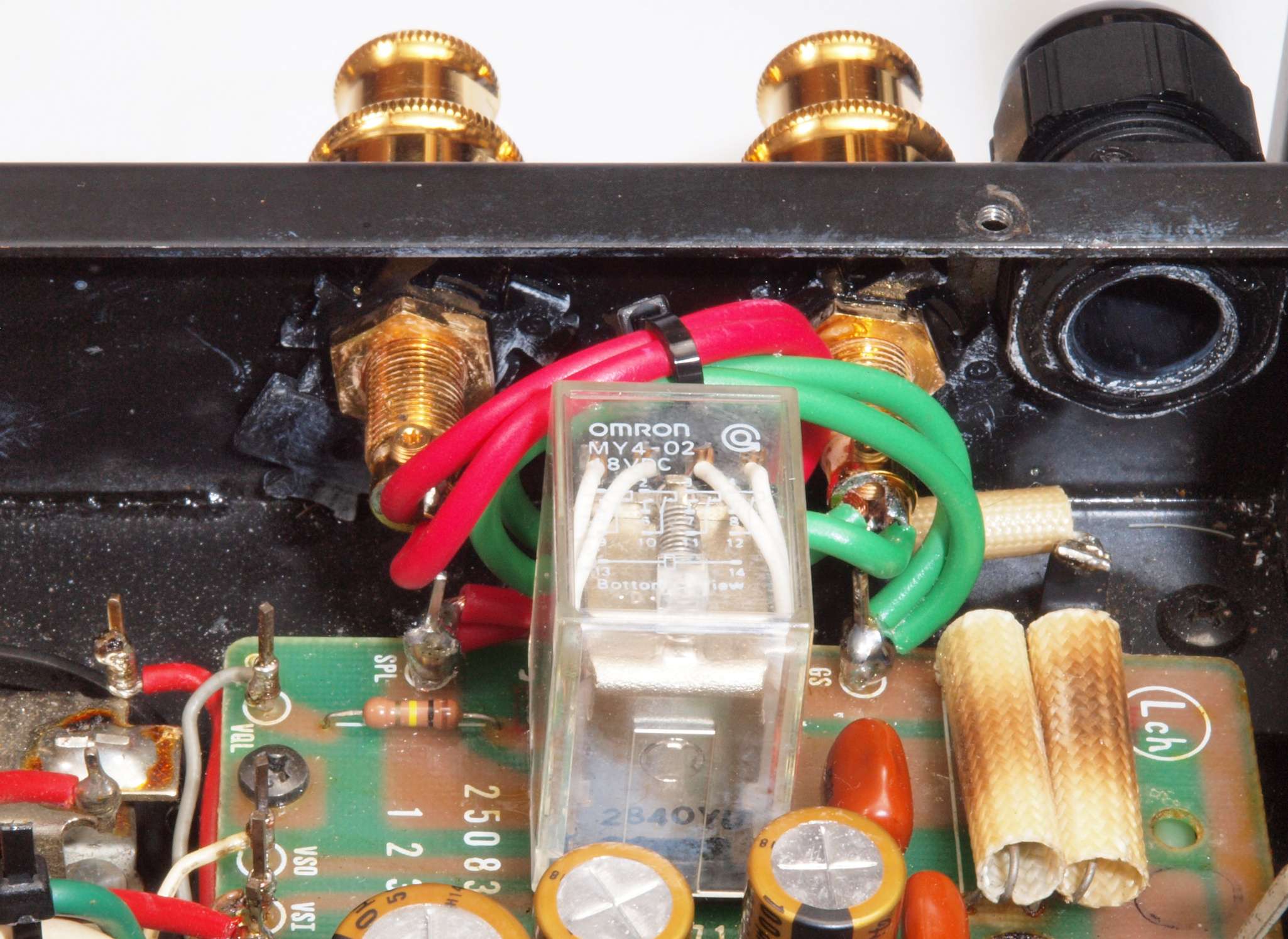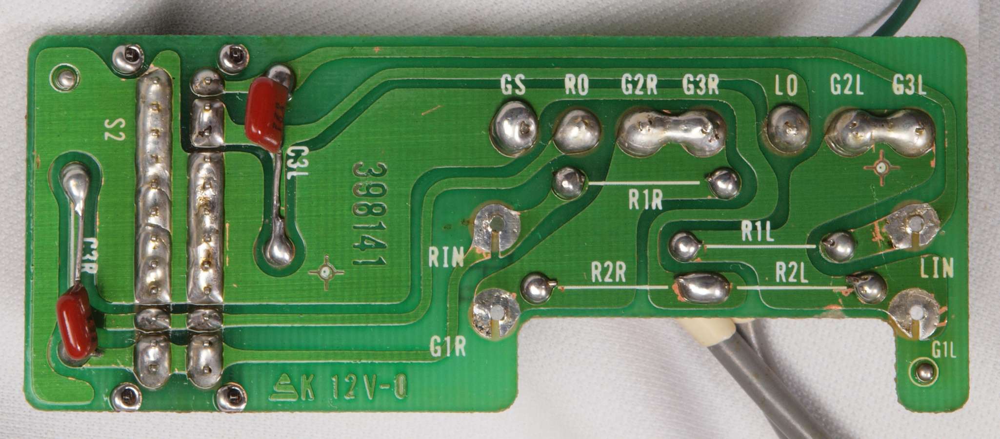 | C66. 修理後 入力RCA端子基板。 フイルムコンデンサー2個交換。 |