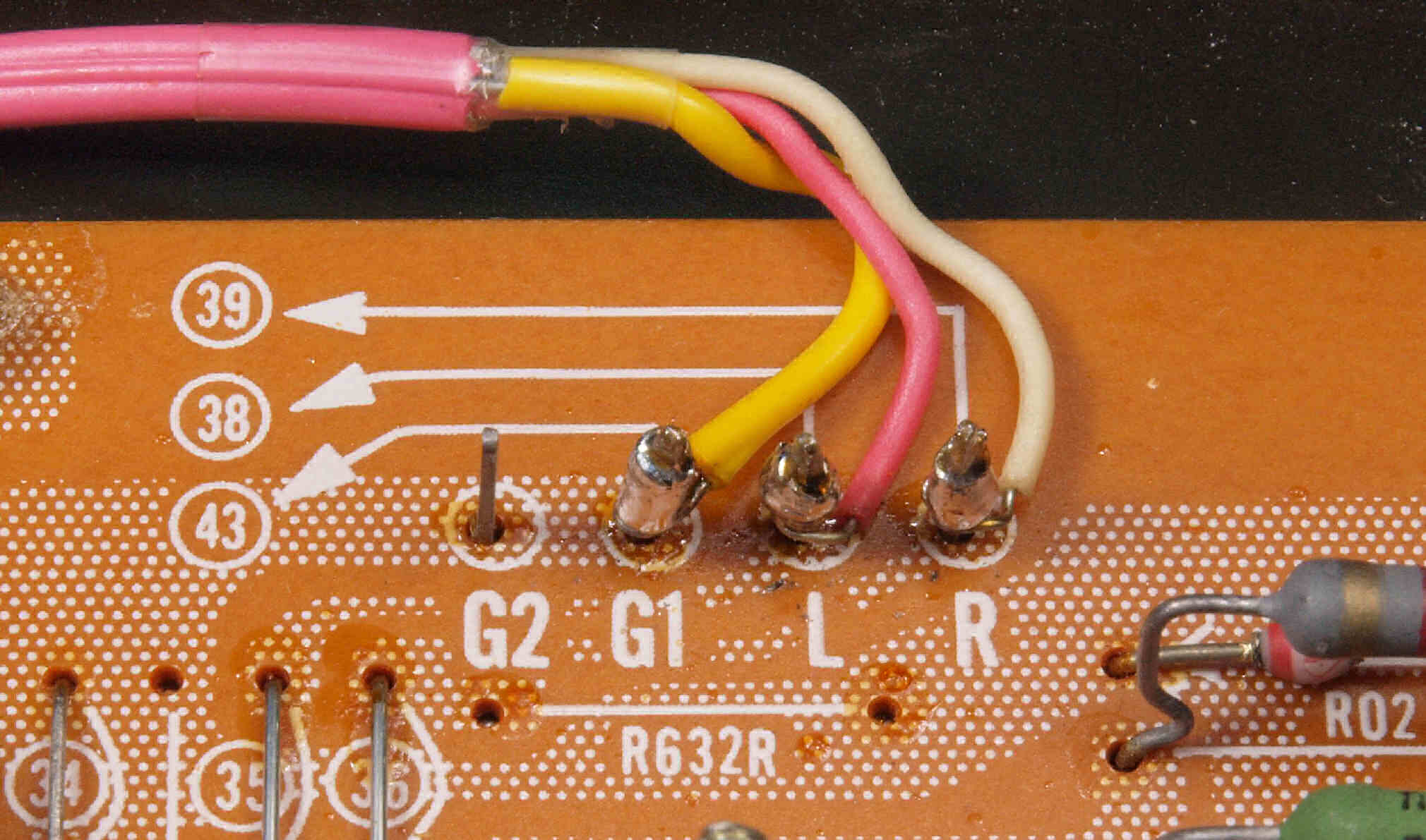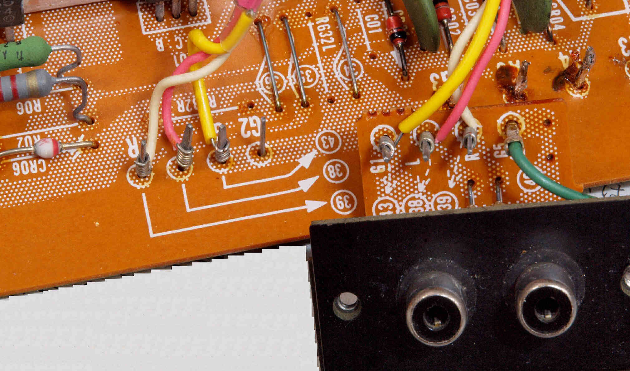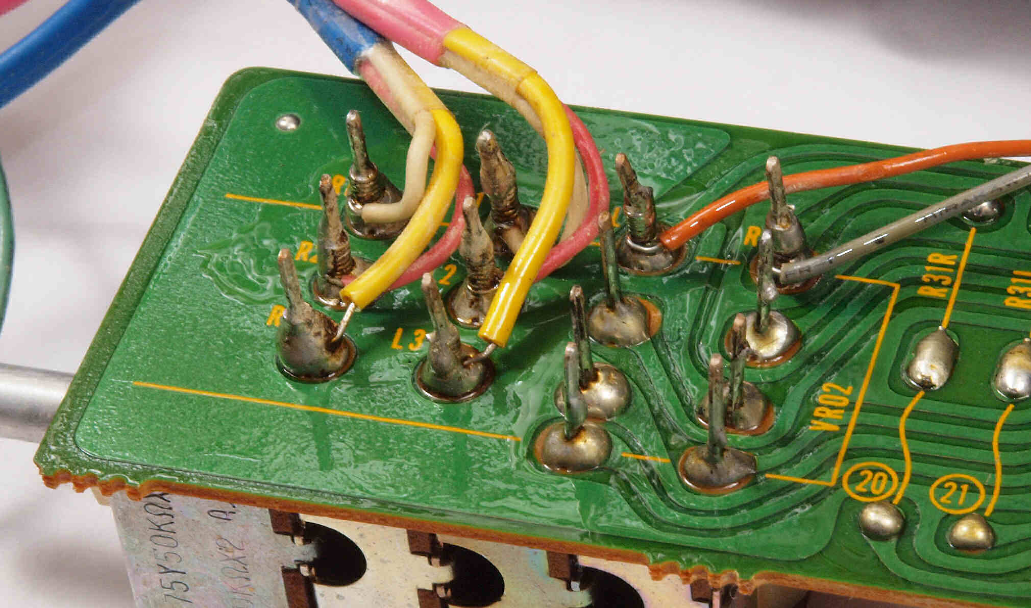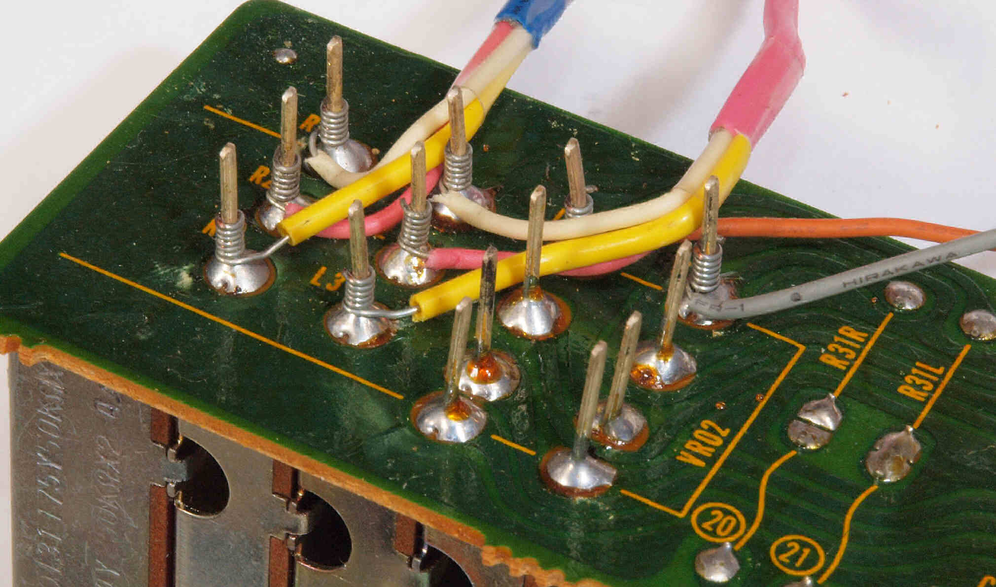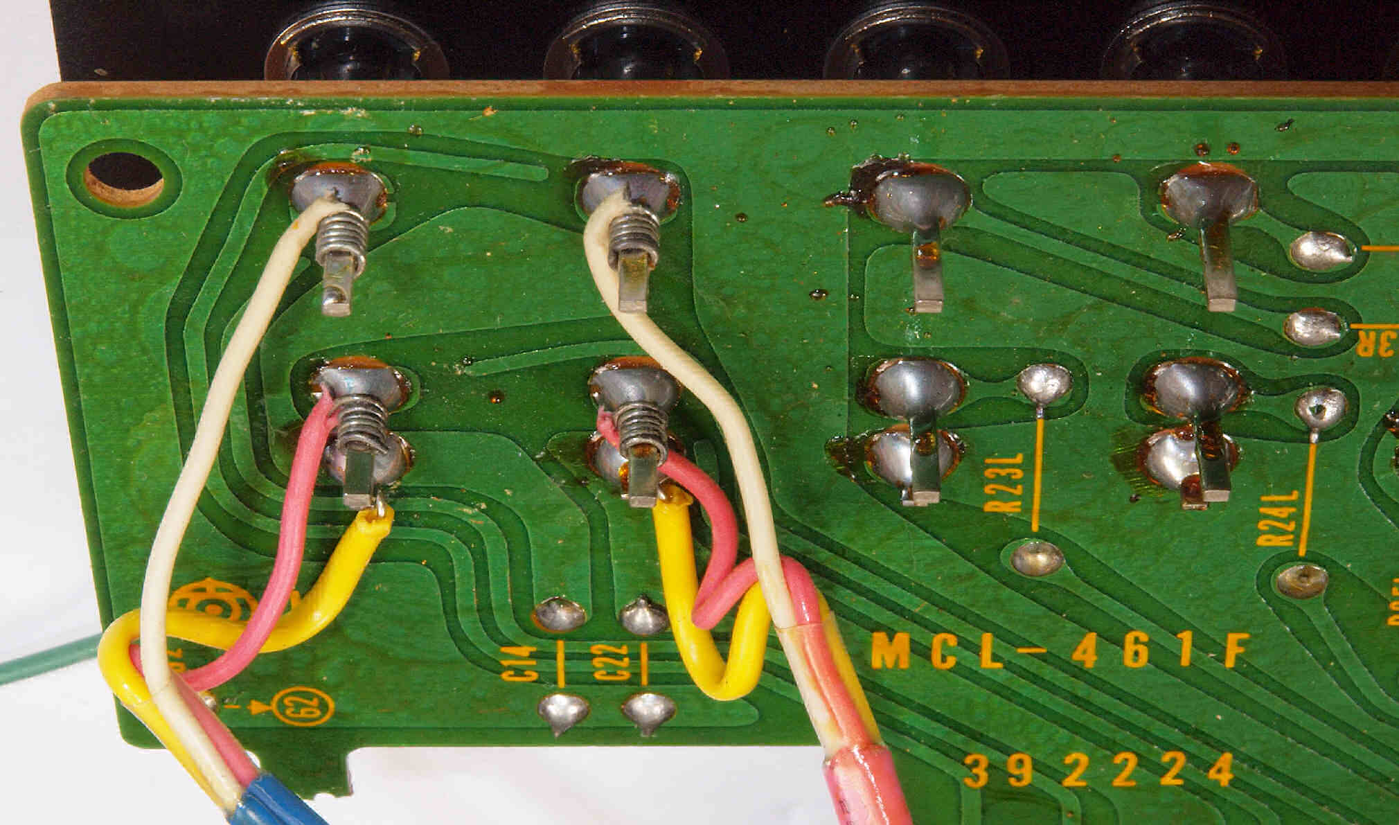 C76. 修理前 入出力RCA端子基板ラッピング。