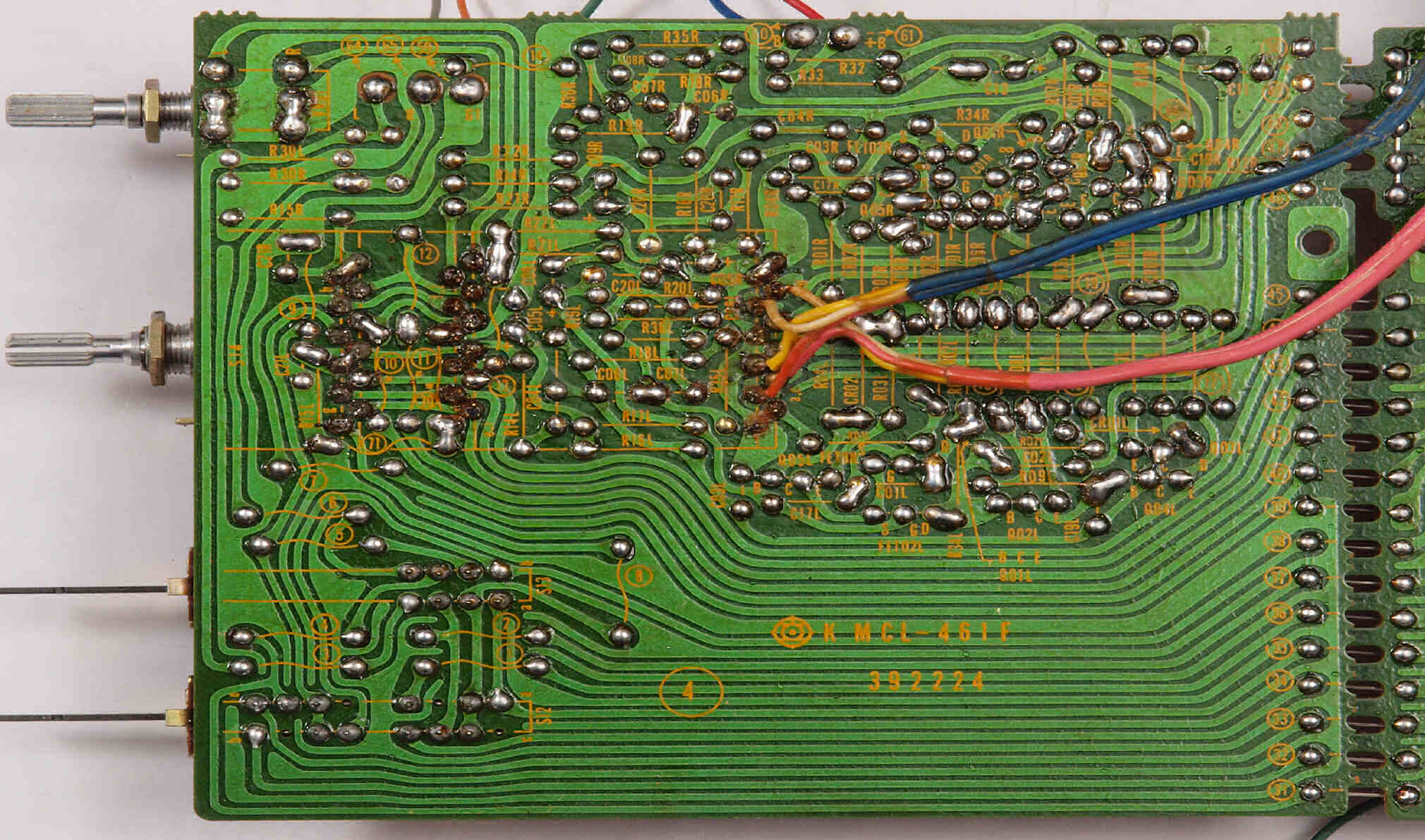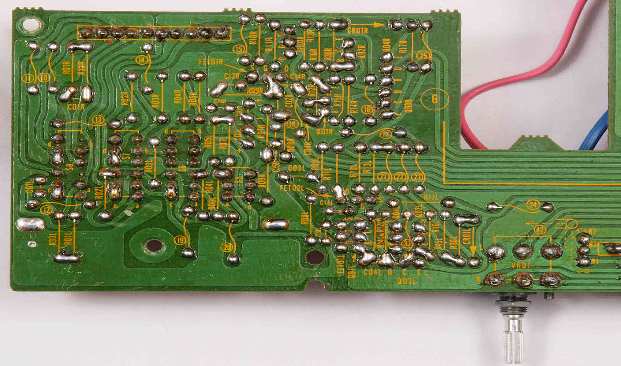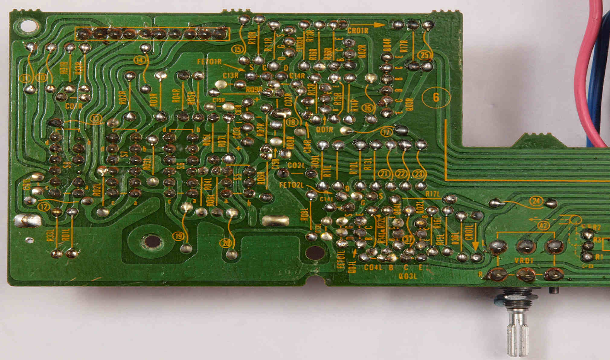 C44. 修理(半田補正)後 トーンAMP基板裏。 全ての半田をやり修す。