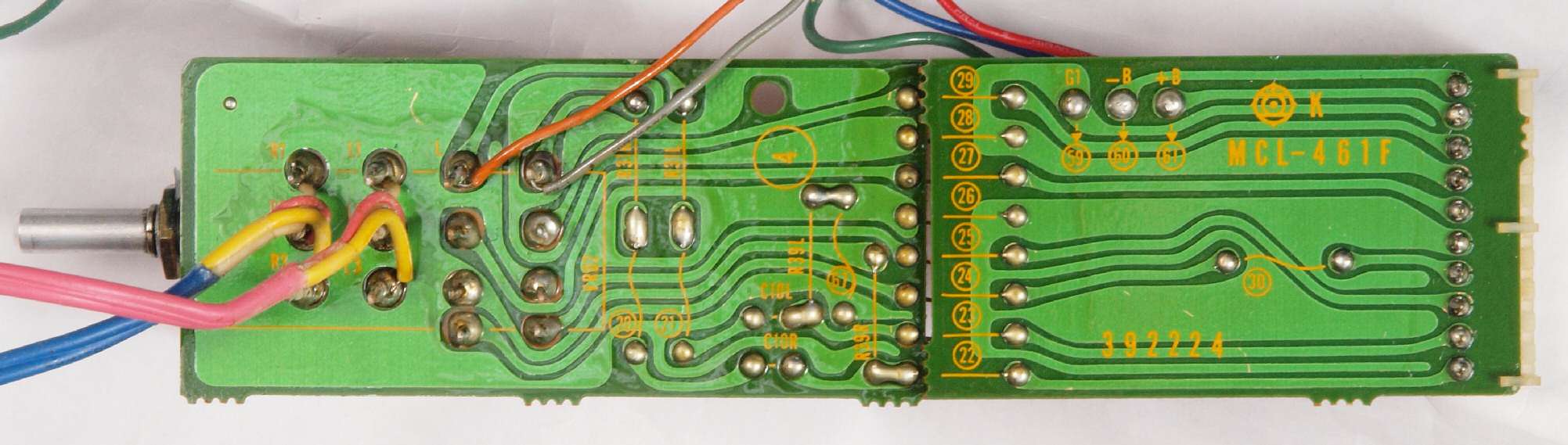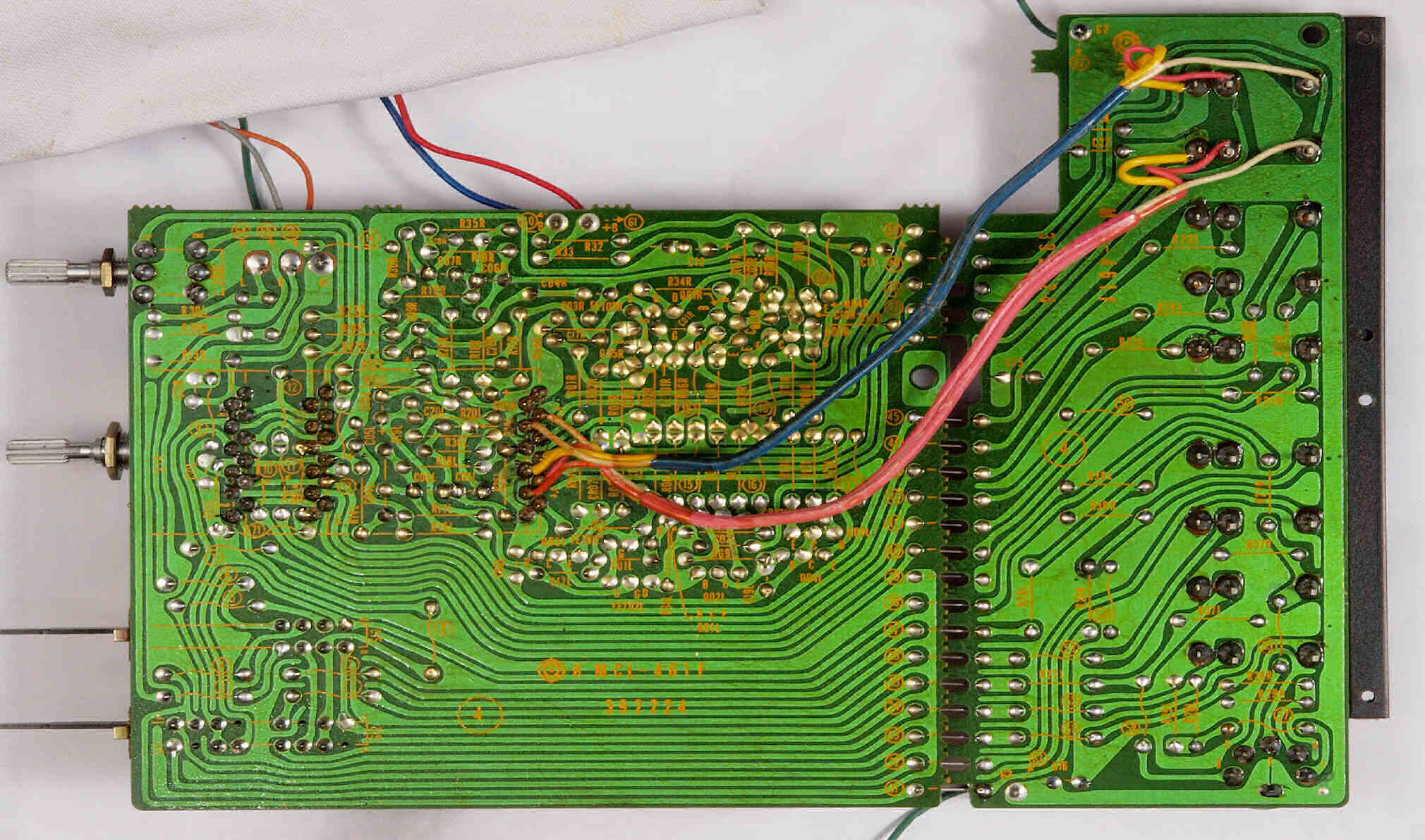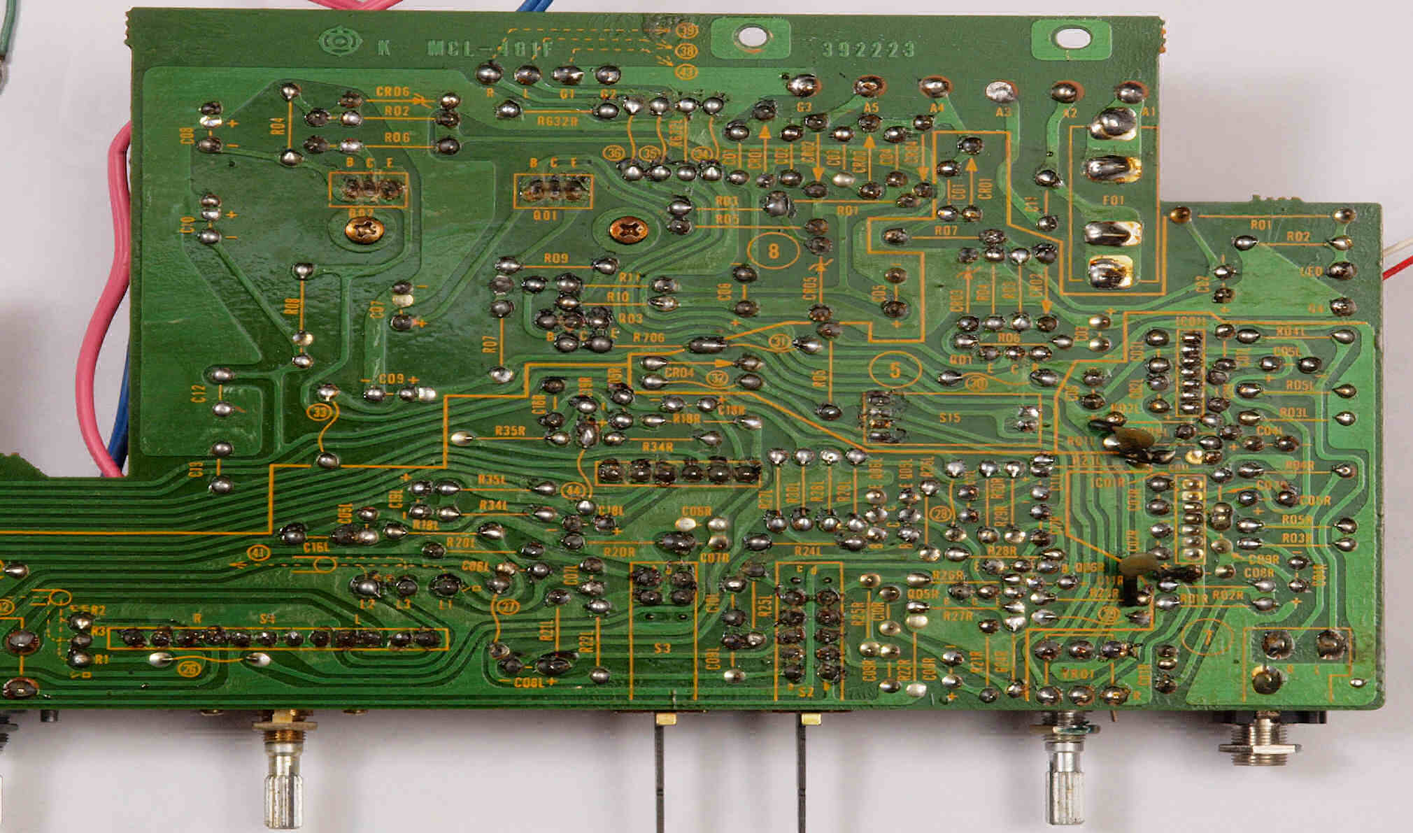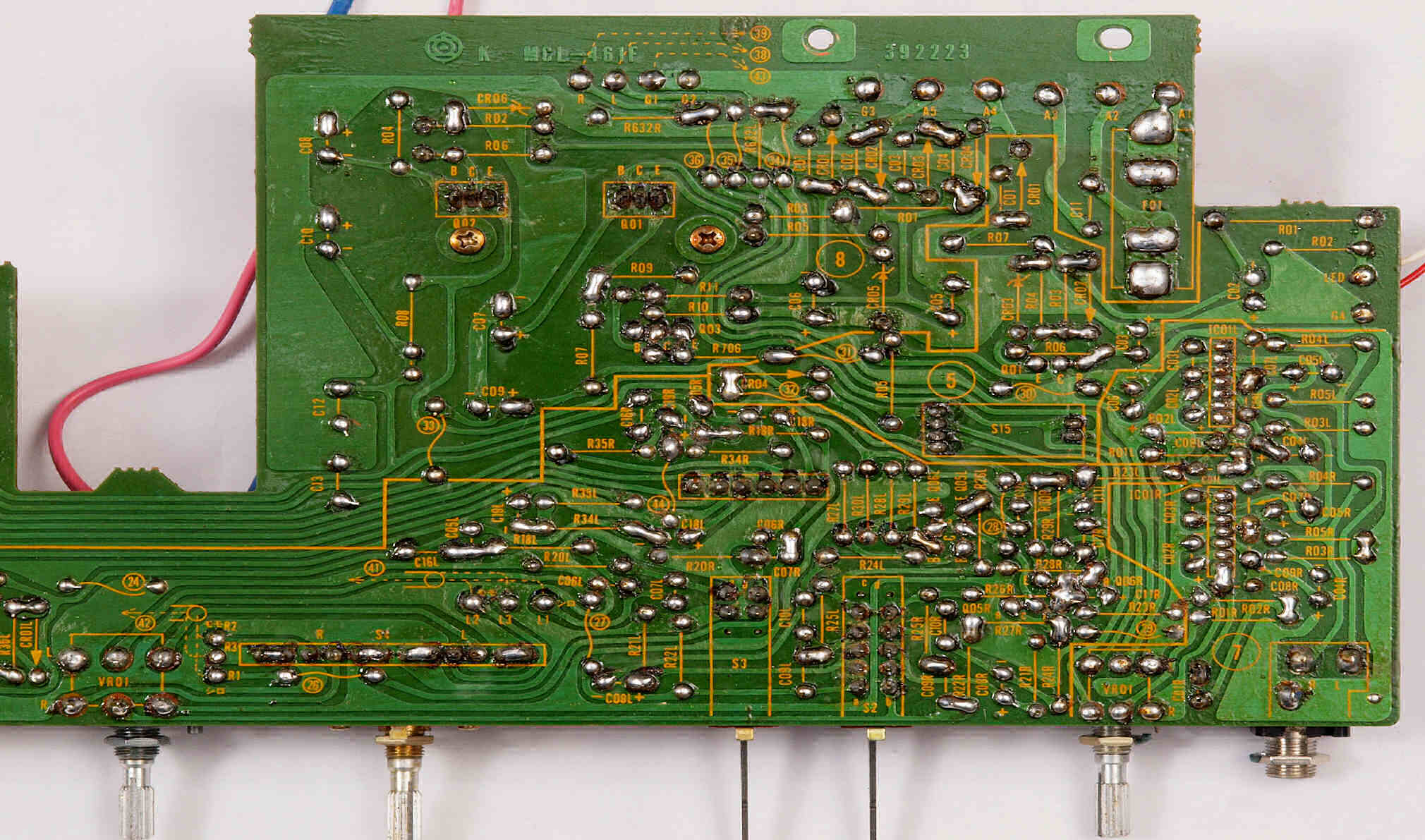 C44. 修理(半田補正)後 トーンAMP基板裏。 全ての半田をやり修す。