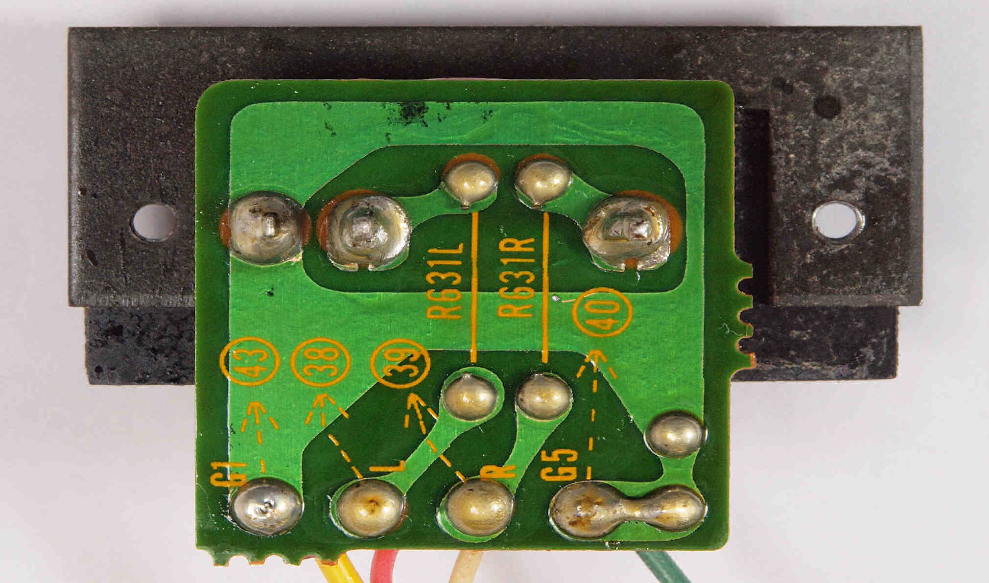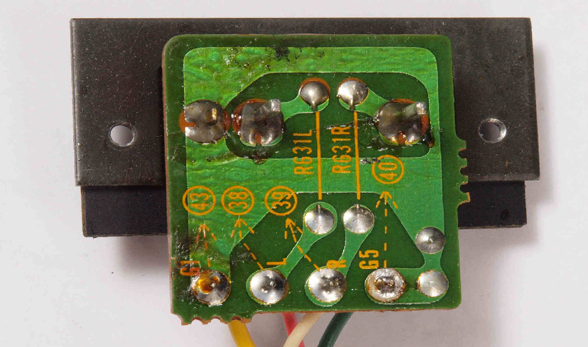 C74. 修理(半田補正)後 入出力RCA端子基板裏 。 全ての半田をやり修す。