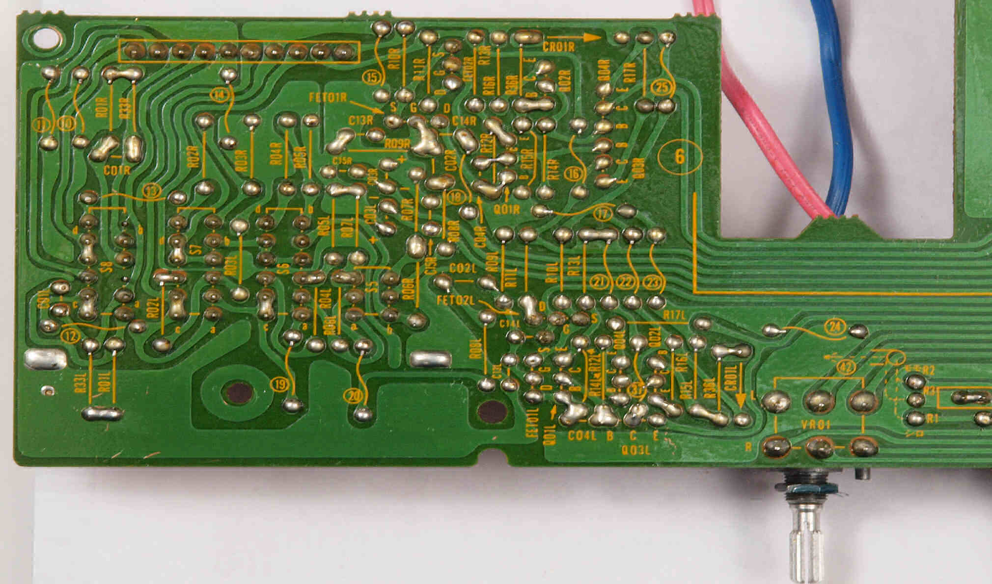 C24. 修理(半田補正)後 定電圧・HeadHornAMP基板裏。 半田を全部やり直す。