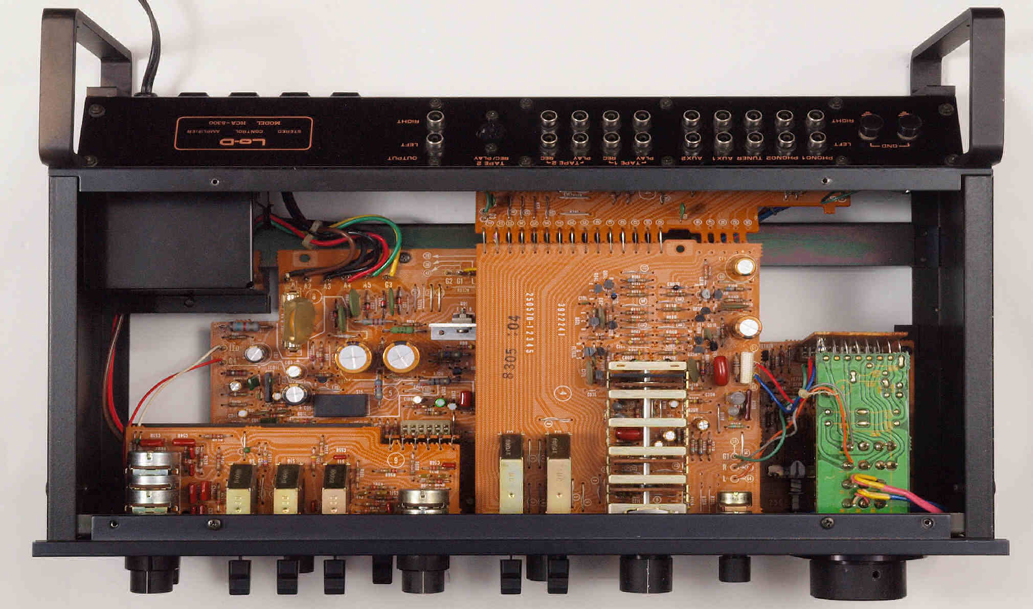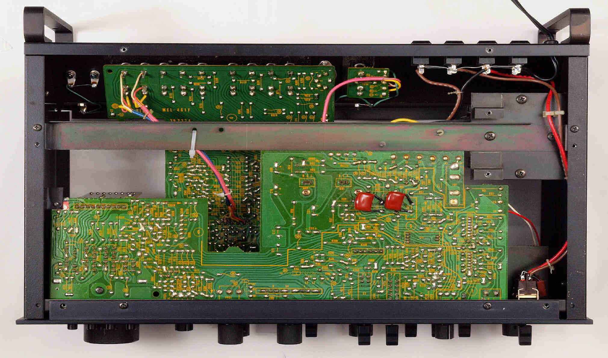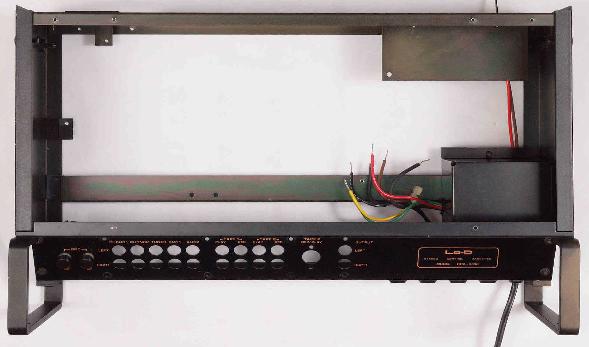 C01. 修理中 基板を外したシャーシ、上から見る。