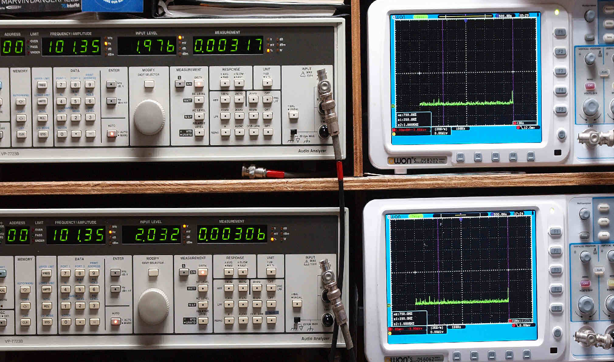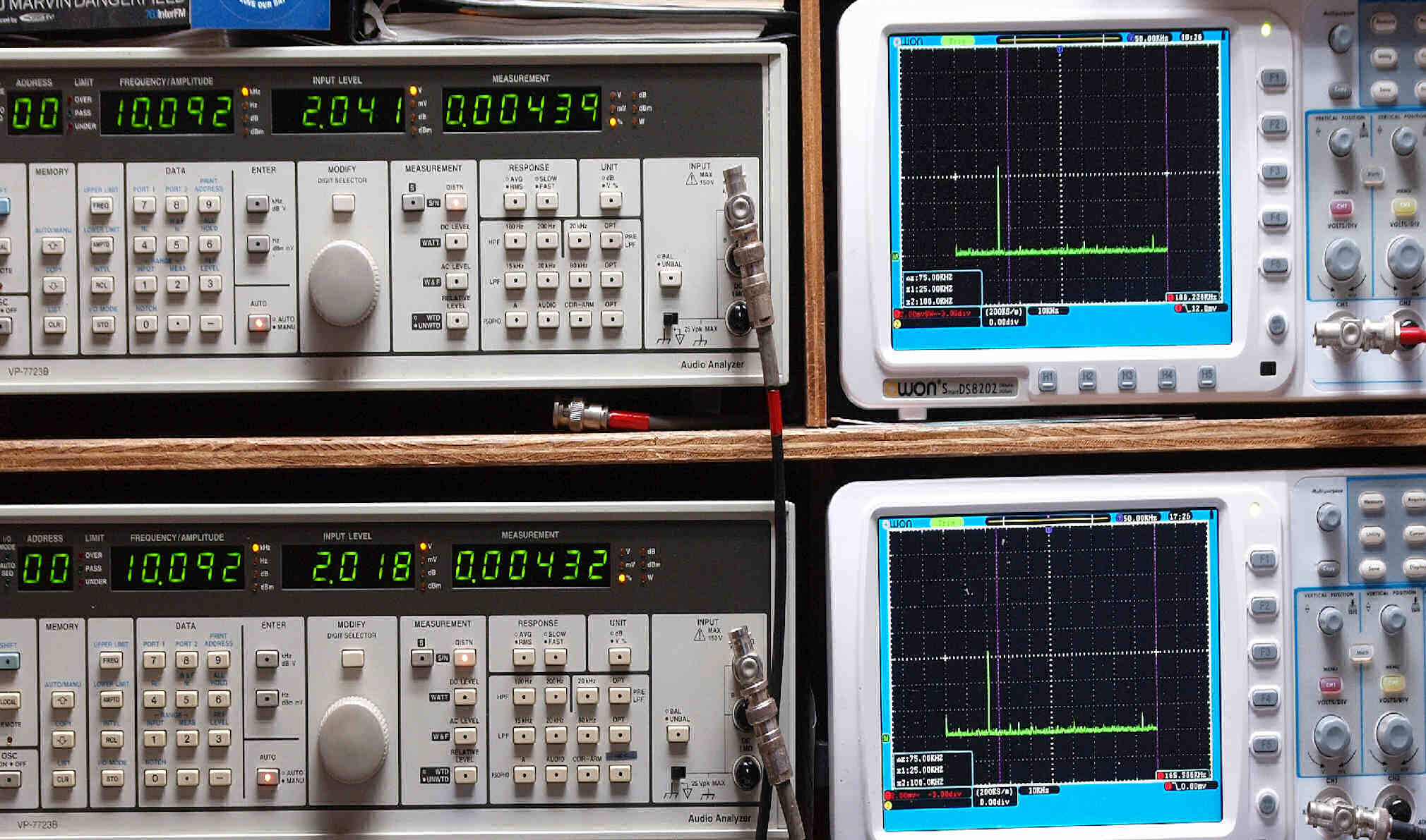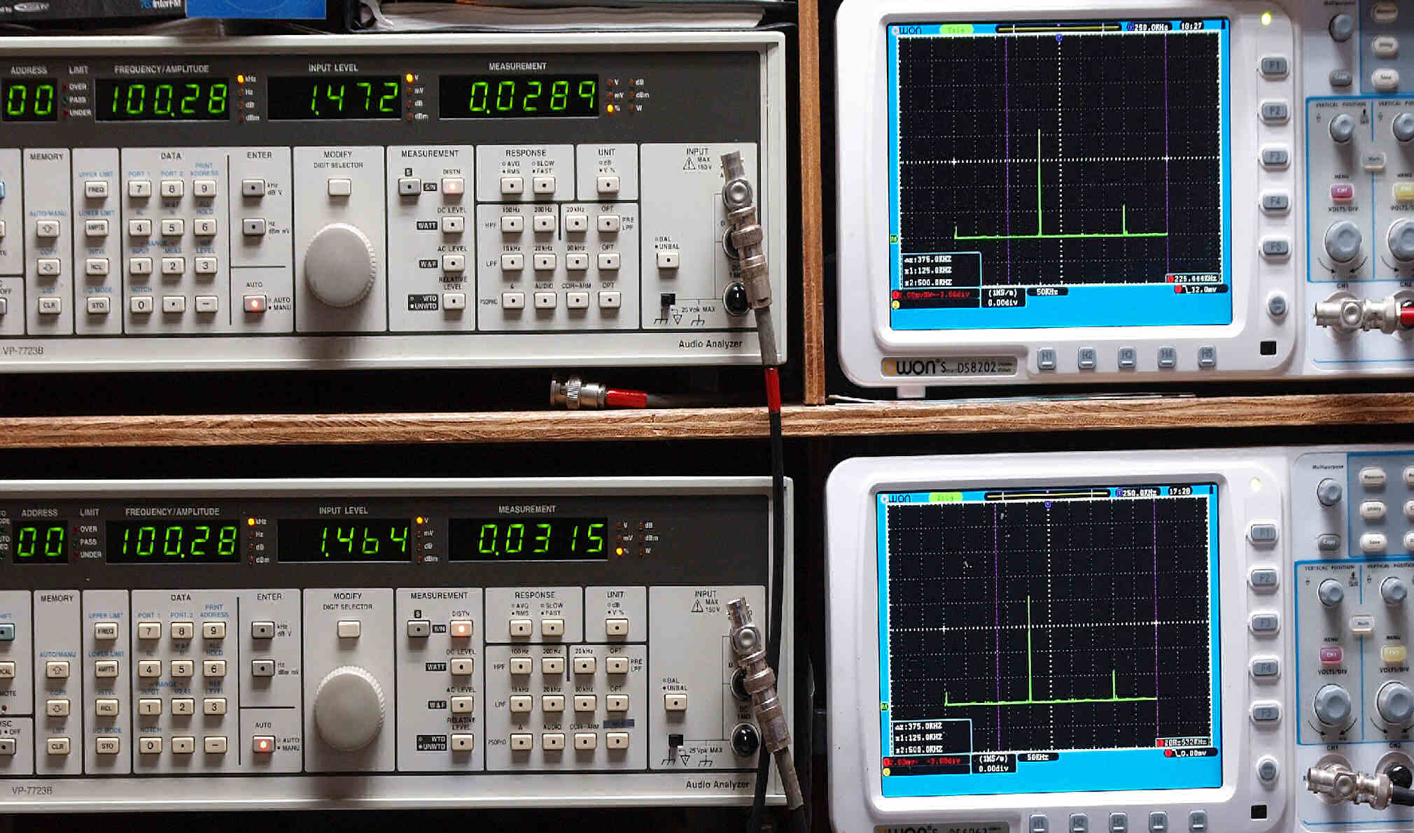 よって、ダイアル設定出力レベルより低くなります。測定機器の仕様や整備の様子はこちら、「VP−7723B」「VP−7201A」。 FFT画面の見方はこちら。