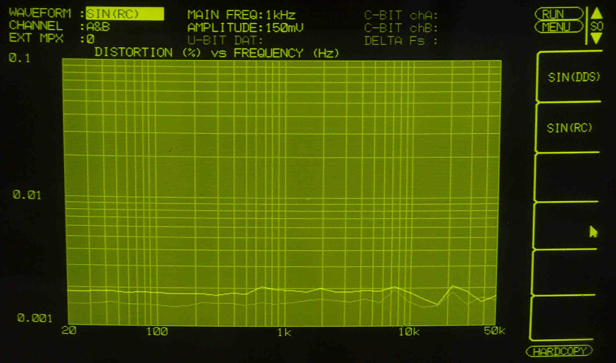 PHONO_3入力、 L側出力電圧2V、 0.00654%歪み。