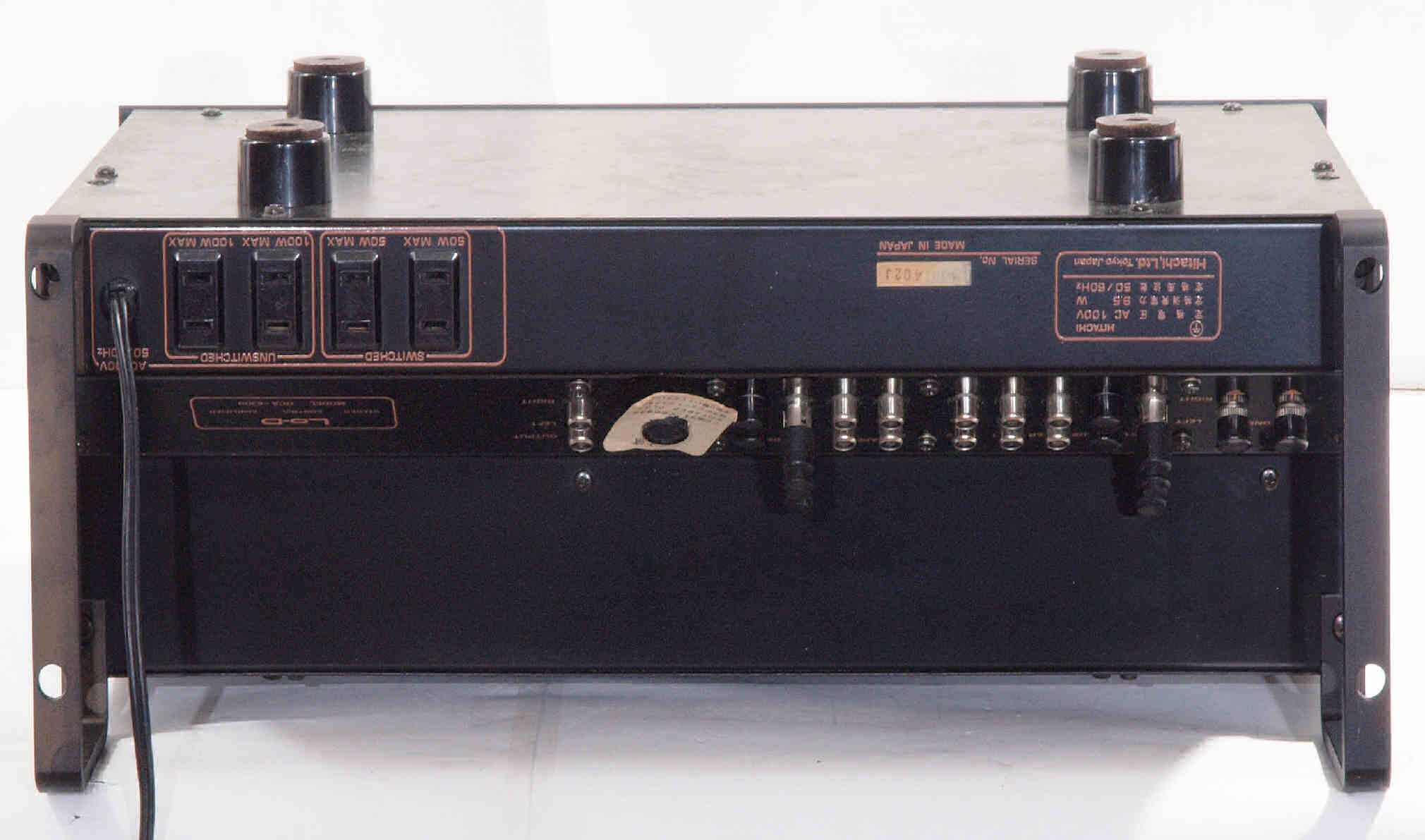 下段左端 オーディオ発振器 VP−7201A より50Hz〜100kHzの信号を出し(歪み率=約0.003%)、ATT+分配器を通し、AMPに入力。
