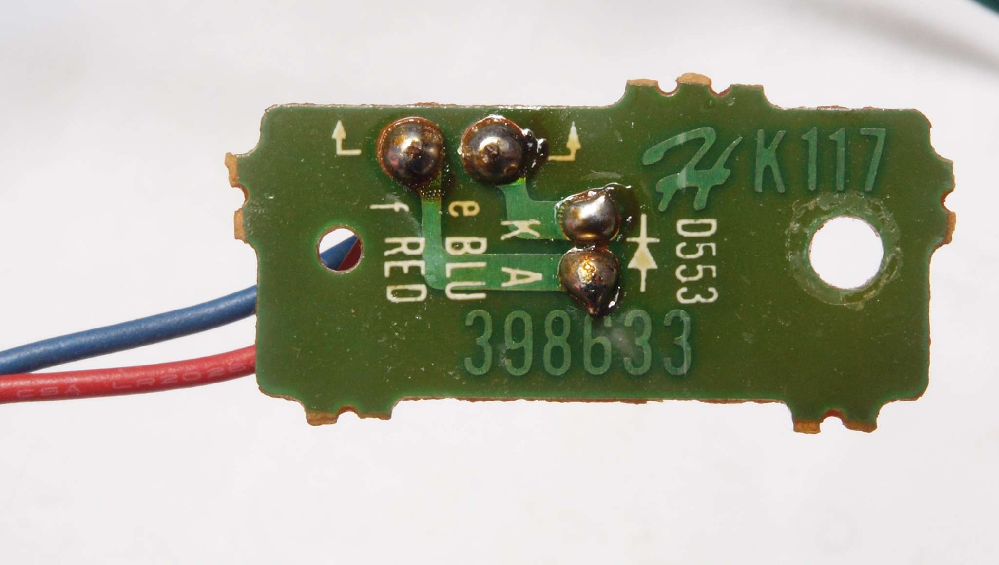 C54. 修理(半田補正)後 右側メーター照明ランプ基板裏、 半田を全部やり直す。