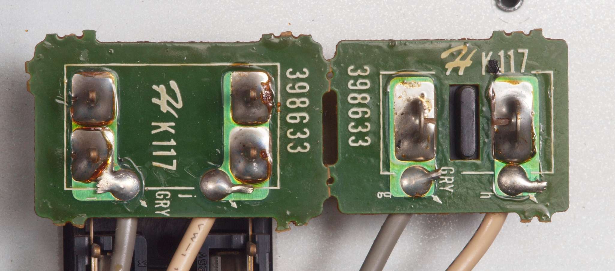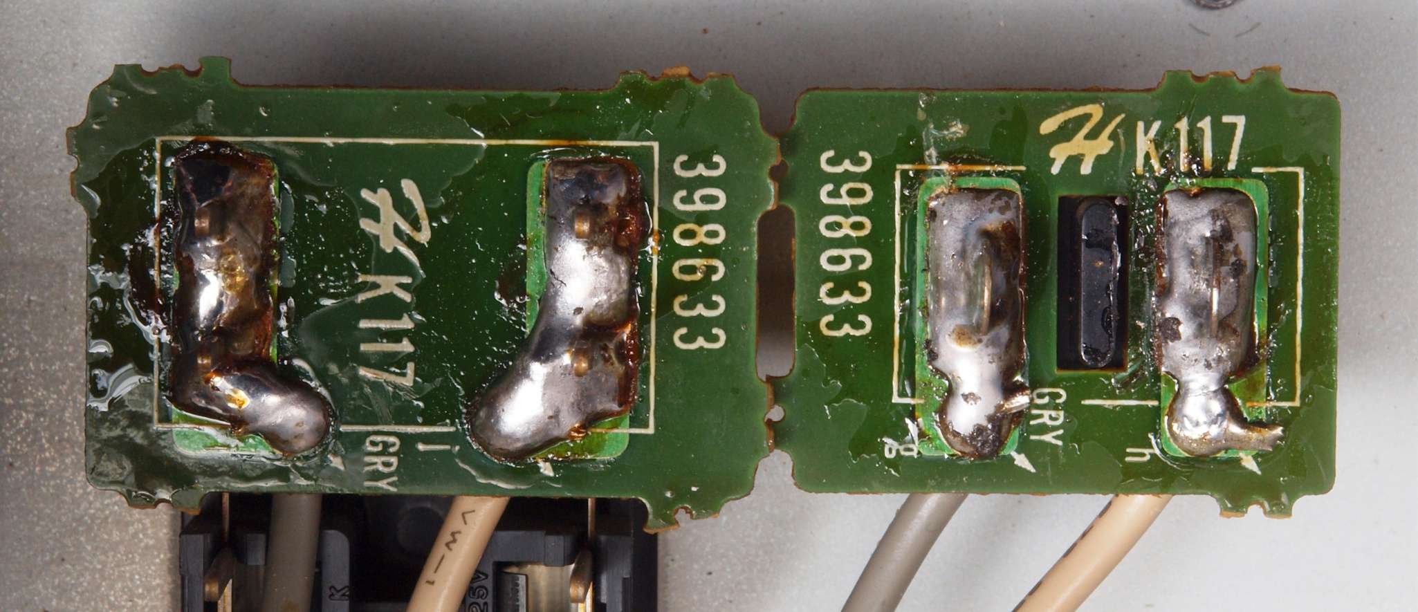 C64. 修理(半田補正)後左側メーター照明ランプ基板裏、 半田を全部やり直す。