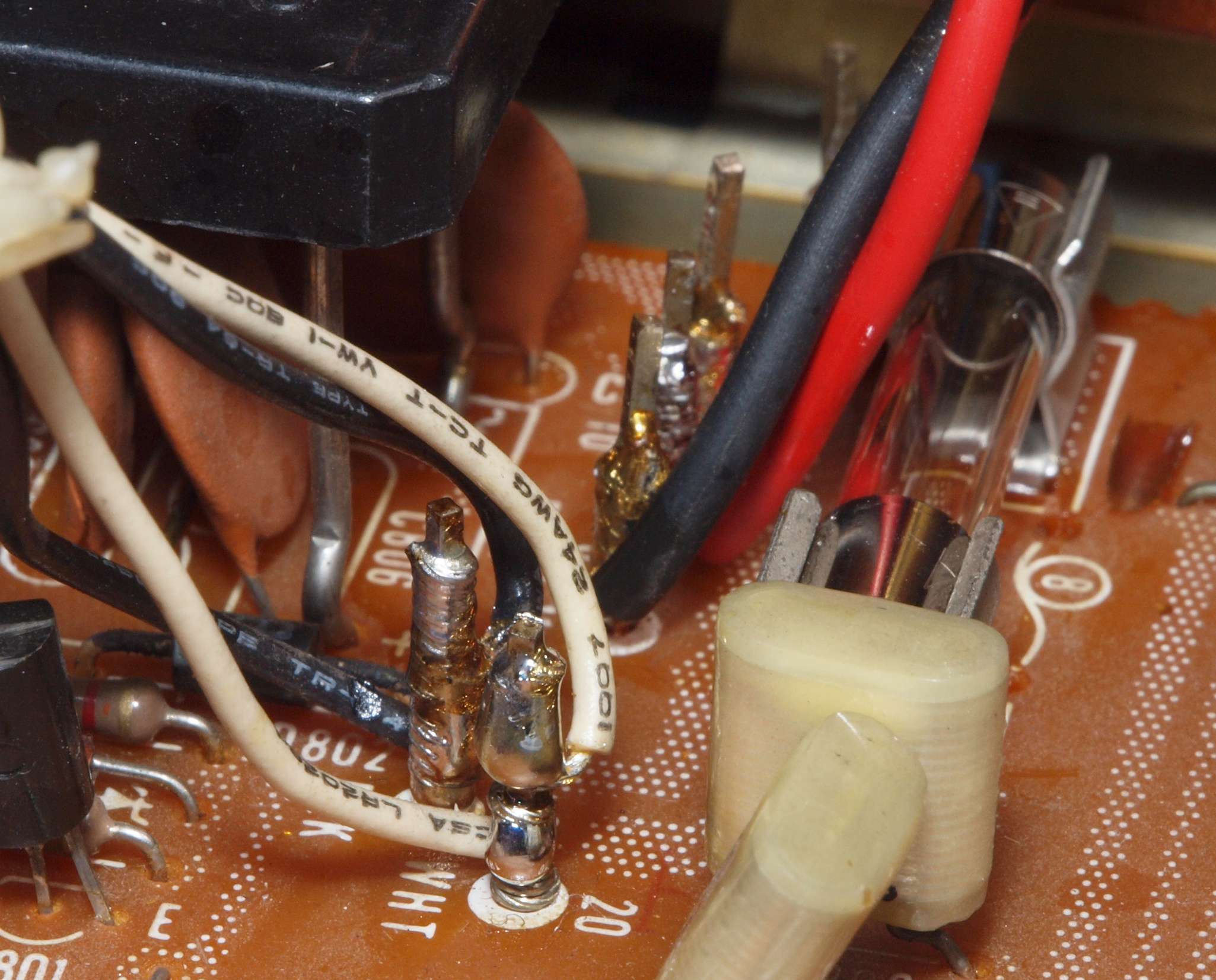 C38. 修理前 メイン基板ラッピング4、 ハンダを染みこます。