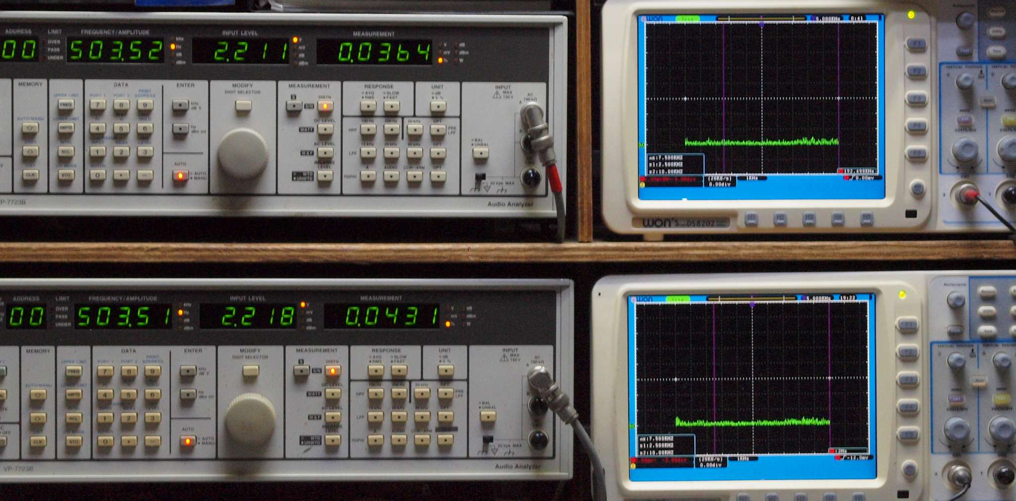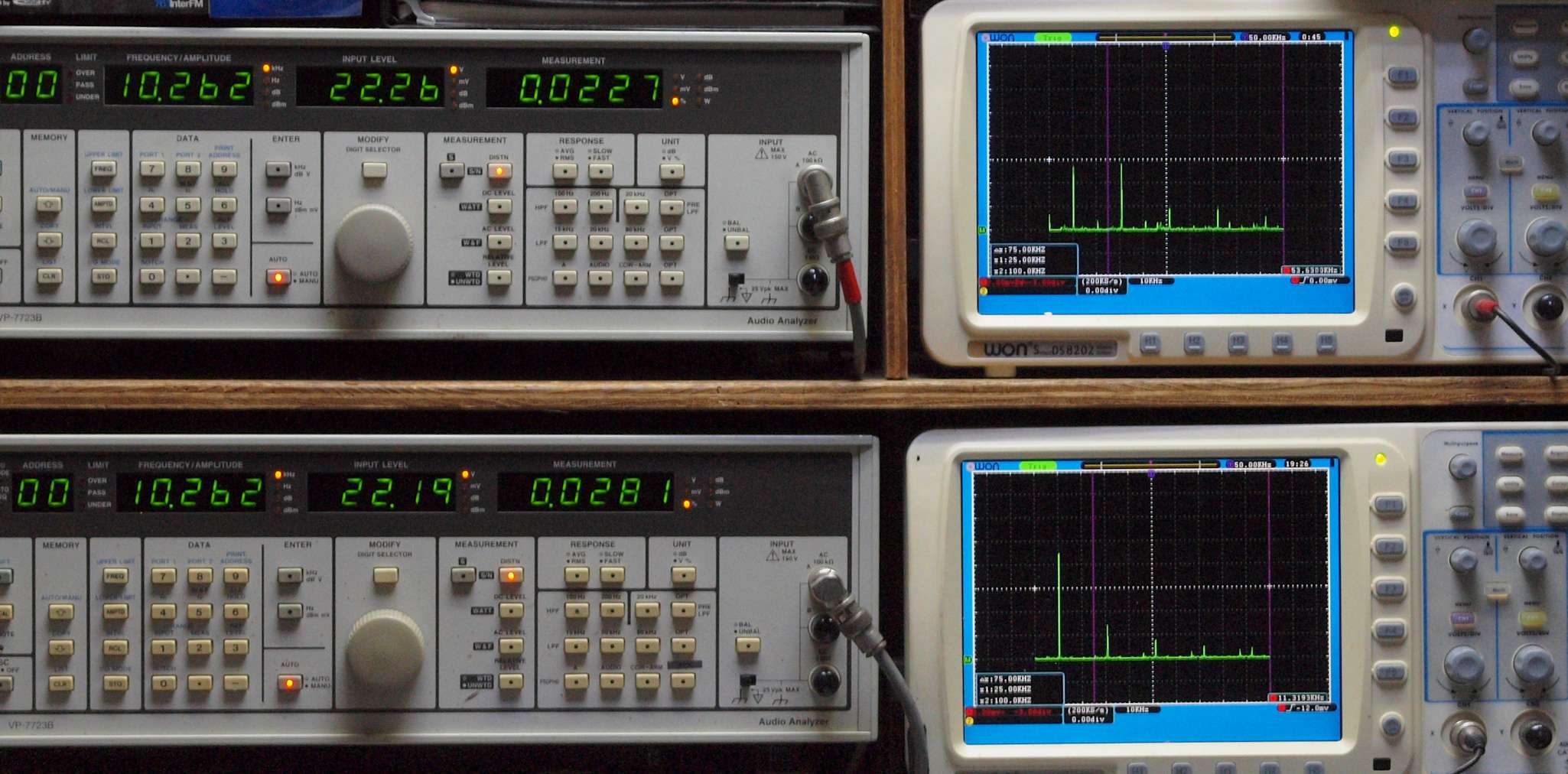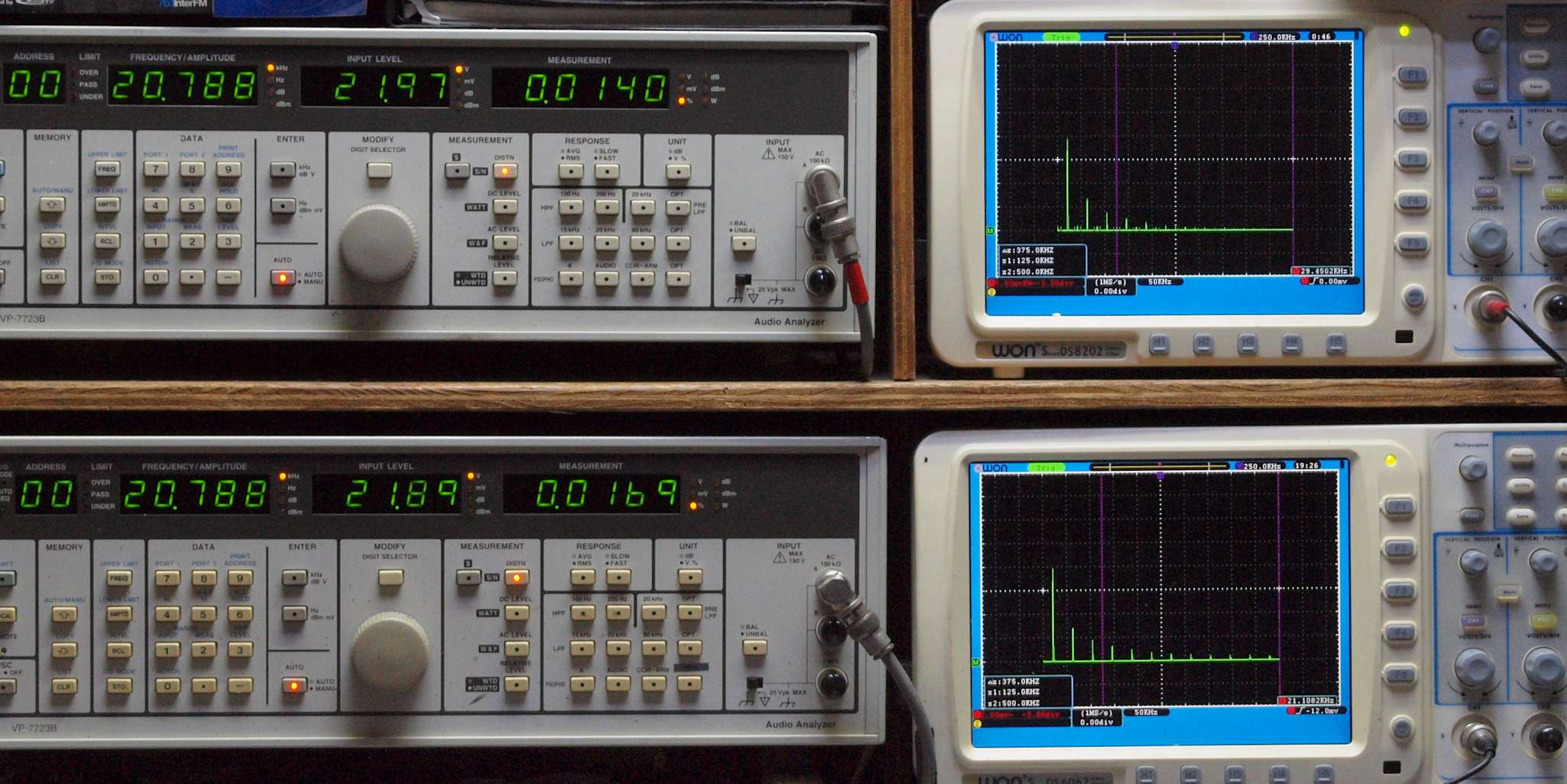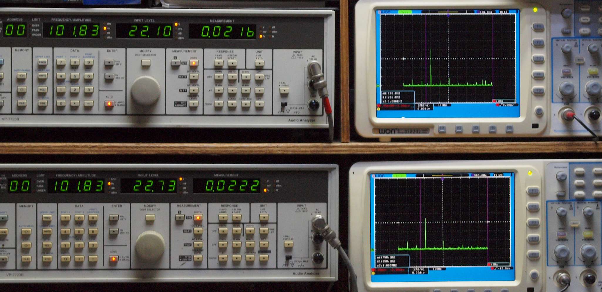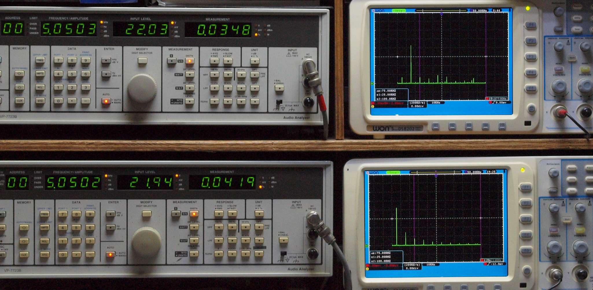 よって、ダイアル設定出力レベルより低くなります。測定機器の仕様や整備の様子はこちら、「VP−7723B」「VP−7201A」。 FFT画面の見方はこちら。