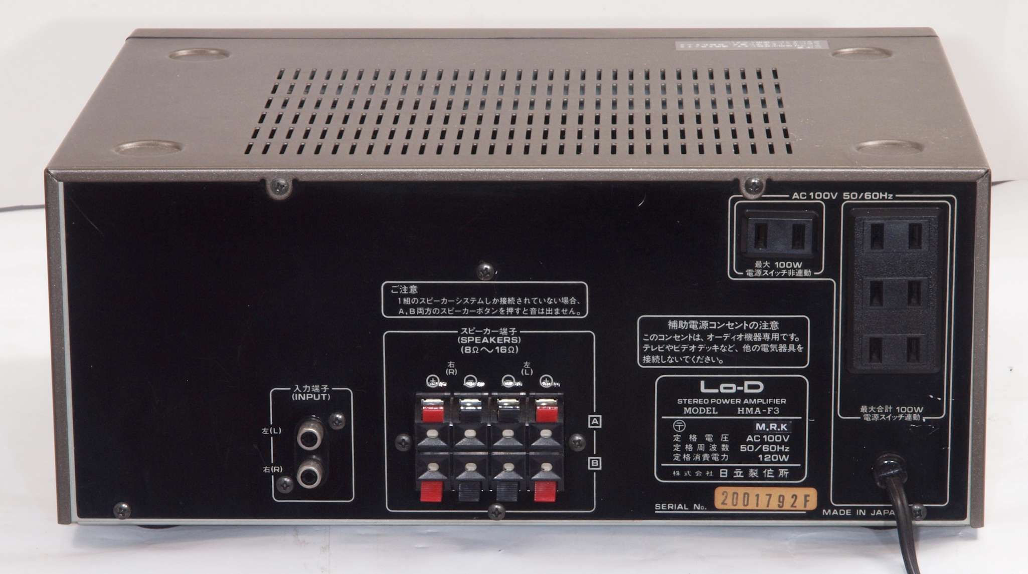 2機種目はパワーアンプ、HITACHI、Lo-DのHMA-F3(HMA-8500のミニコンポ版) 。