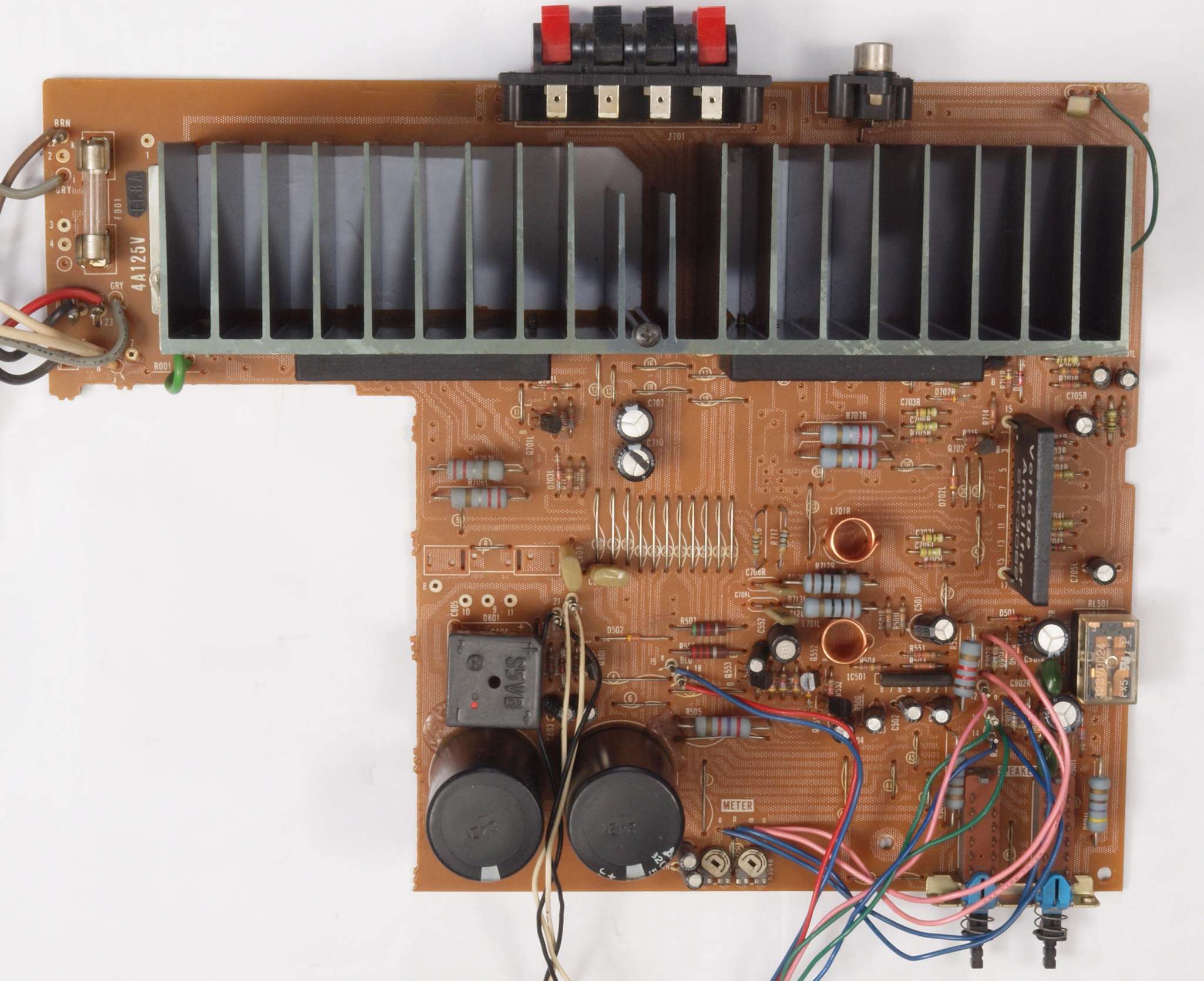 C14. 修理後 メイン基板。 半固定VR2個、ヒューズ抵抗2個、電解コンデンサー21個交換。