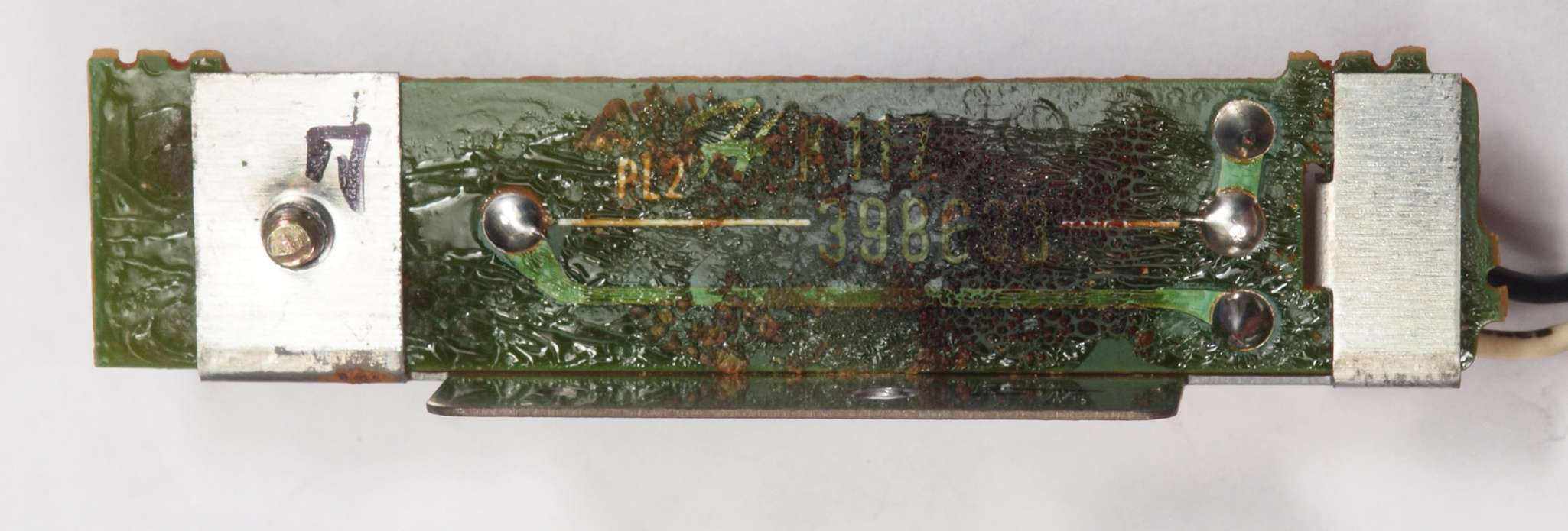 C13. 修理後 メイン基板。トルエン溶媒の接着剤を取り去り、コートを塗布後。