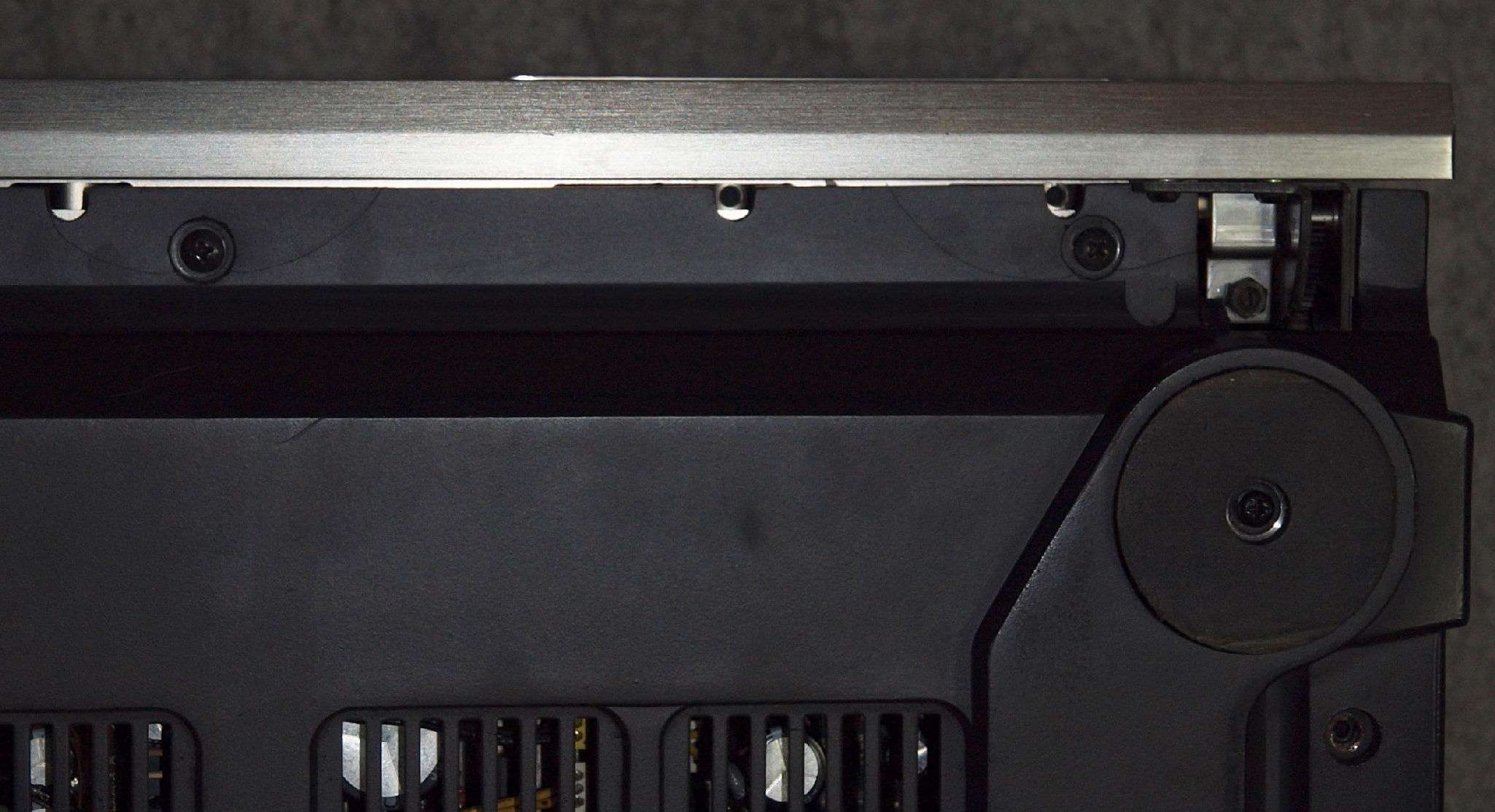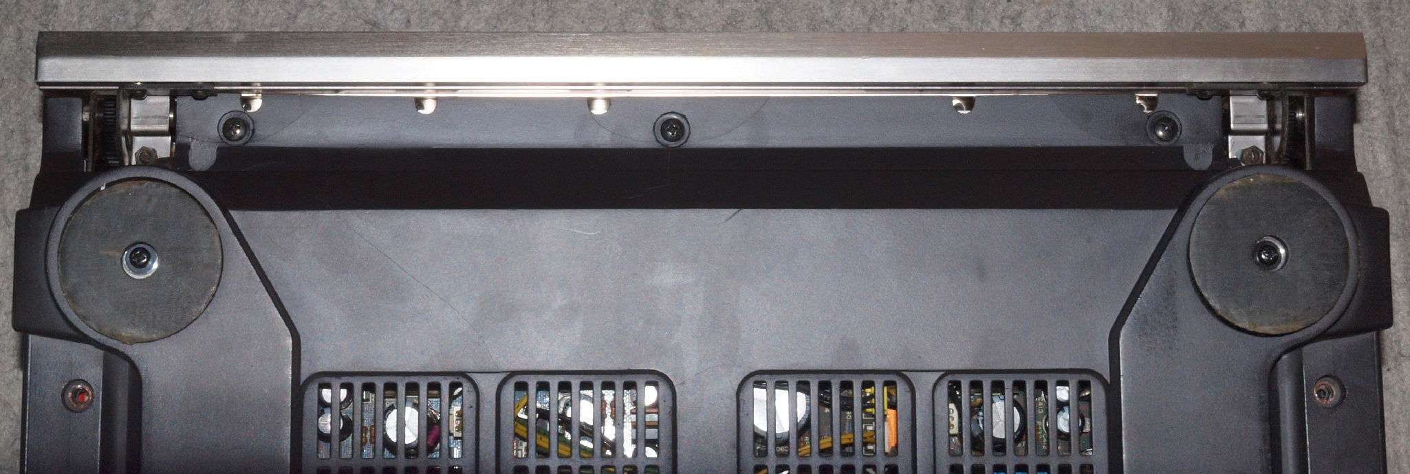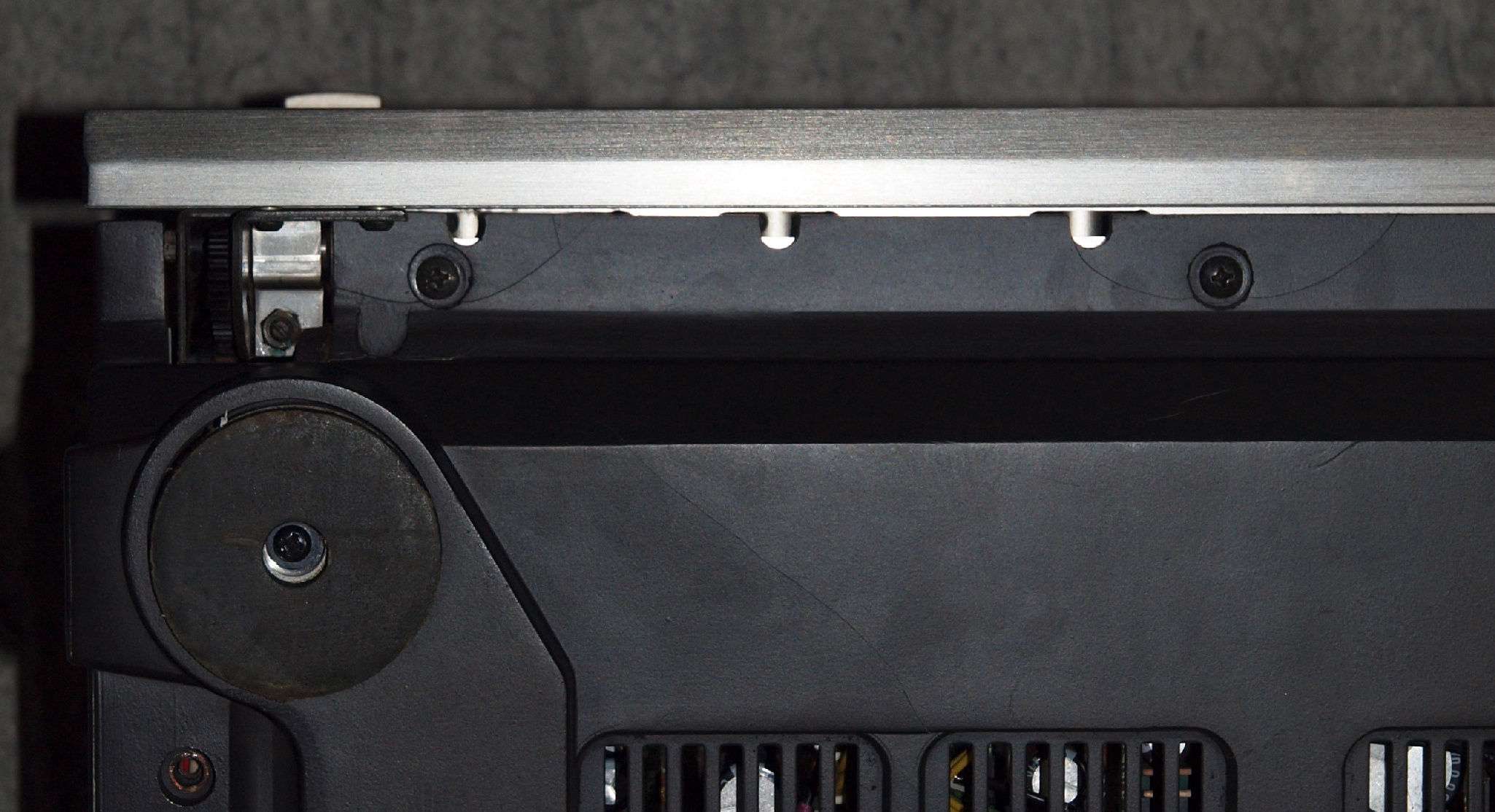 | A. 修理前の状況。 画像をクリックすると、大きく(横幅2050ドット)表示されます。 A1. 点検中 上下ケース(蓋)、前パネルを取り、上から見る。 |