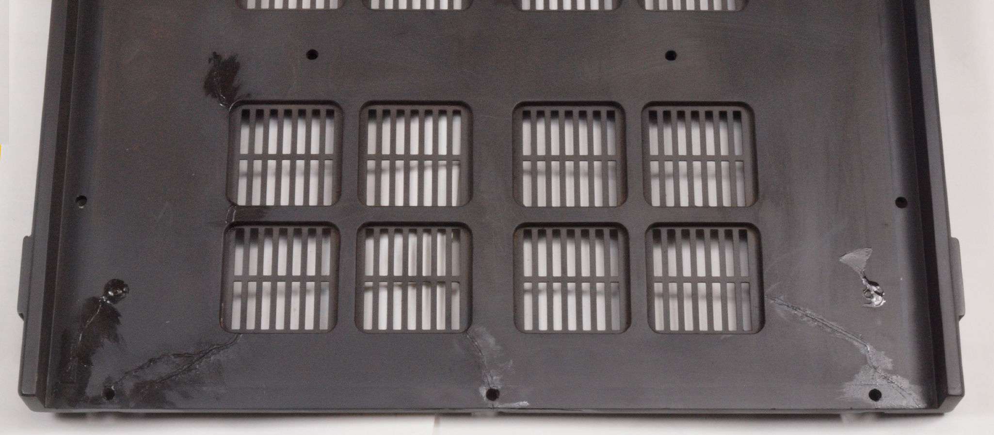 | P. 下蓋(ケース)修理 P11. 修理前 下蓋前方の割れ(ヒビ)。 強度が無く、割れが発生している。 |
