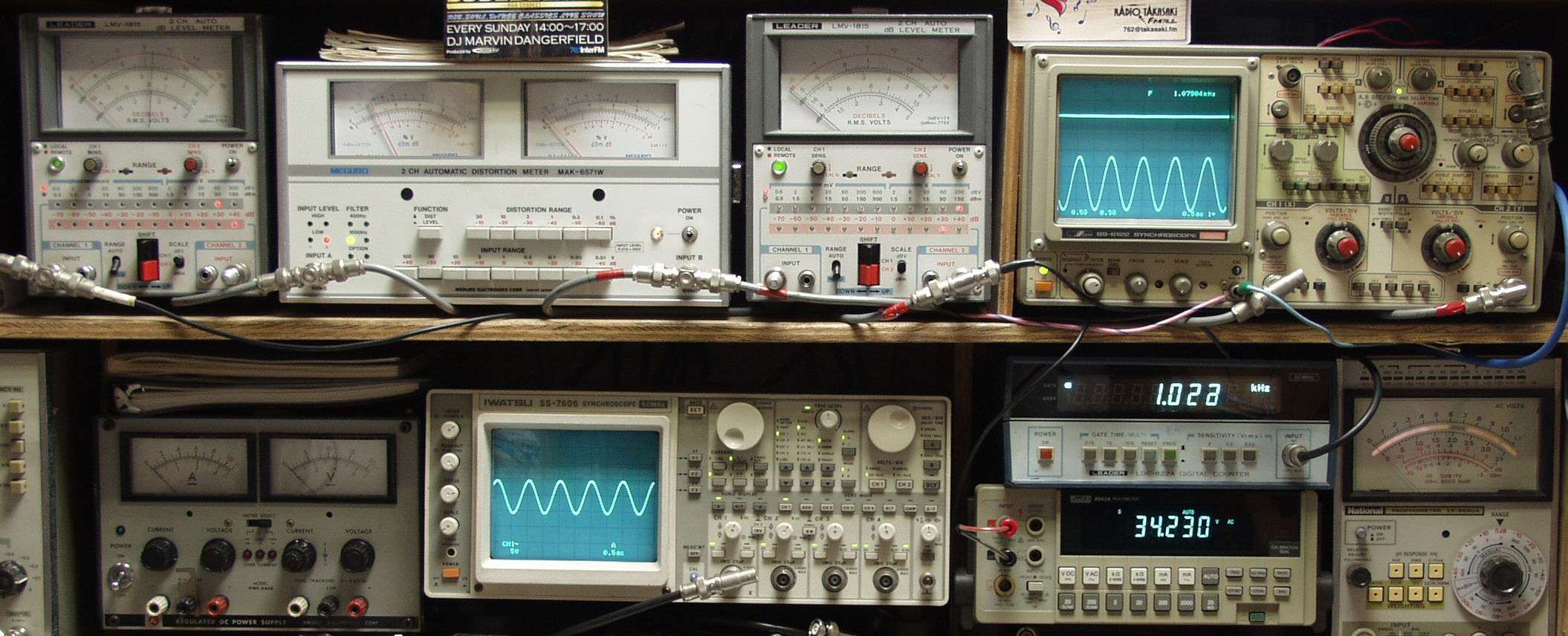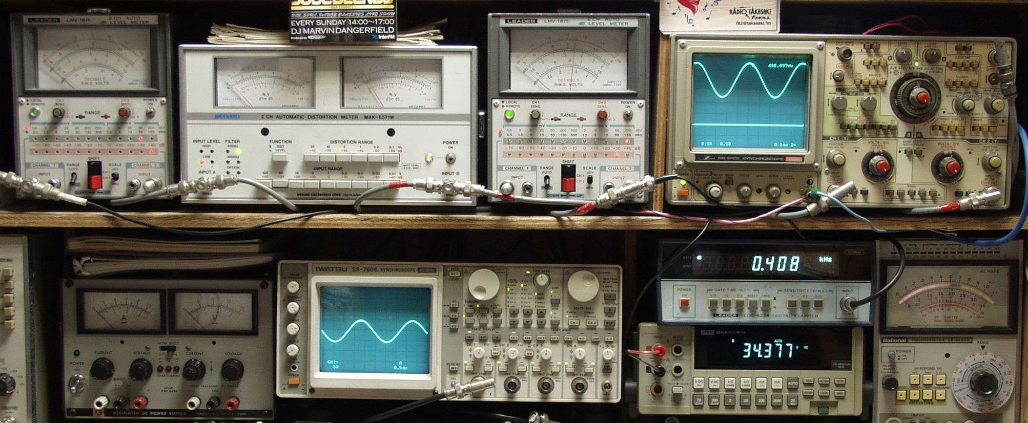 下左オーディオ発振器より400HZ&1KHZの信号を出す(歪み率=約0.003%)。