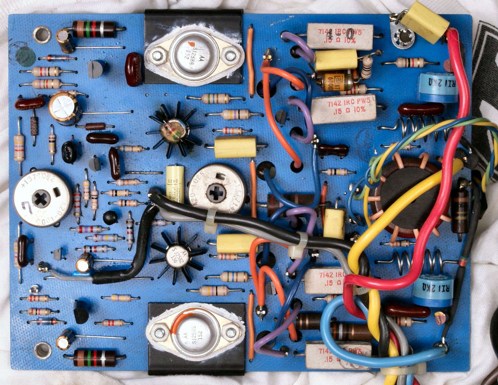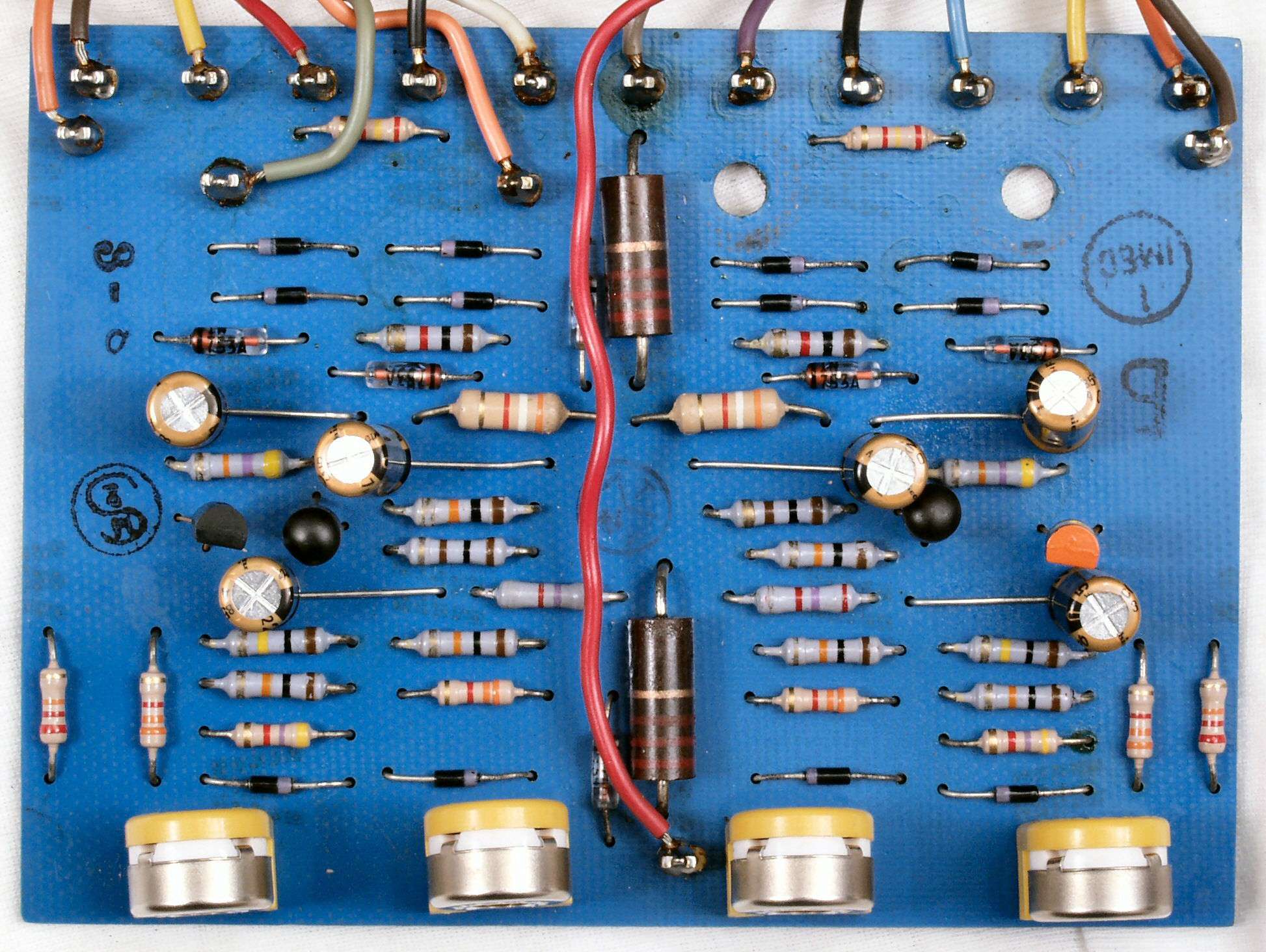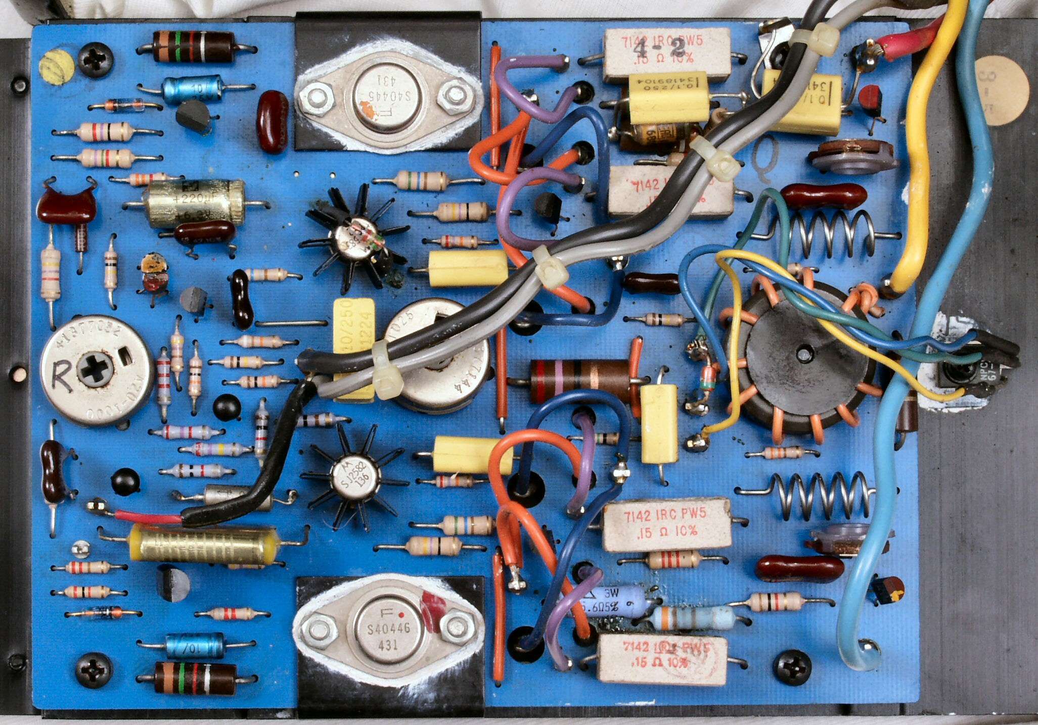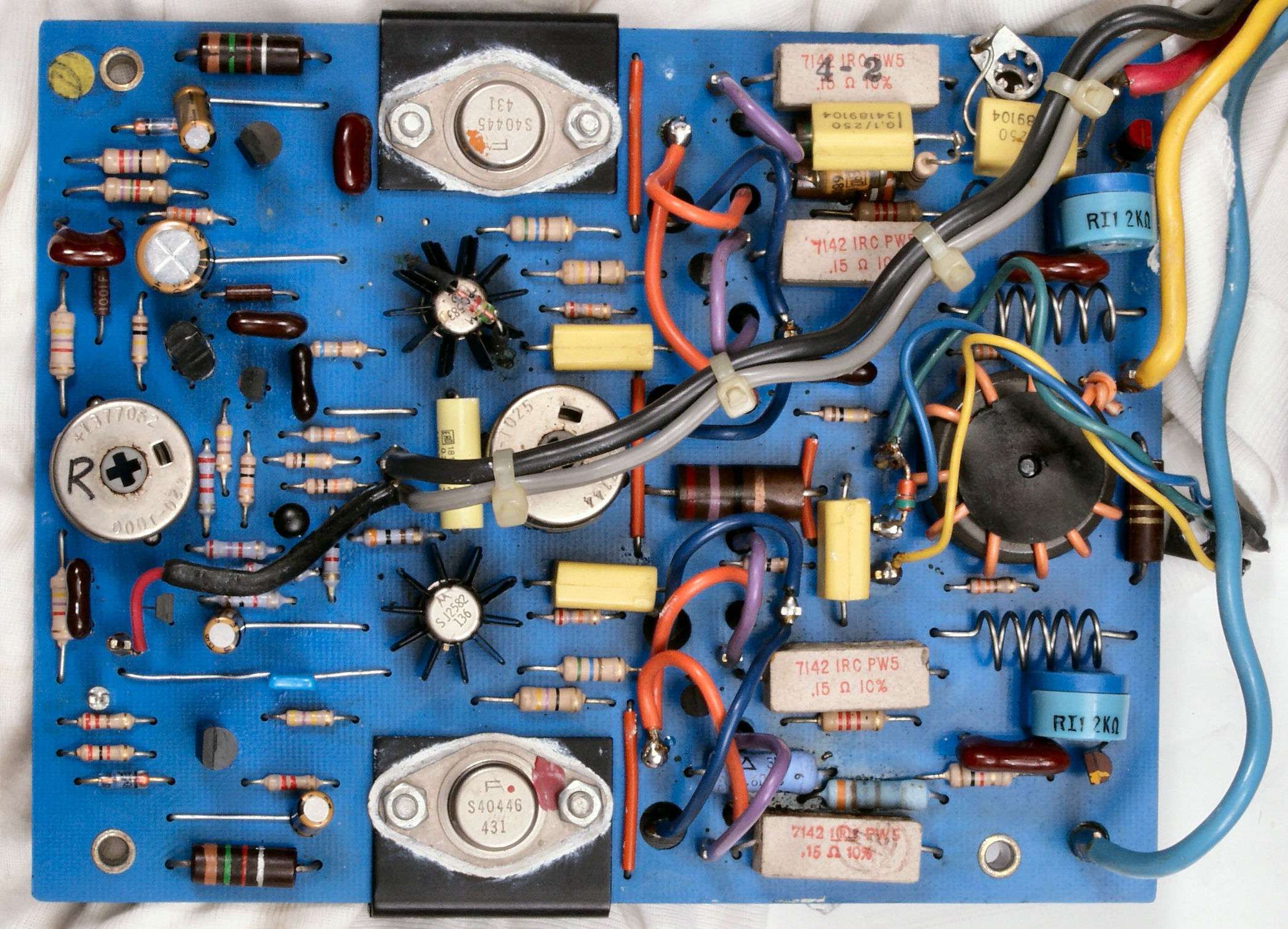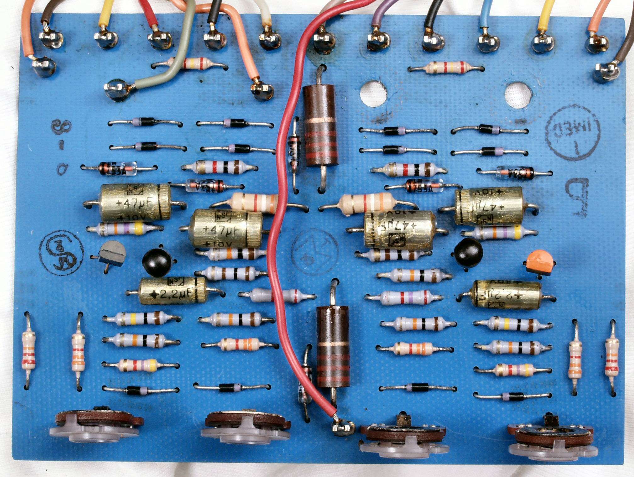 C−2D. 修理後 L側AMP基板 TR(トランジスター)3個、電解コンンサー4個、半固定VR2個、フイルムコンデンンサー2個交換