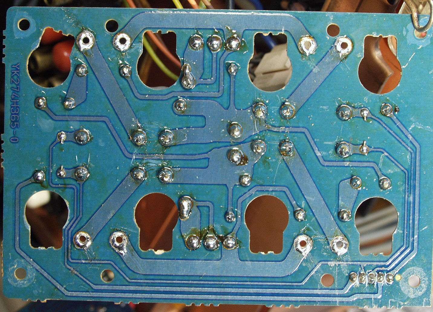 | C−2H. 修理前 L終段TR(トランジスター)基板 裏 半田不良場所 | ||||||||||||||||||||||||||||||||||||||