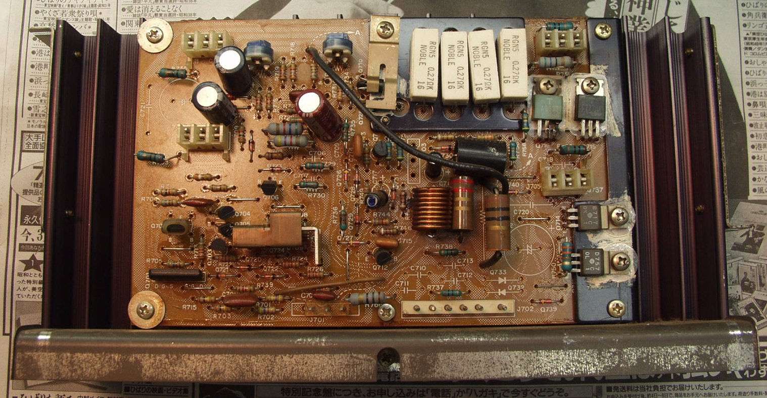 A5. 修理前 後ろから 出力リレーは3個も使用している 入力RCA端子は全て金メッキ使用
