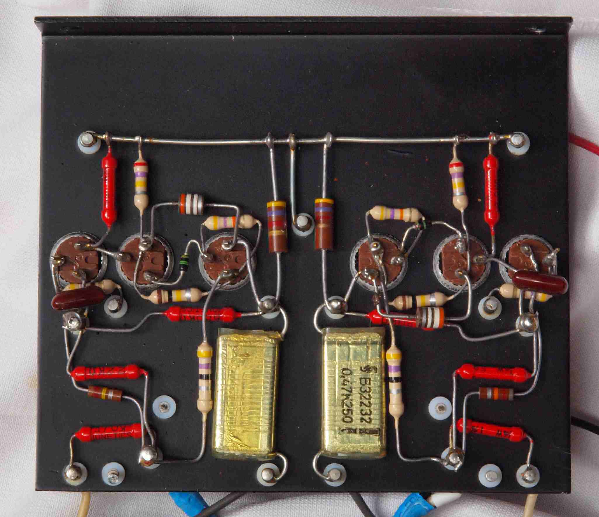 C34. 修理後 Tone Amplifier Bord Back。 フイルムコンデンサー2個交換。