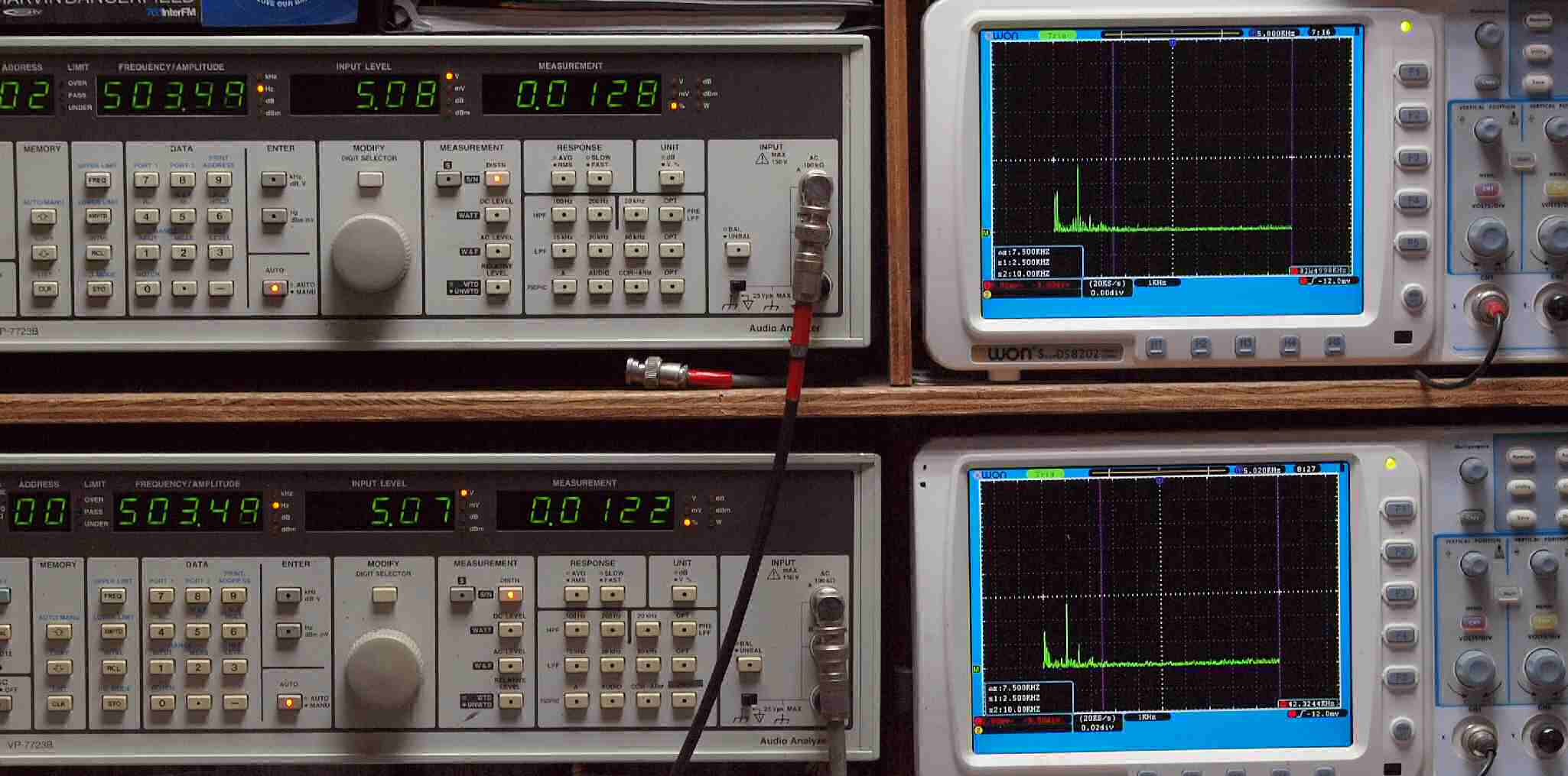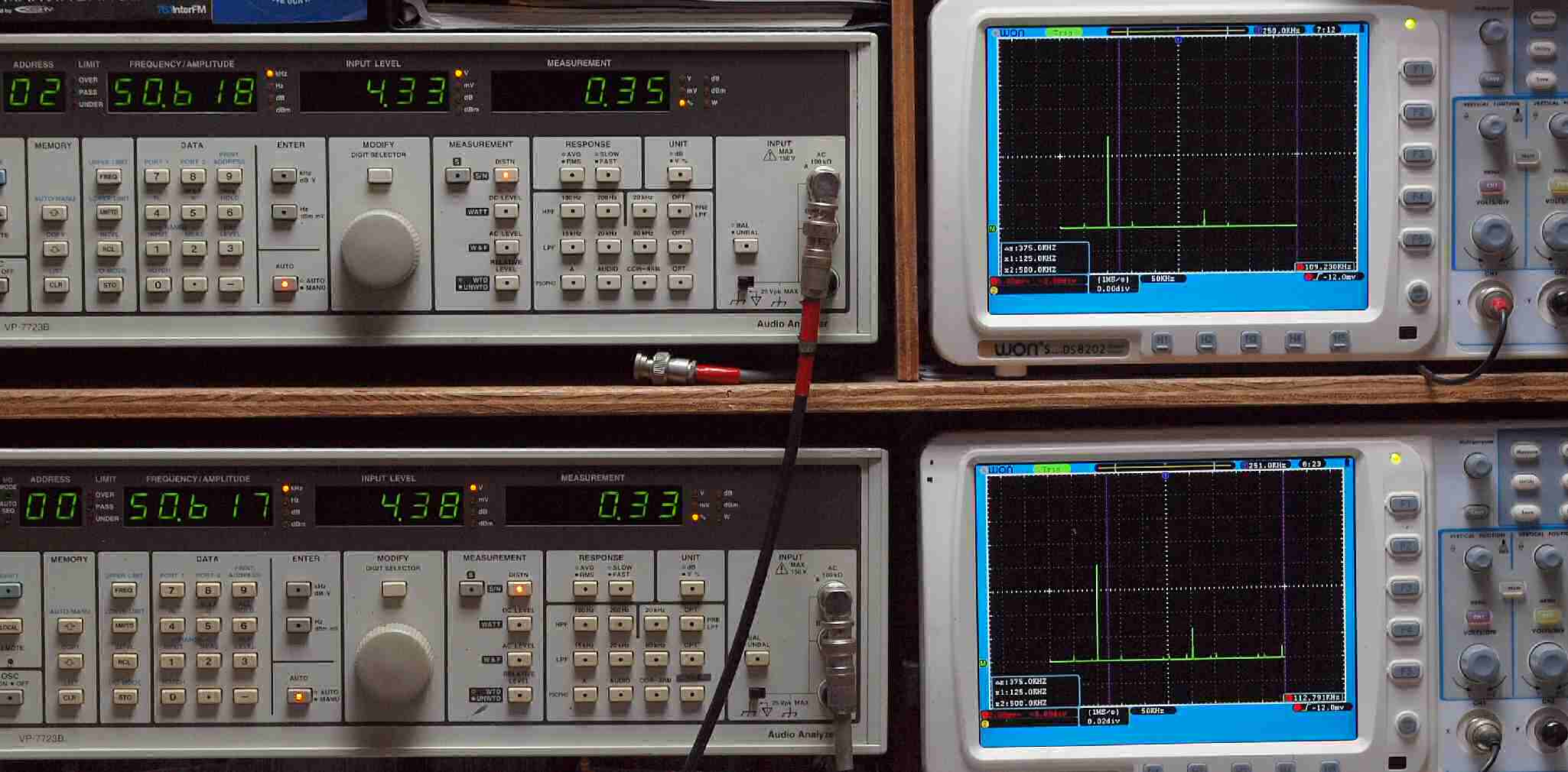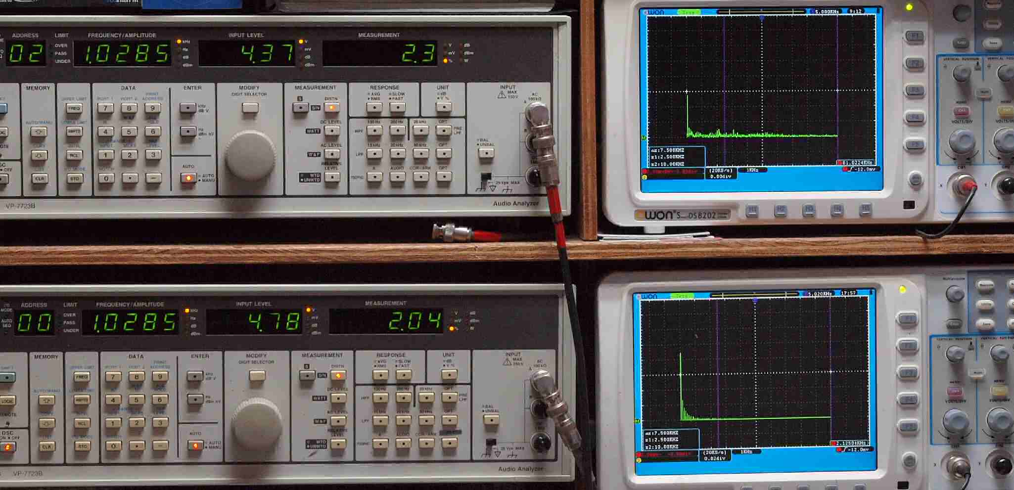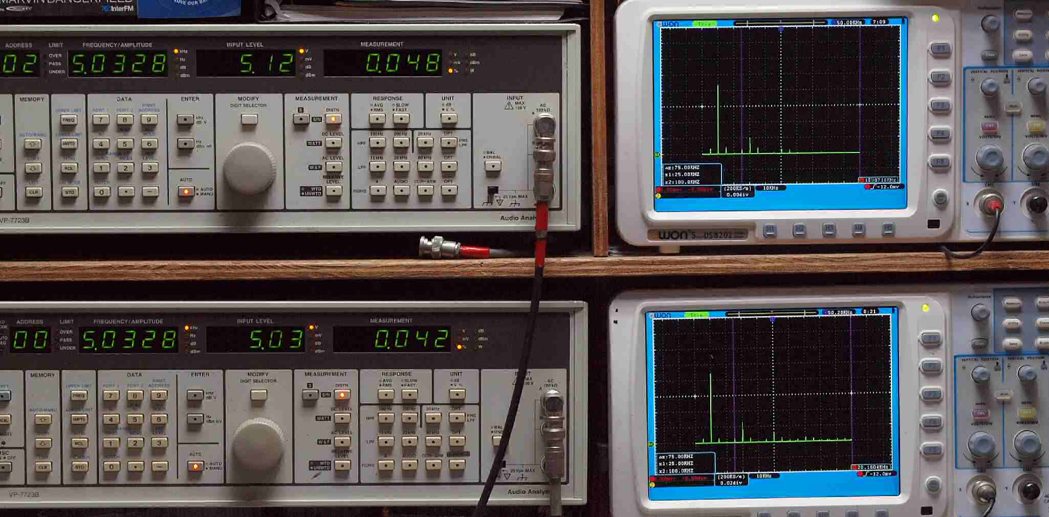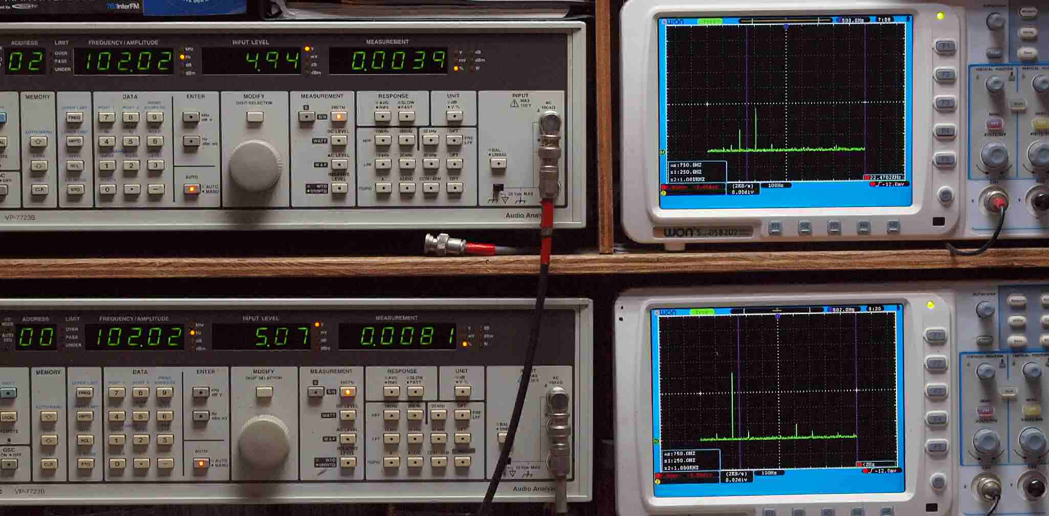 よって、ダイアル設定出力レベルより低くなります。測定機器の仕様や整備の様子はこちら、「VP−7723B」「VP−7201A」。 FFT画面の見方はこちら。