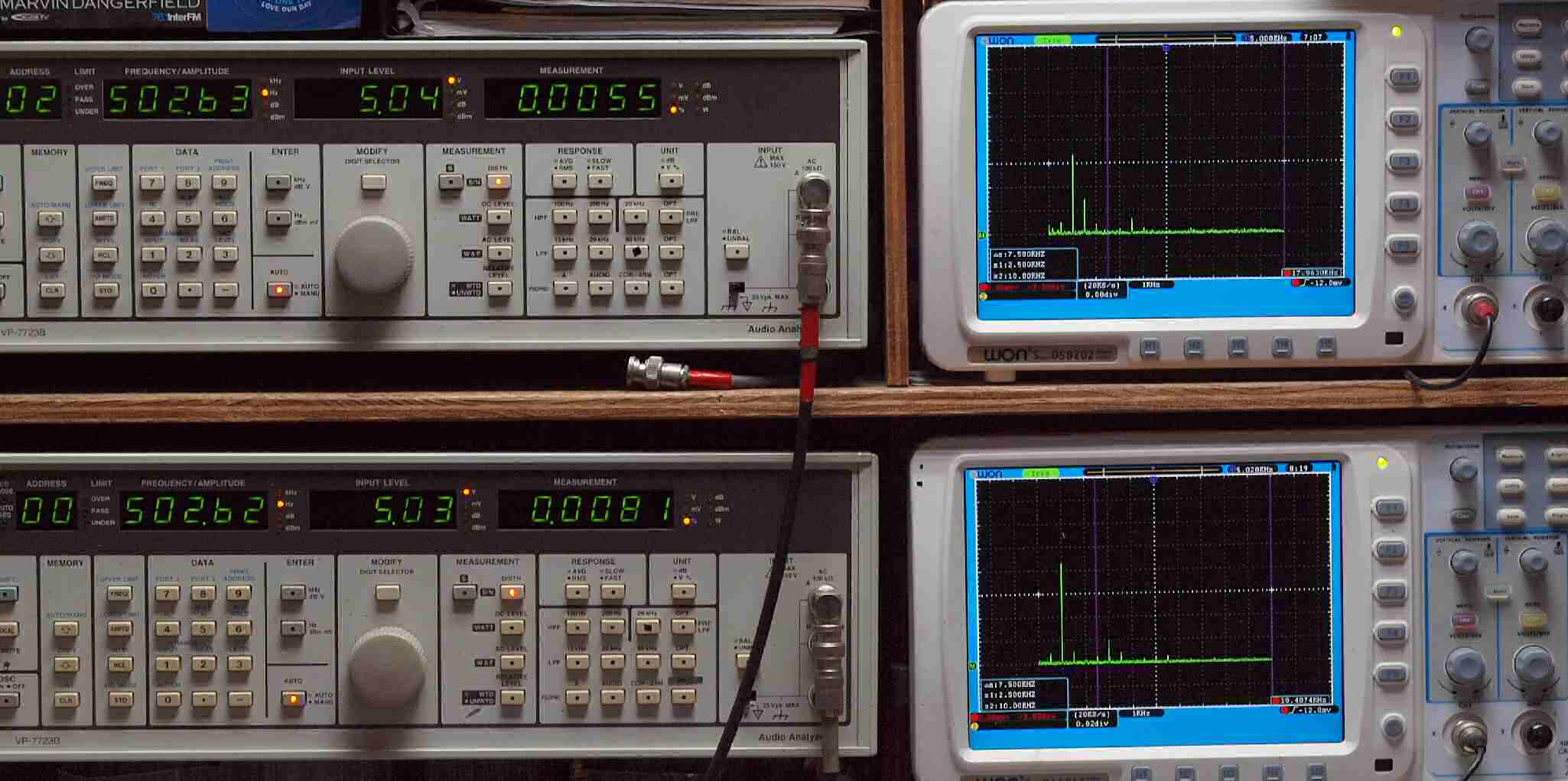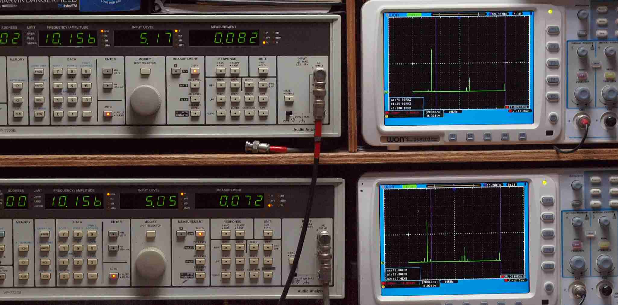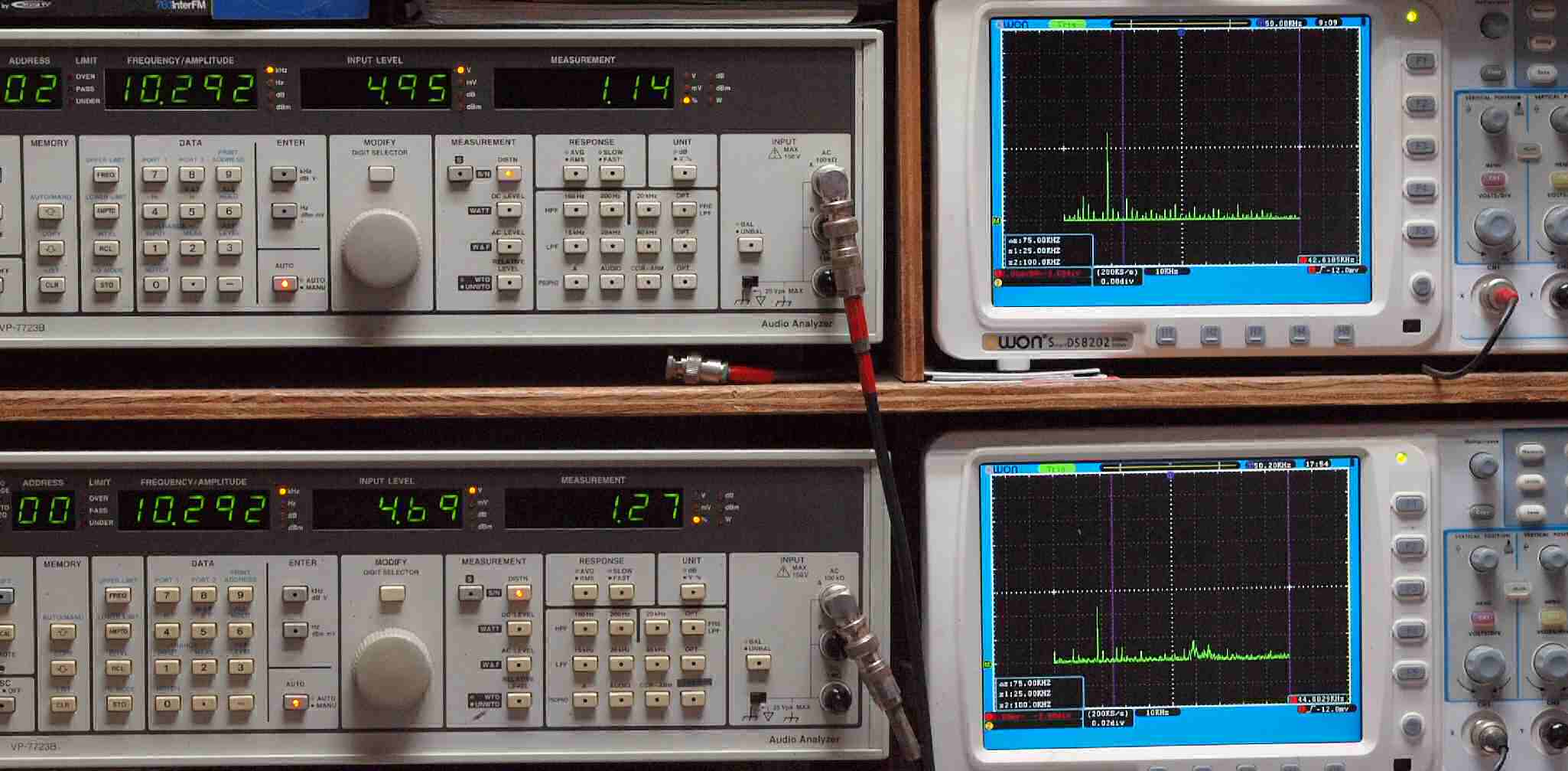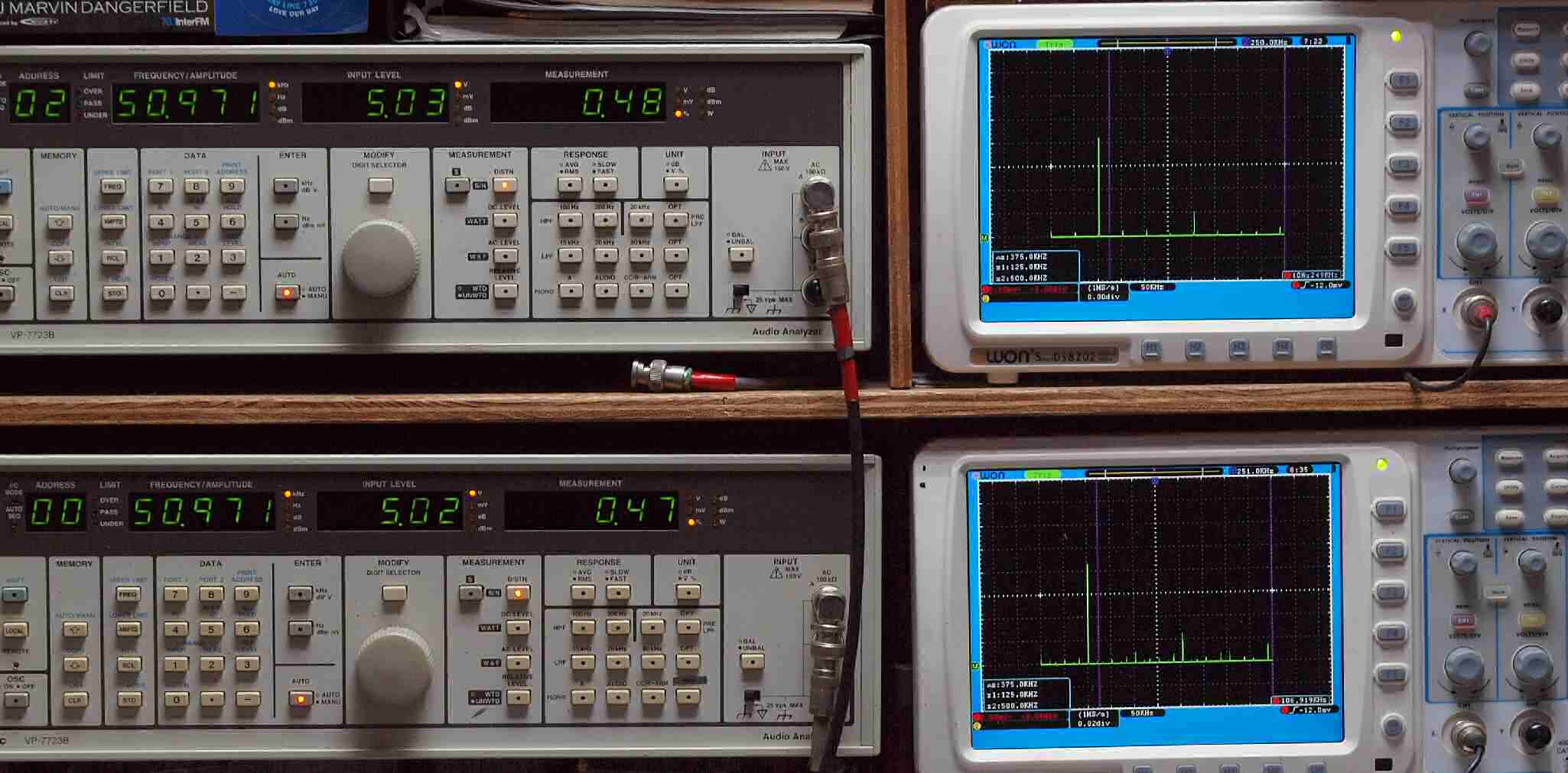 よって、ダイアル設定出力レベルより低くなります。測定機器の仕様や整備の様子はこちら、「VP−7723B」「VP−7201A」。 FFT画面の見方はこちら。