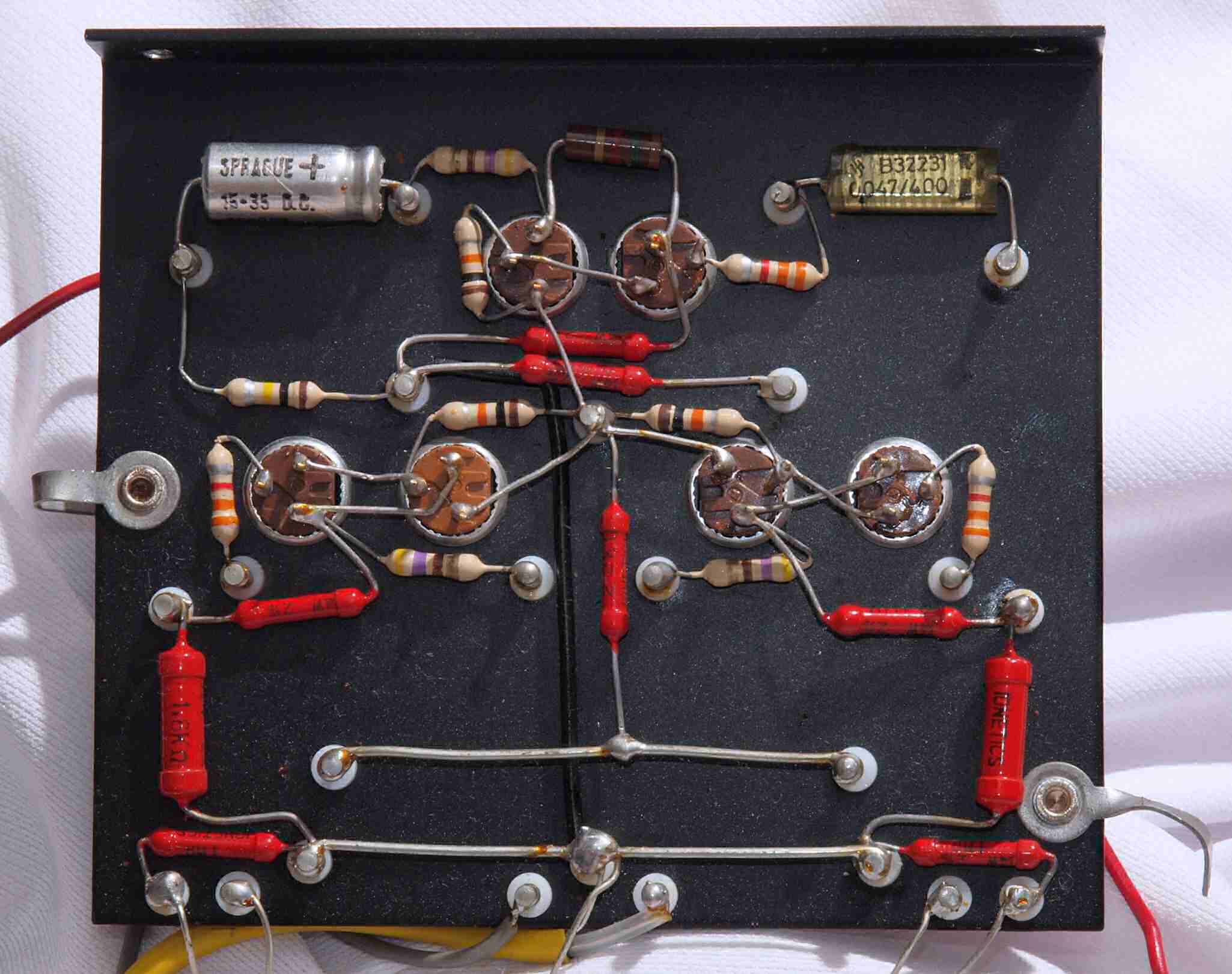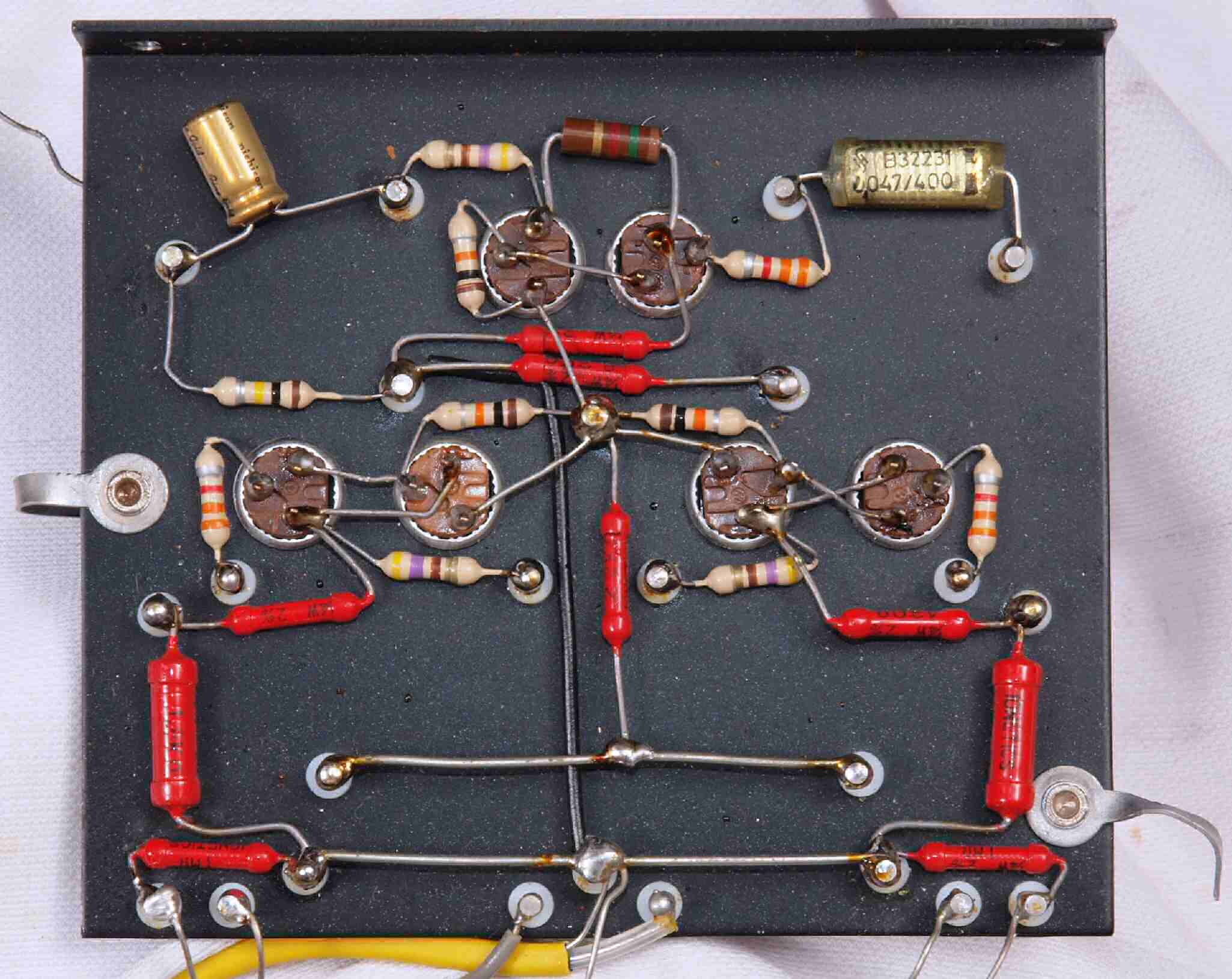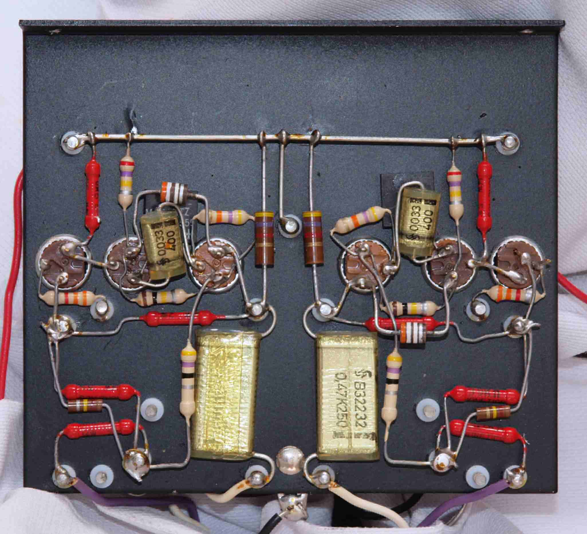 | C34. 修理後 Tone Amplifier Bord Back。 フイルムコンデンサー2個交換。 |