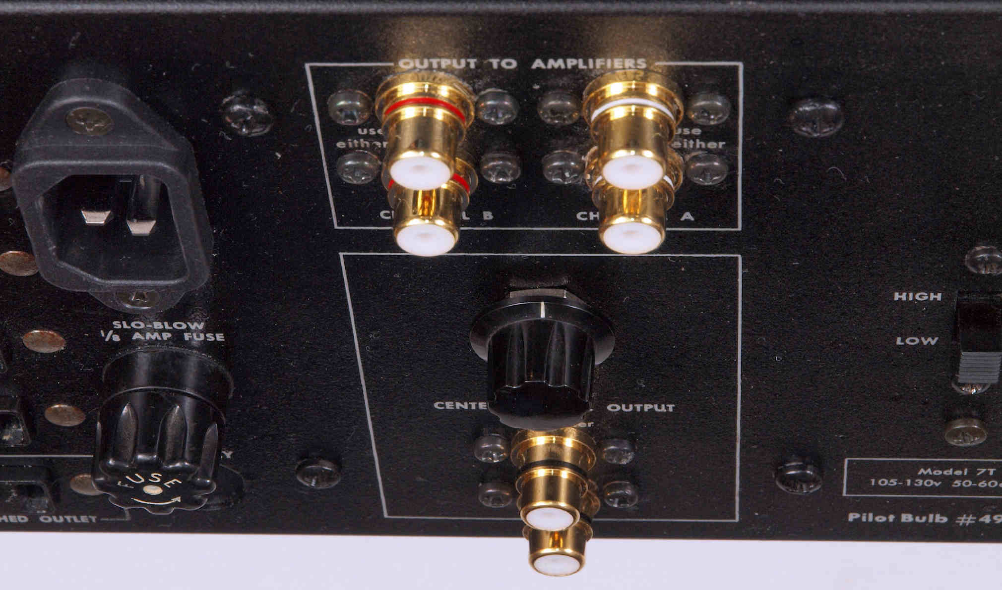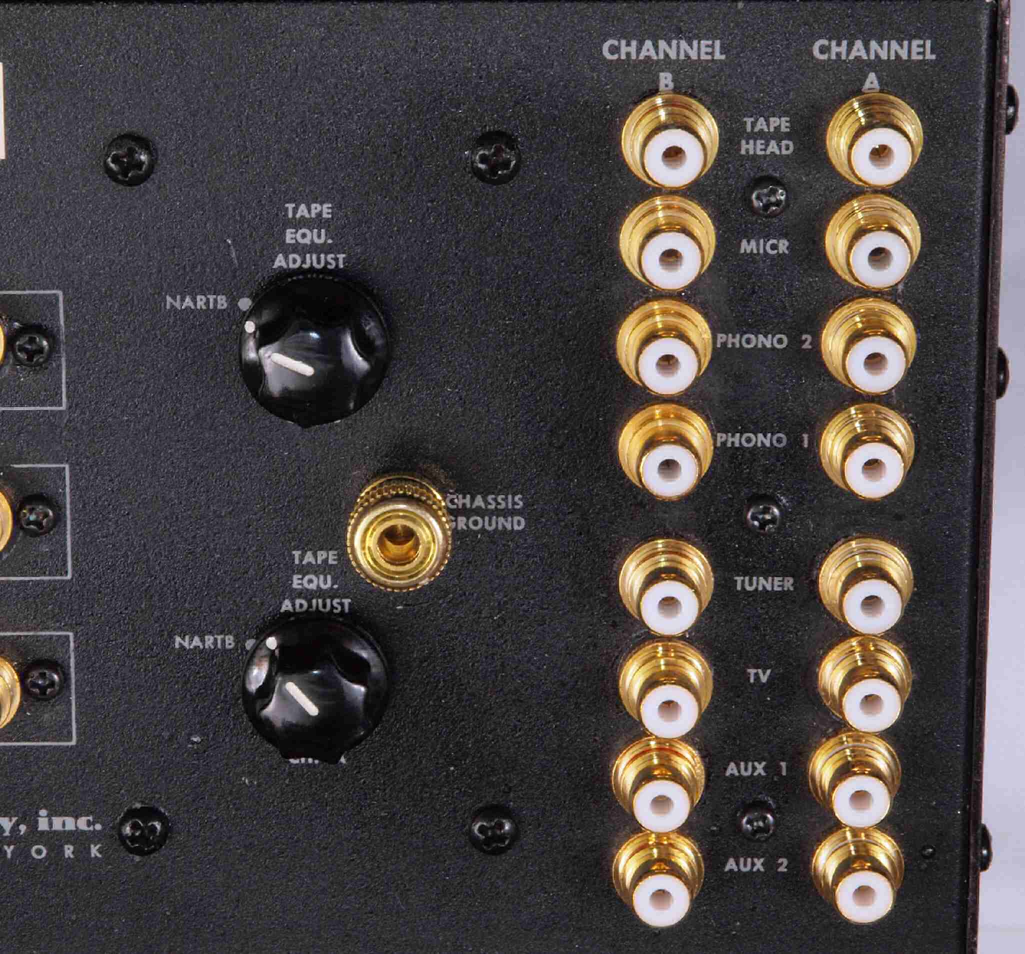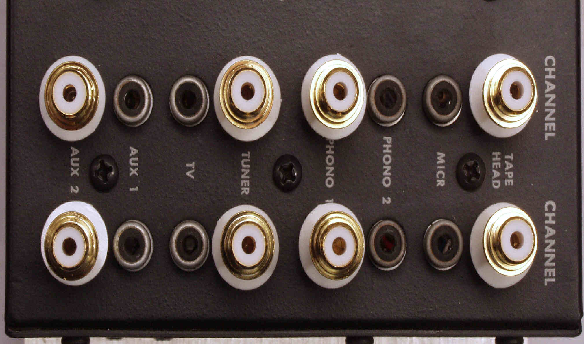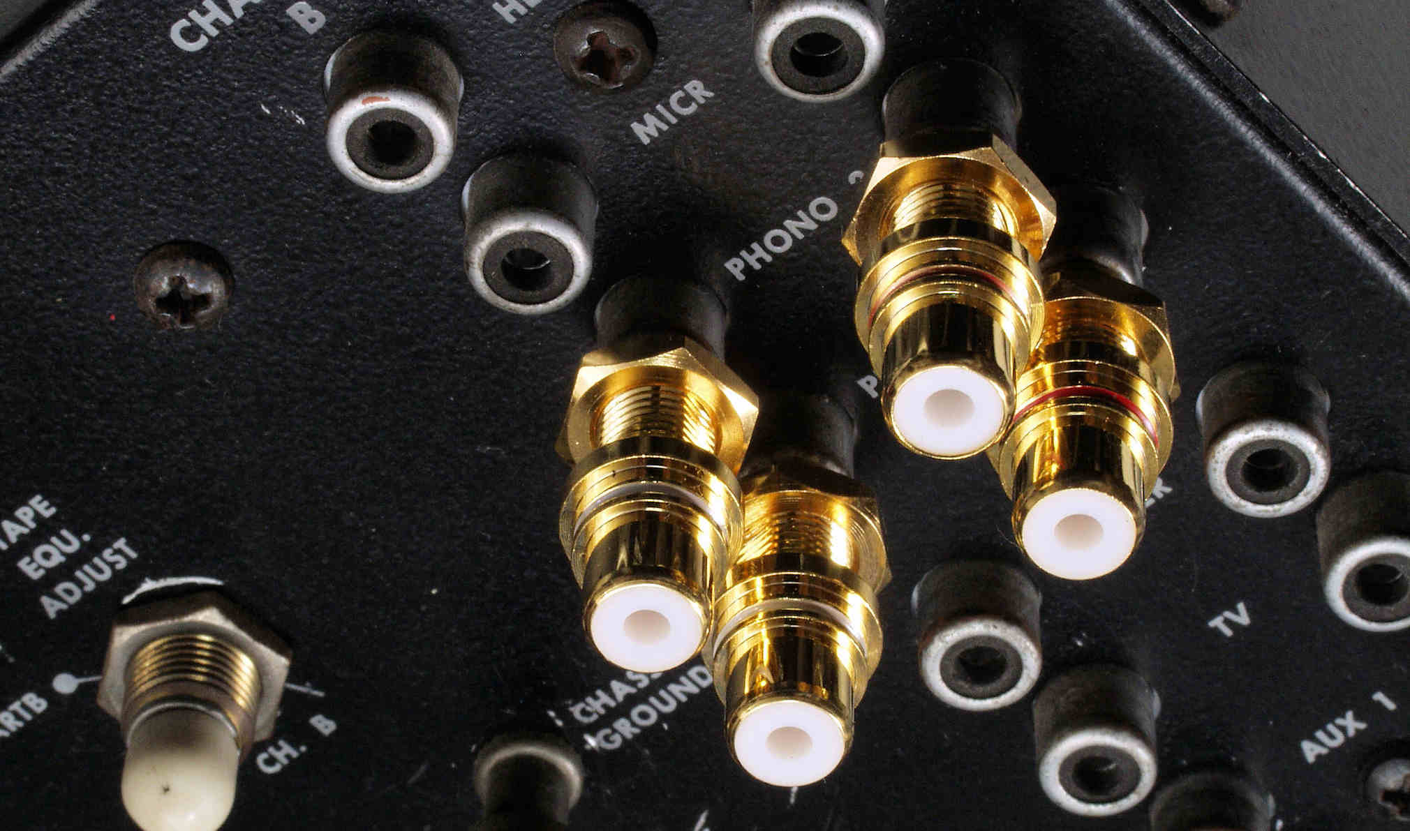 | A73. 点検中 TAPE入出力RCA端子郡、RL出力RCA端子郡、センター出力RCA端子郡。 テフロン絶縁仕様に交換可能。 |