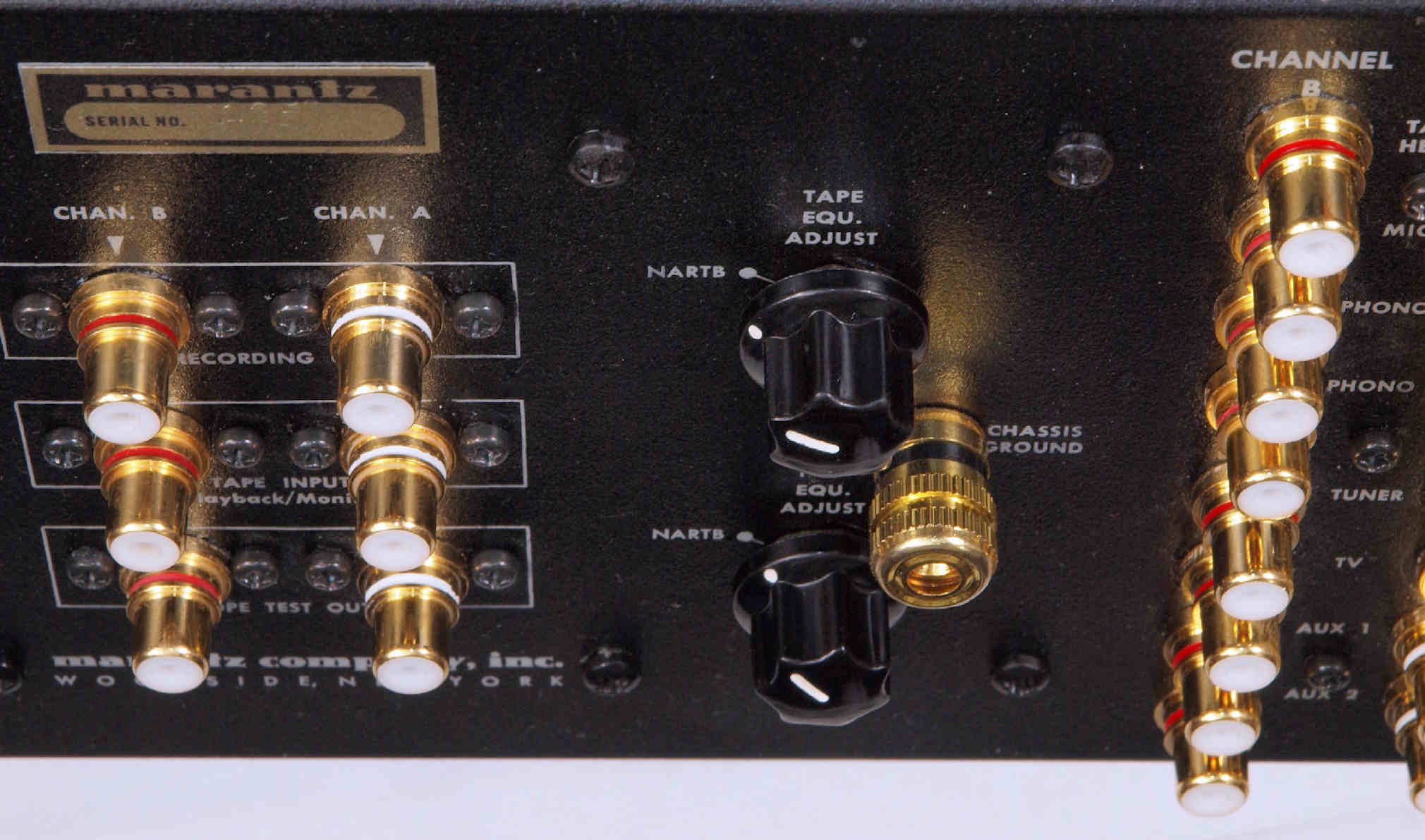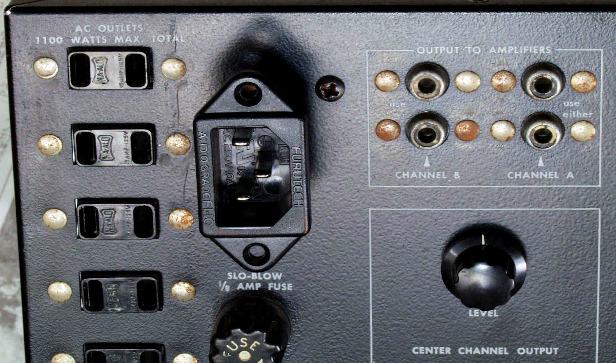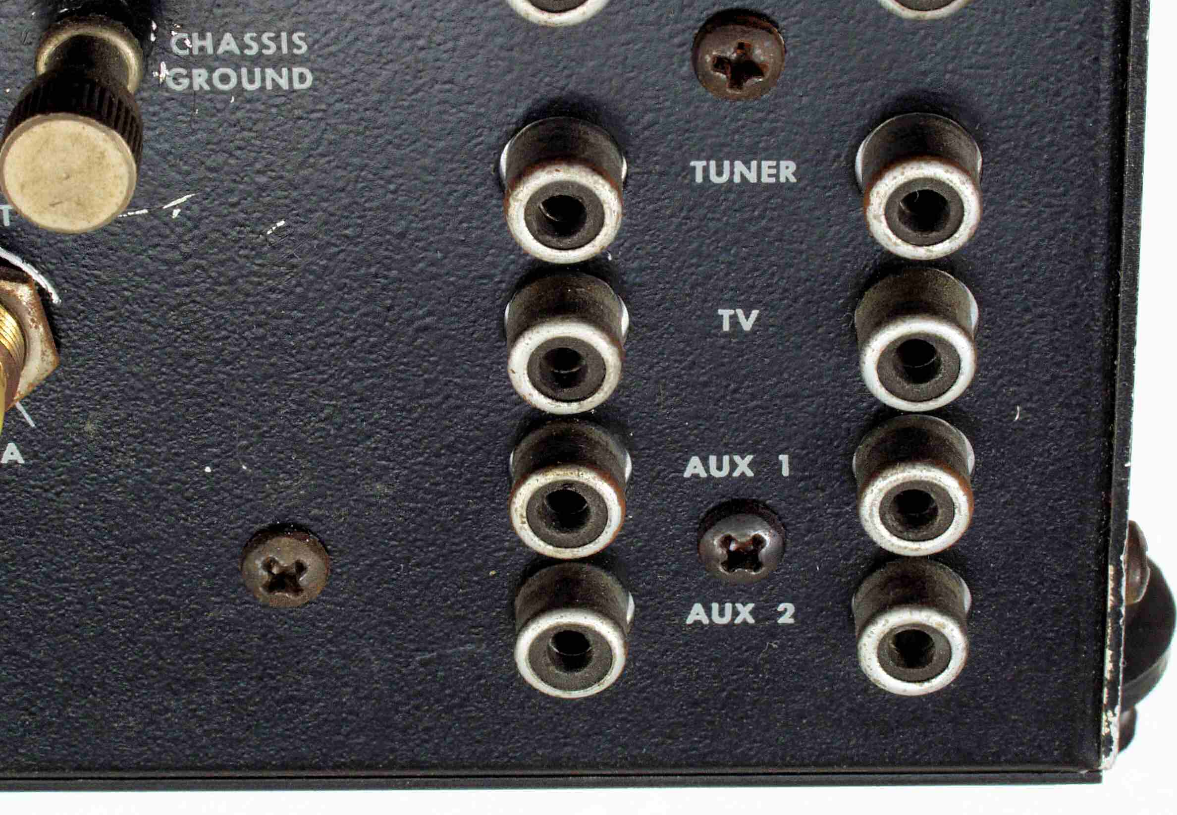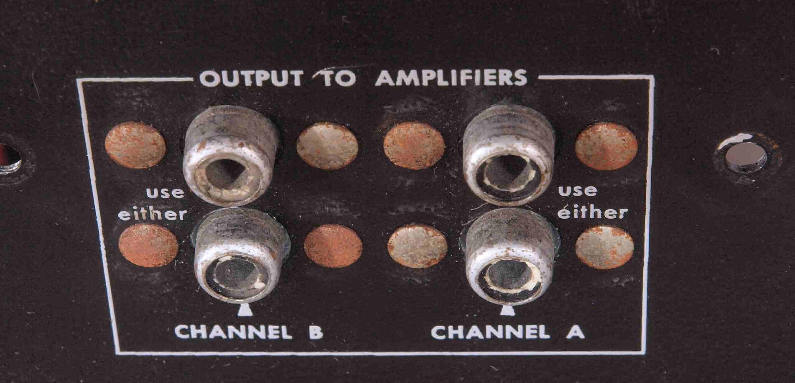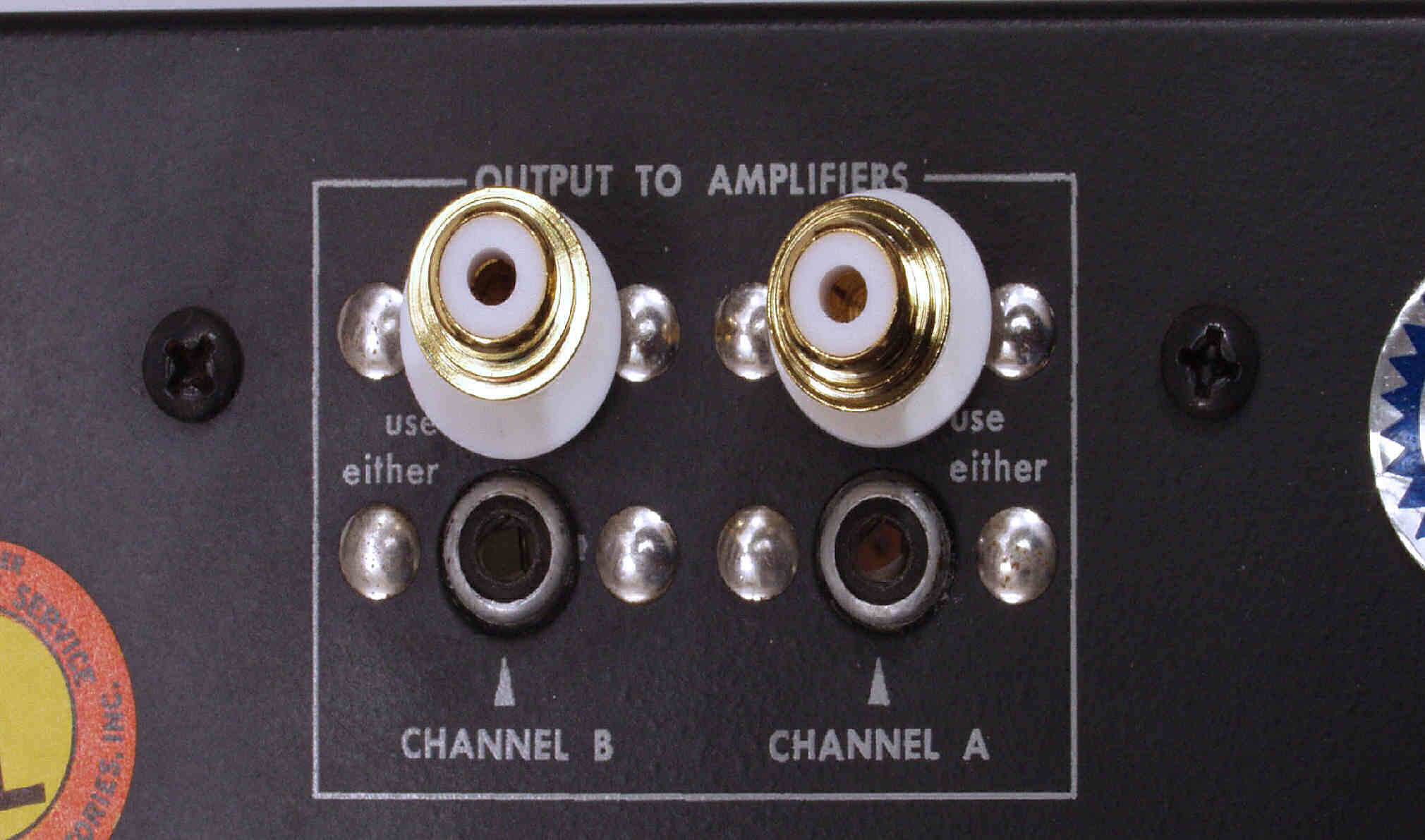 | A73. 点検中 TAPE入出力RCA端子郡、RL出力RCA端子郡、センター出力RCA端子郡。 テフロン絶縁仕様に交換可能。 |